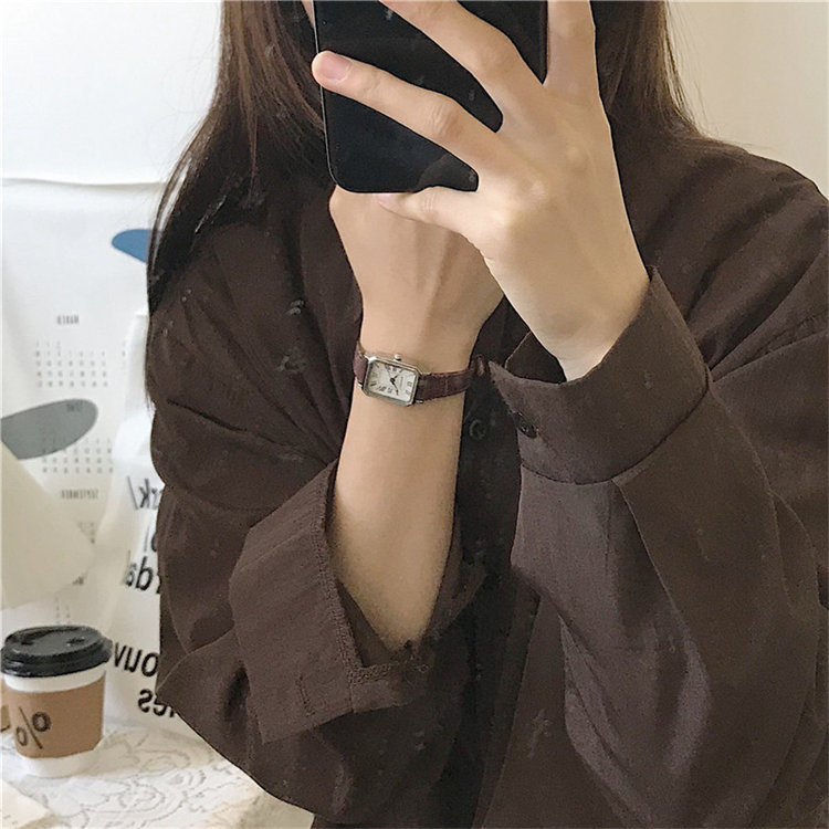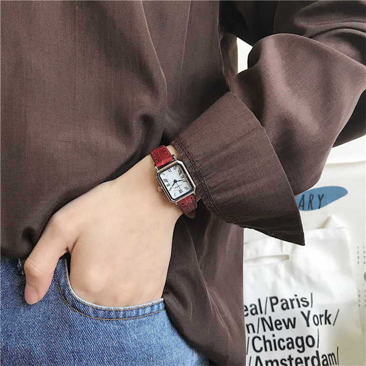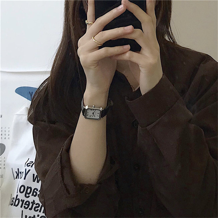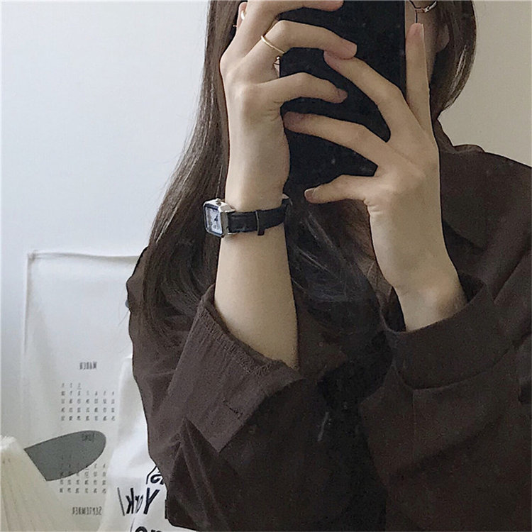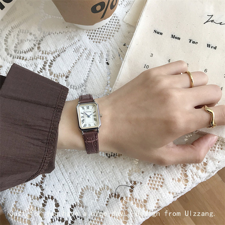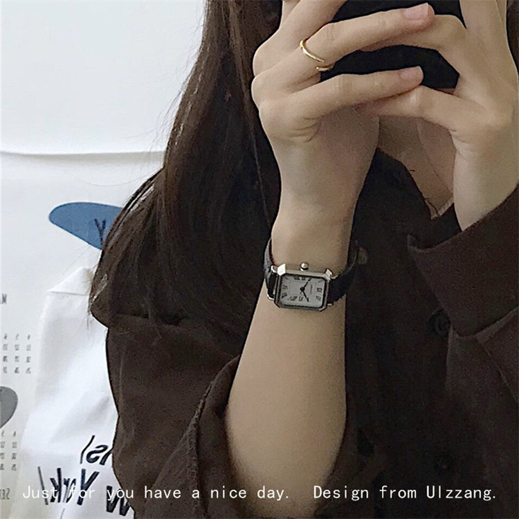 ULLZZANG日式復古高級感小眾方形小錶盤羅馬刻度皮帶女石英手錶