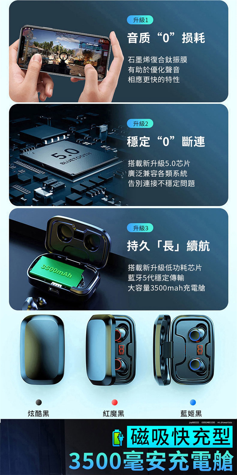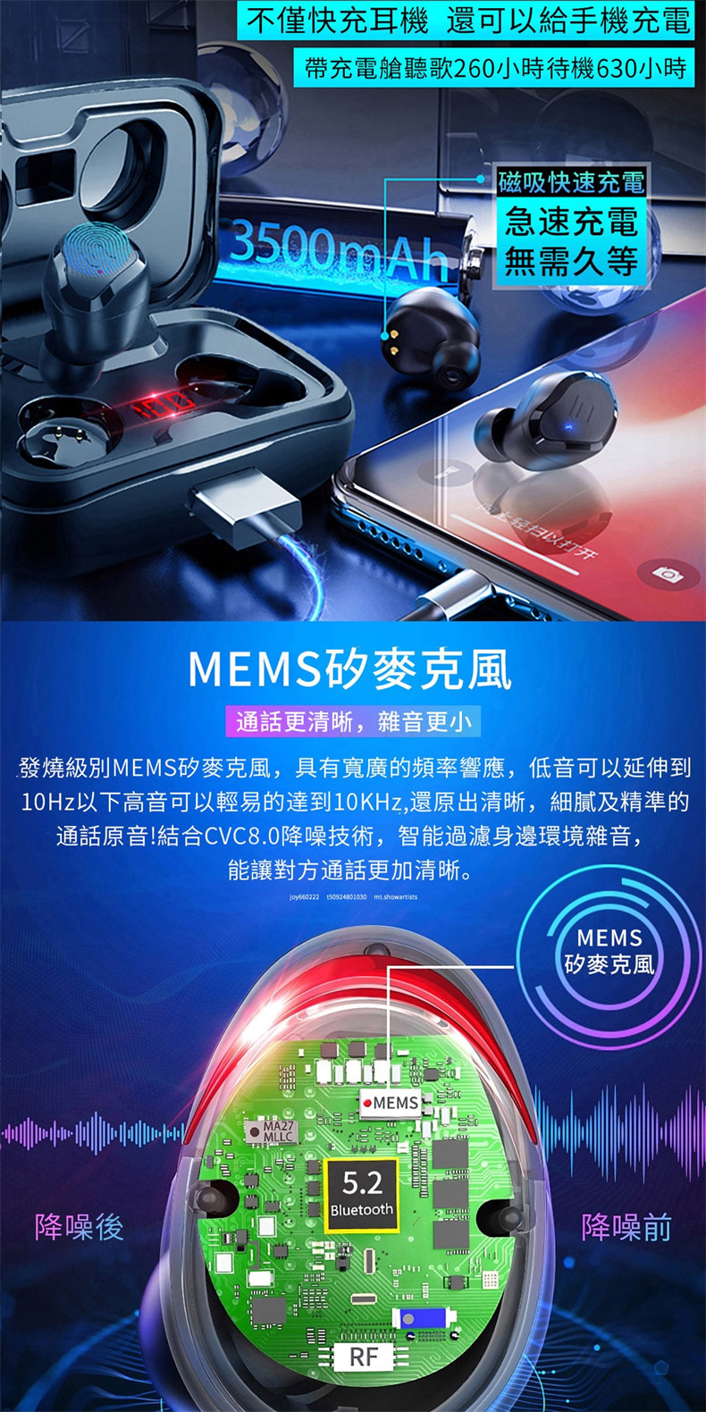 帶充電艙聽歌120小時·待機630小時