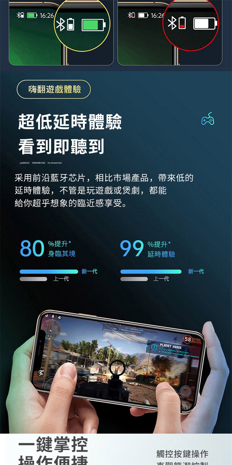 采用全新版本,信號更强,傳輸靈敏,零延遲,無損傳輸,娛樂聽歌通話都不會耽誤。
