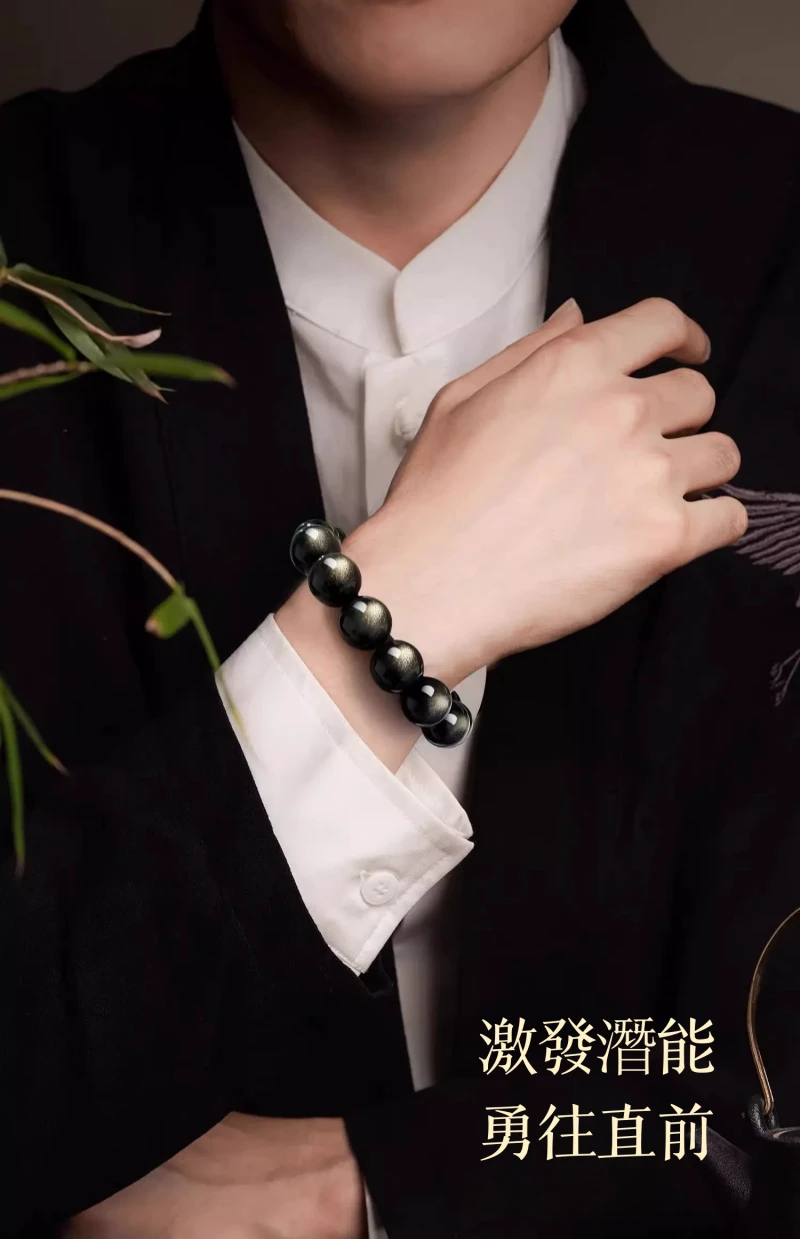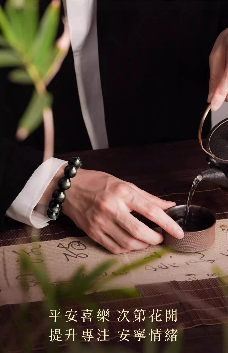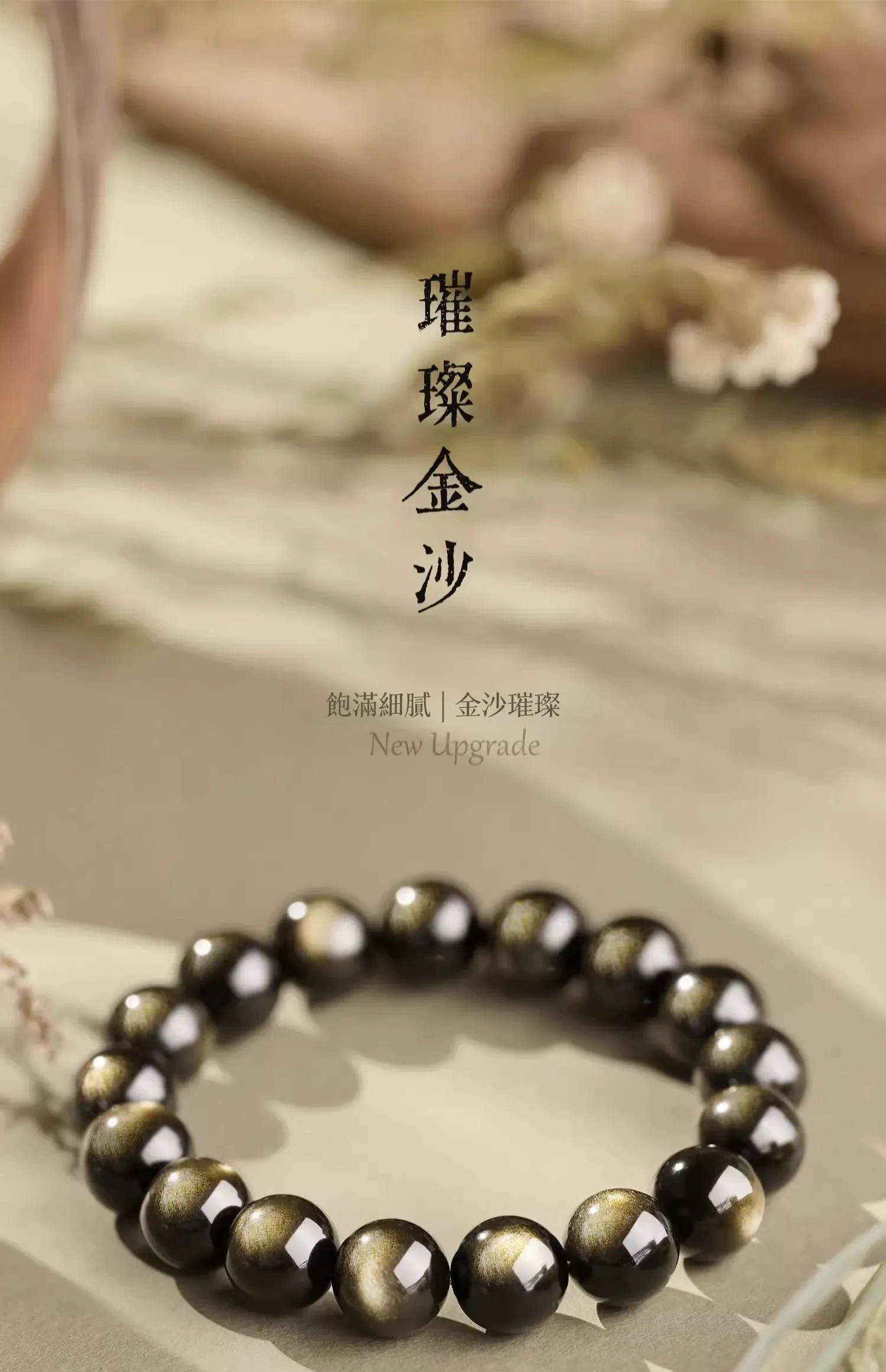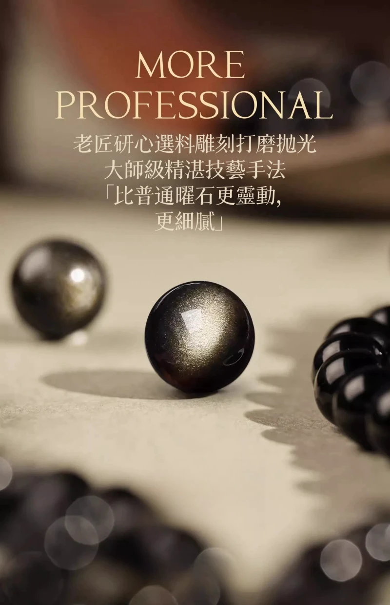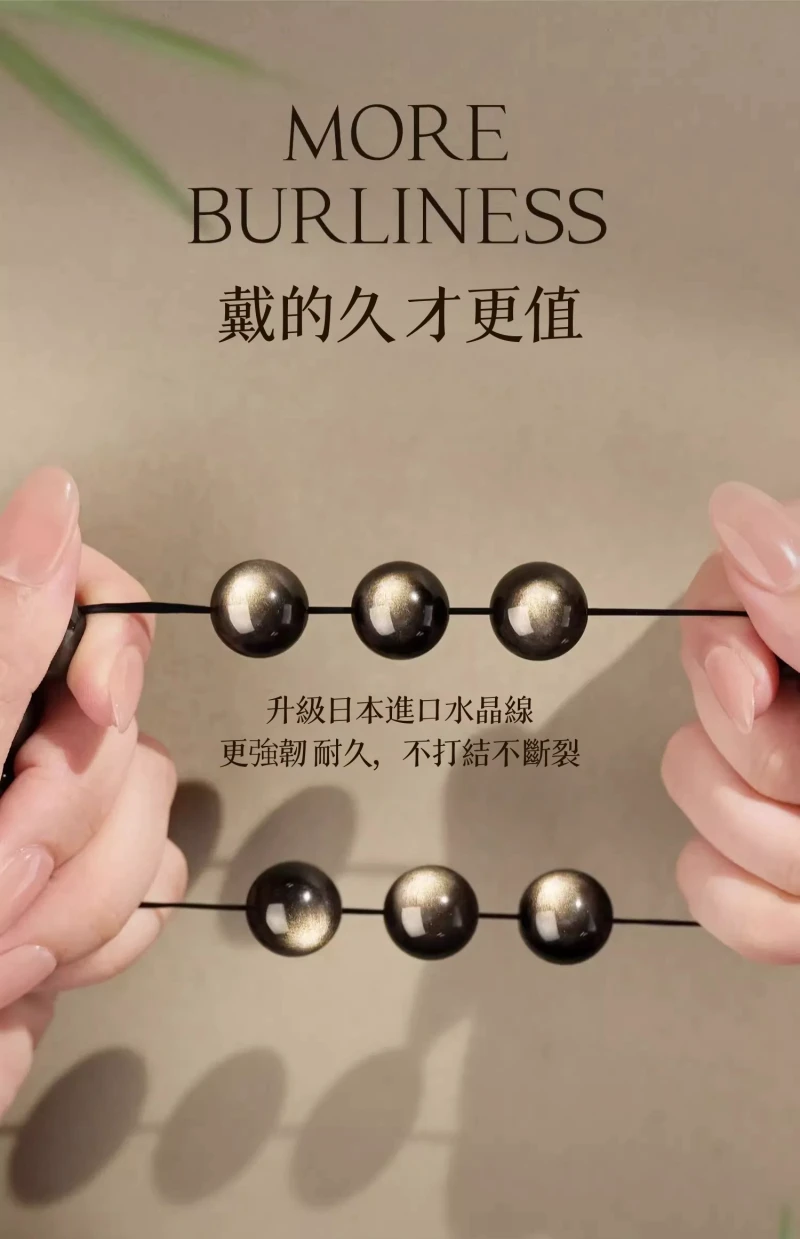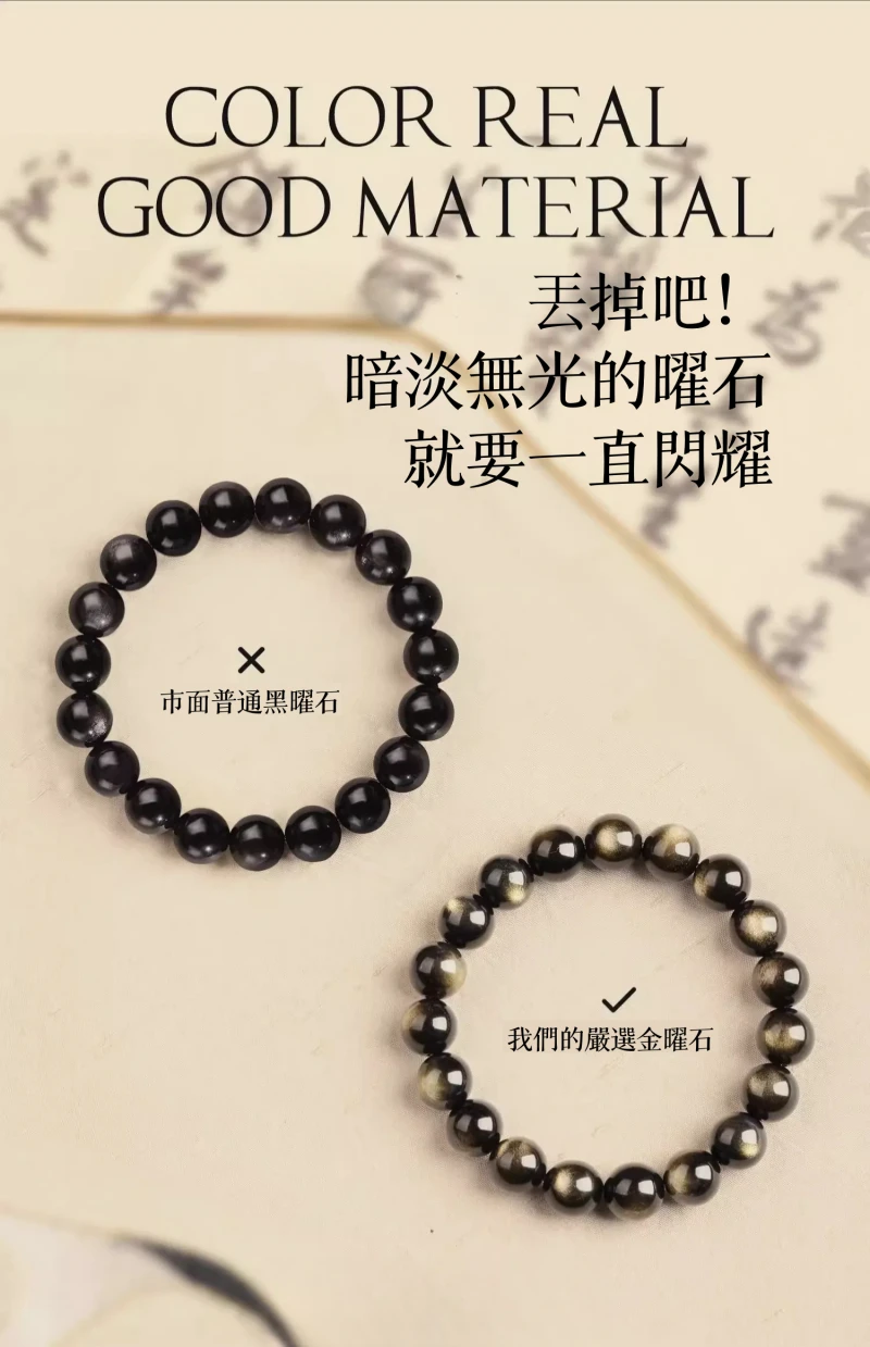 招財開運 | 事業精進 | 天然冰島寶石級金曜石手鍊 | 璀璨雙金眼 | 至強招財 | 增強自信 | 男女中性款 | 2025天然水晶黑曜石手串手鍊
