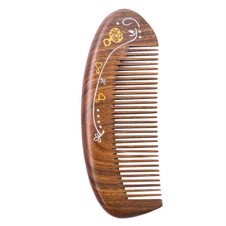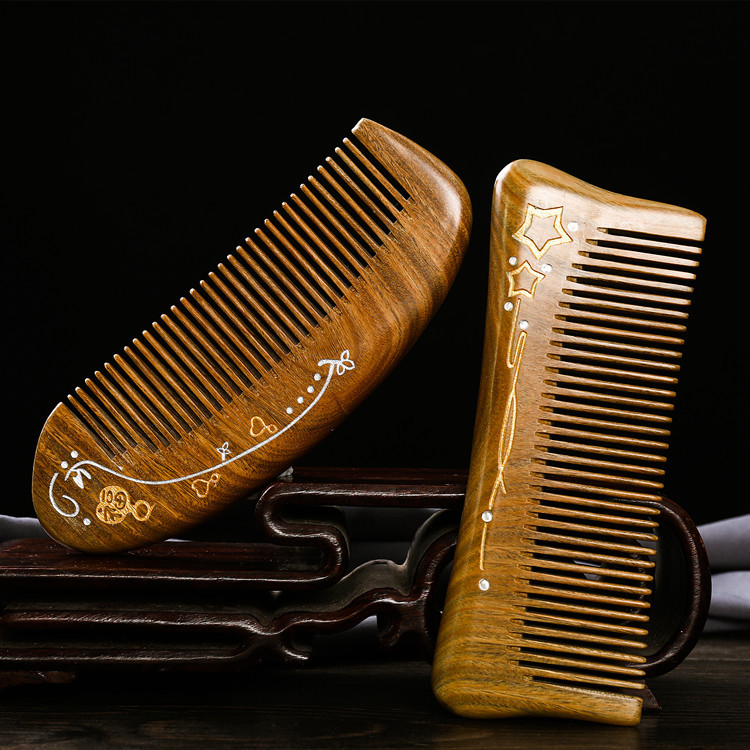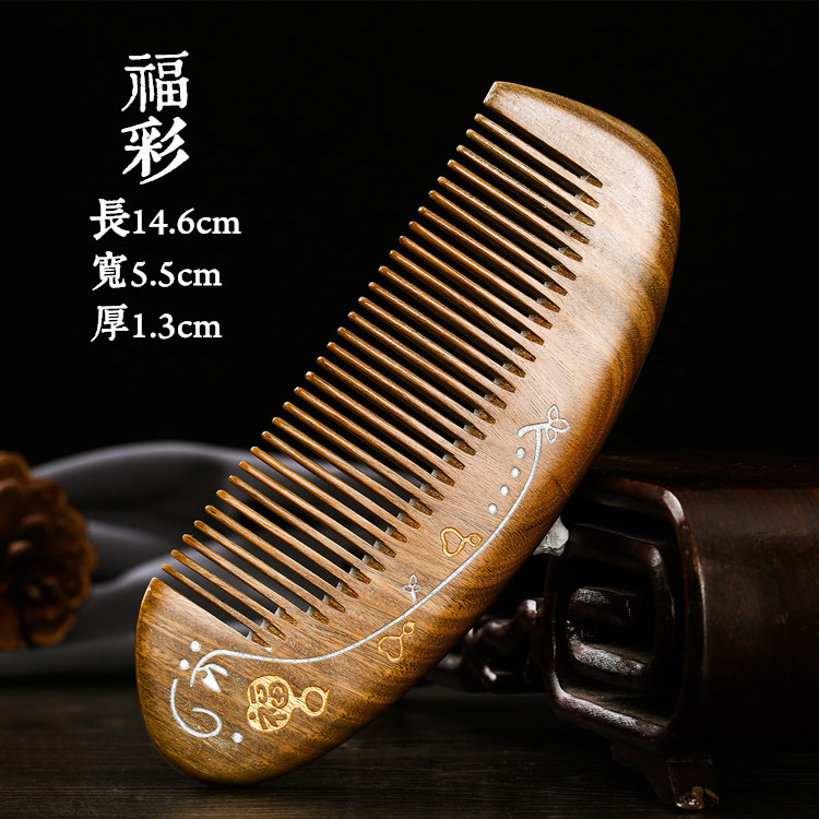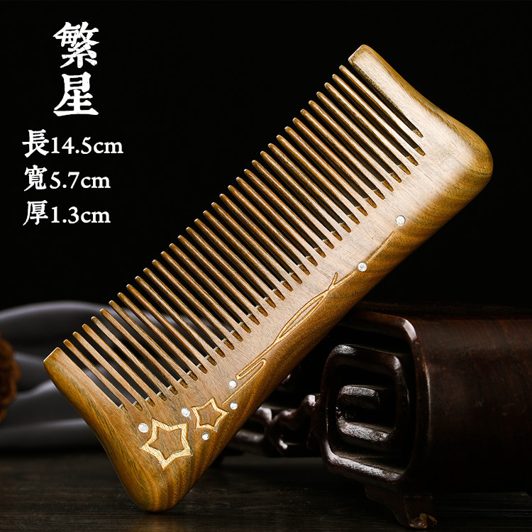 【天然綠檀木】【描金手繪】純手工製天然綠檀木福彩繁星描金手繪中號無柄加厚保健按摩梳子