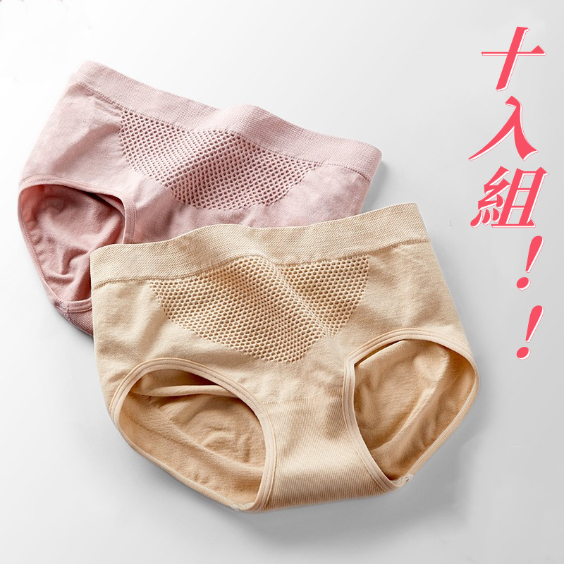 重磅超值十入組 | 3D蜂巢蓄熱暖宮 | 手托式提臀杯 | 無縫一體織造 | 無痕無感不捲邊 | 舒適透氣不悶 | 日系3D蜂巢暖宮女中腰內褲十入套組