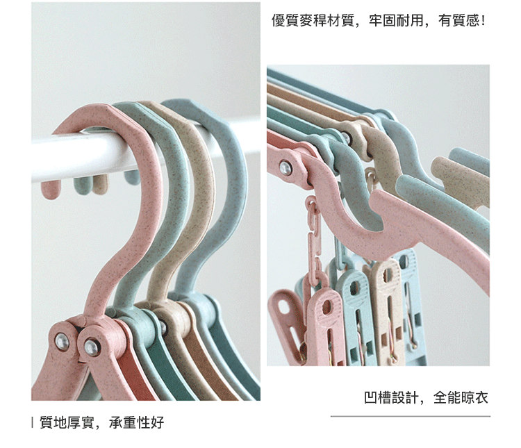 【十入】【多功能折疊衣架】【健康小麥秸稈製品】日本爆賣多功能折疊可調小麥秸稈衣架