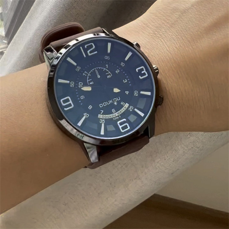 DOUKOU正韓設計個性氣質藍光大錶盤矽膠錶帶男女中性石英手錶