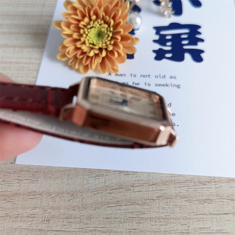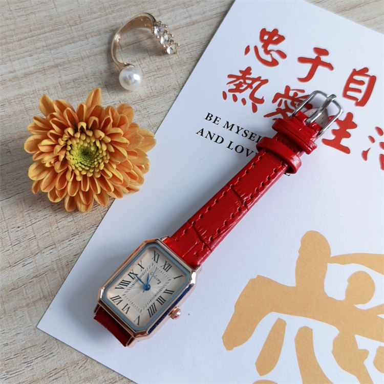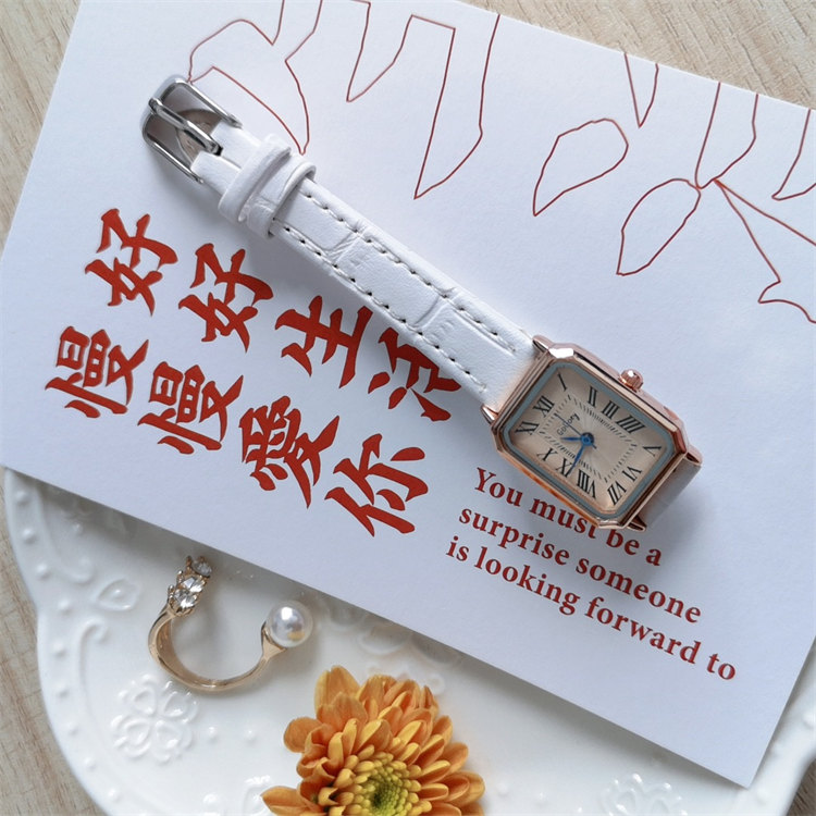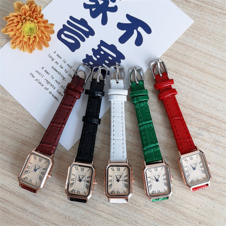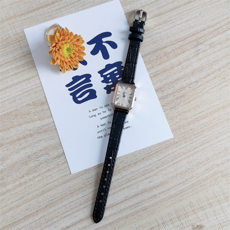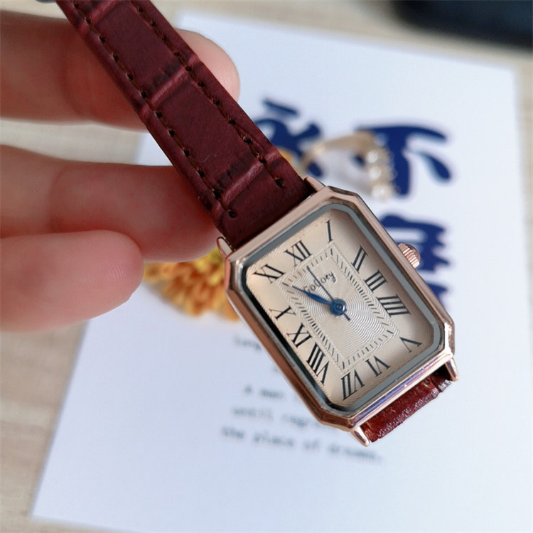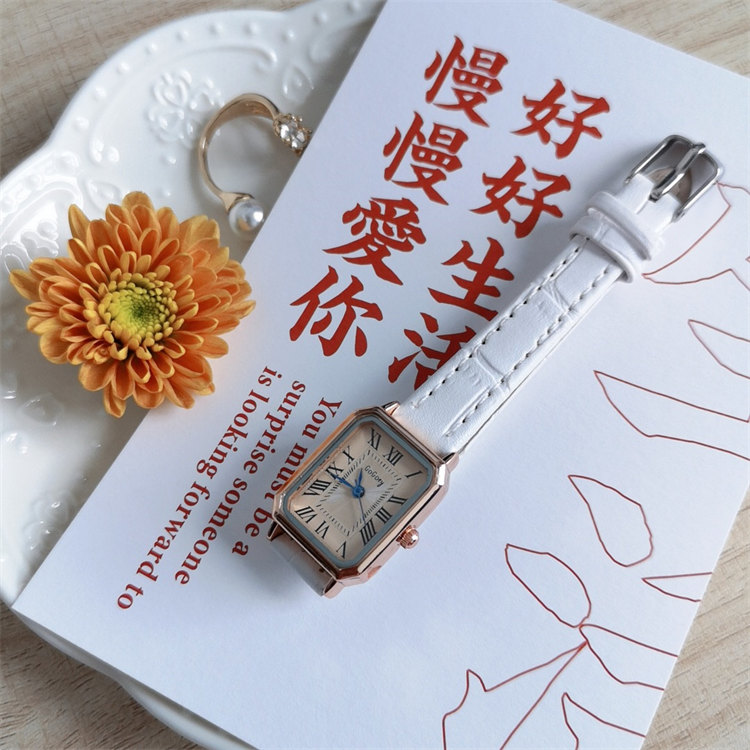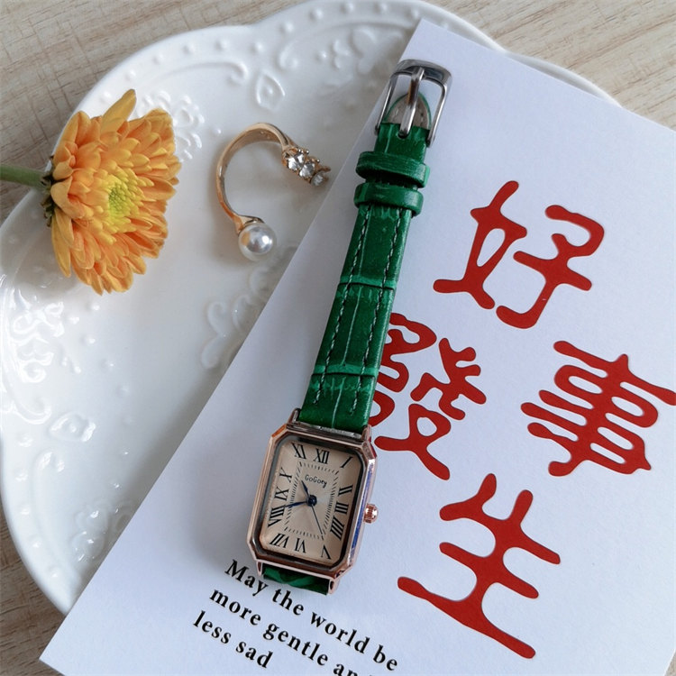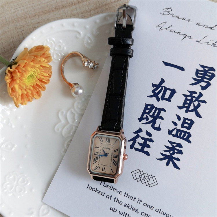 GoGoey復古英倫氣質方形錶盤羅馬刻度皮帶女石英手錶