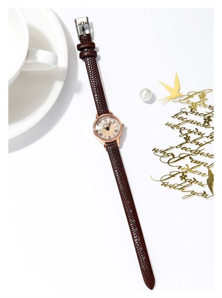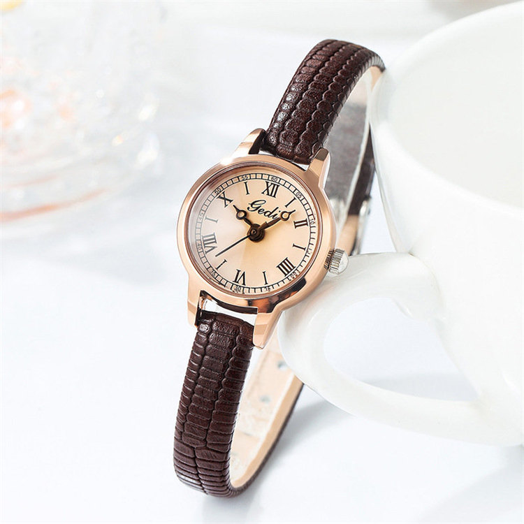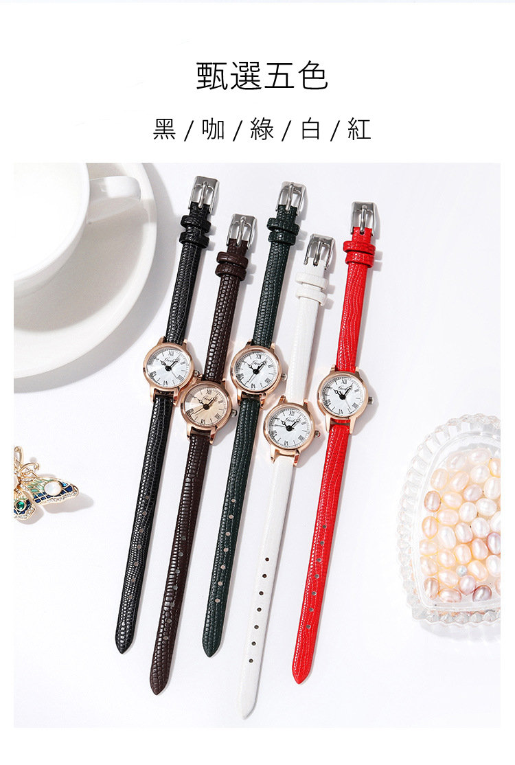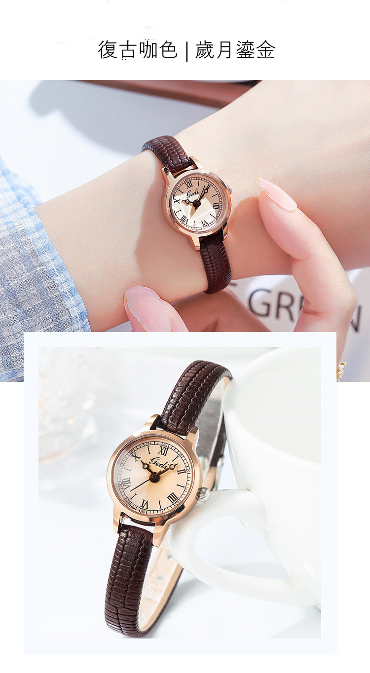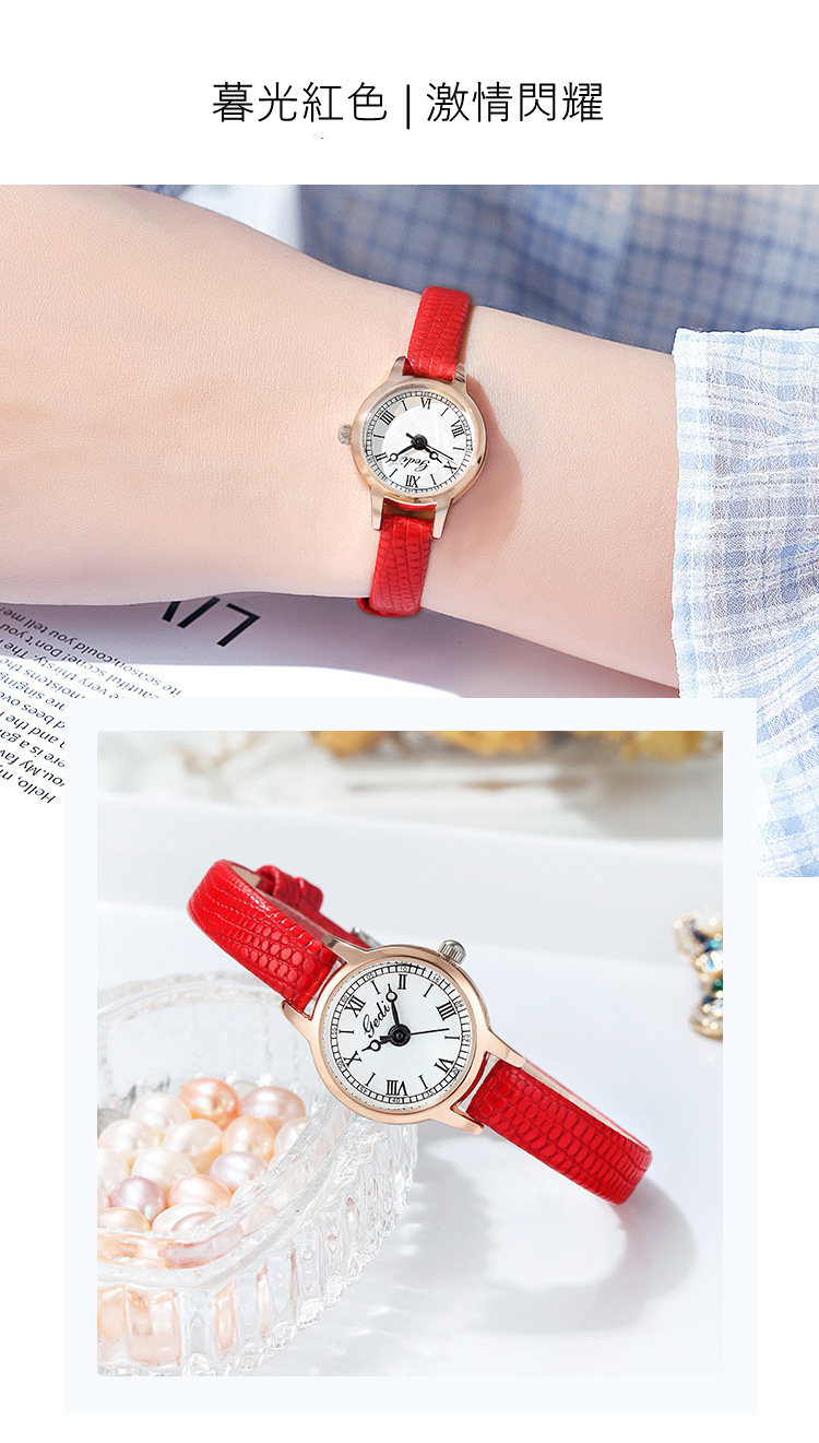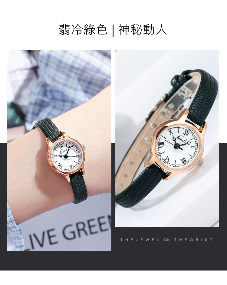 玫金小錶盤 | 鱷魚紋理皮帶 | 30米防水 | GEDI歌迪百搭經典迷人氣質小錶盤羅馬刻度翡冷綠色皮帶女手錶
