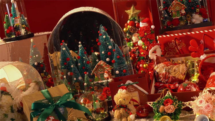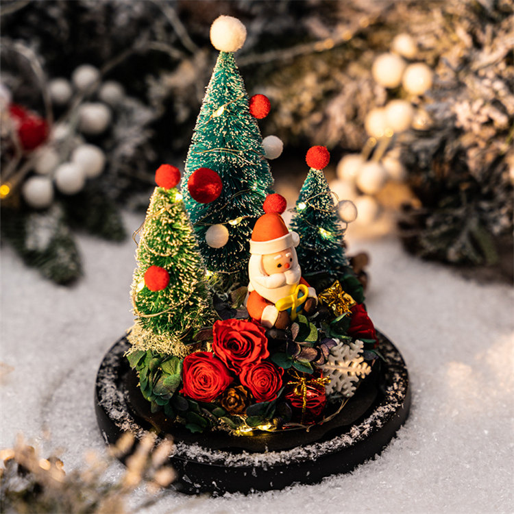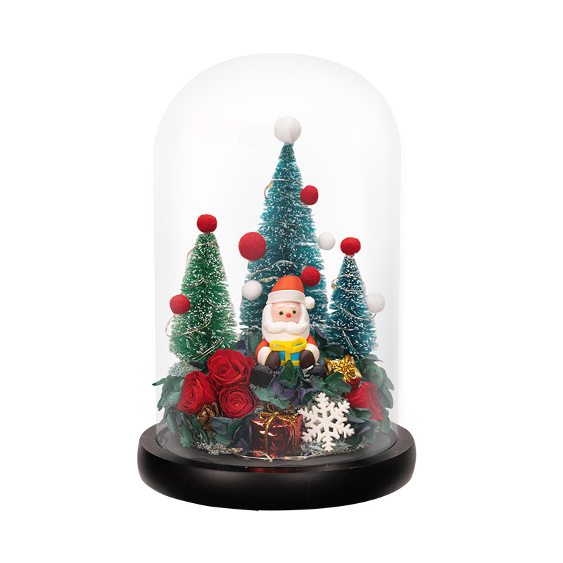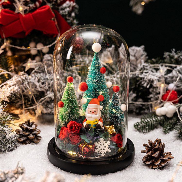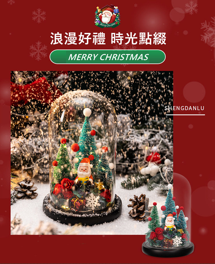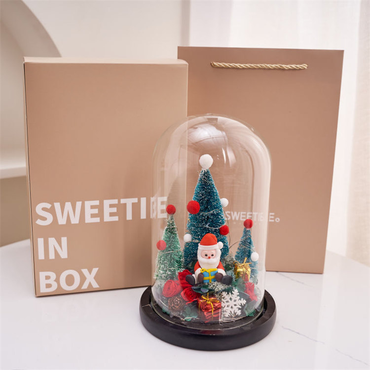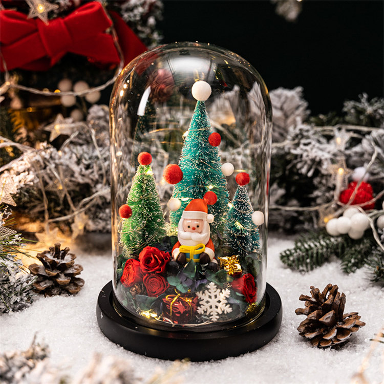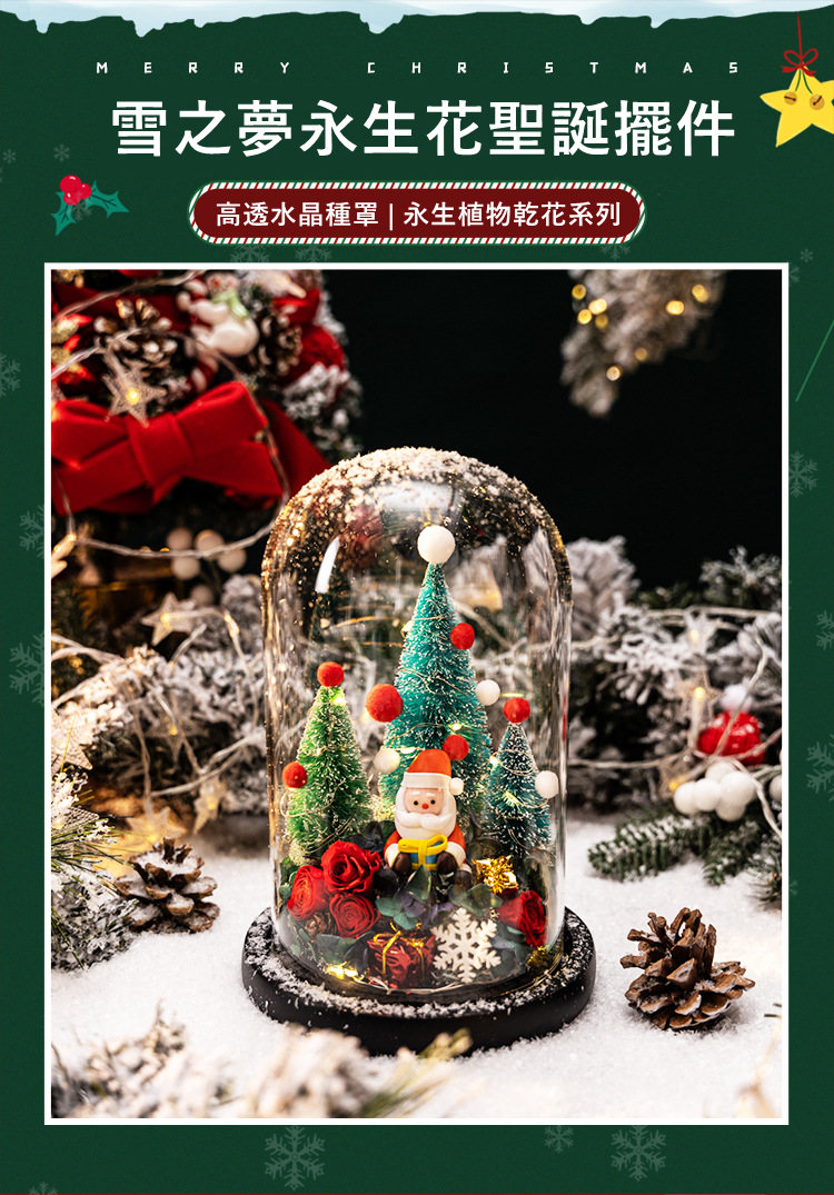 雪之夢永生玫瑰聖誕擺件 | 高透水晶玻璃種罩 | 超浪漫氛圍感送女生情侶聖誕交換禮物永生植物乾燥花聖誕老人水晶玻璃種罩擺件
