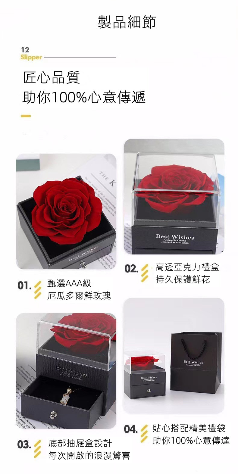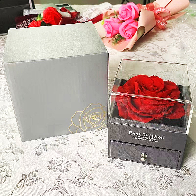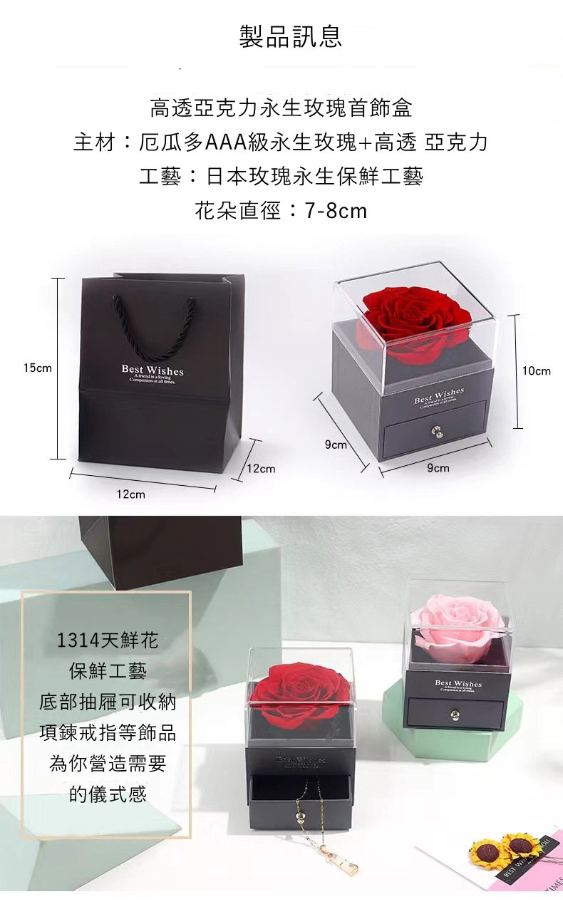 厄瓜多爾永生玫瑰首飾盒 | 高透亞克力禮盒 | 日式真玫瑰永生保鮮工藝 | 浪漫儀式感送女生告白生日禮物厄瓜多爾AAA級永生玫瑰首飾盒