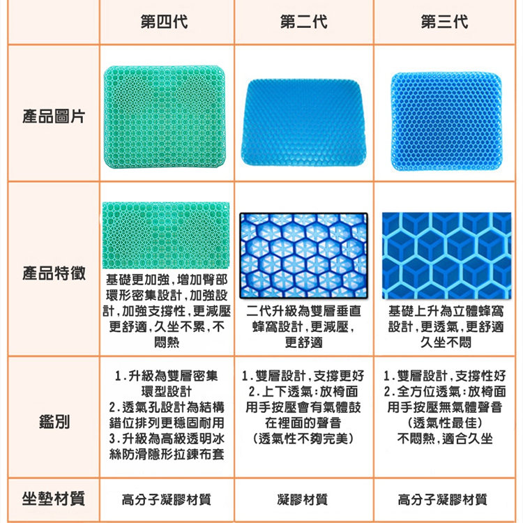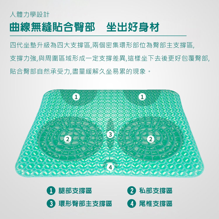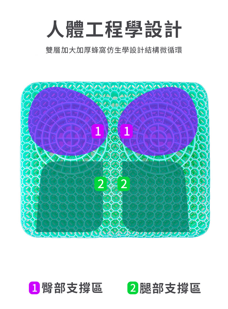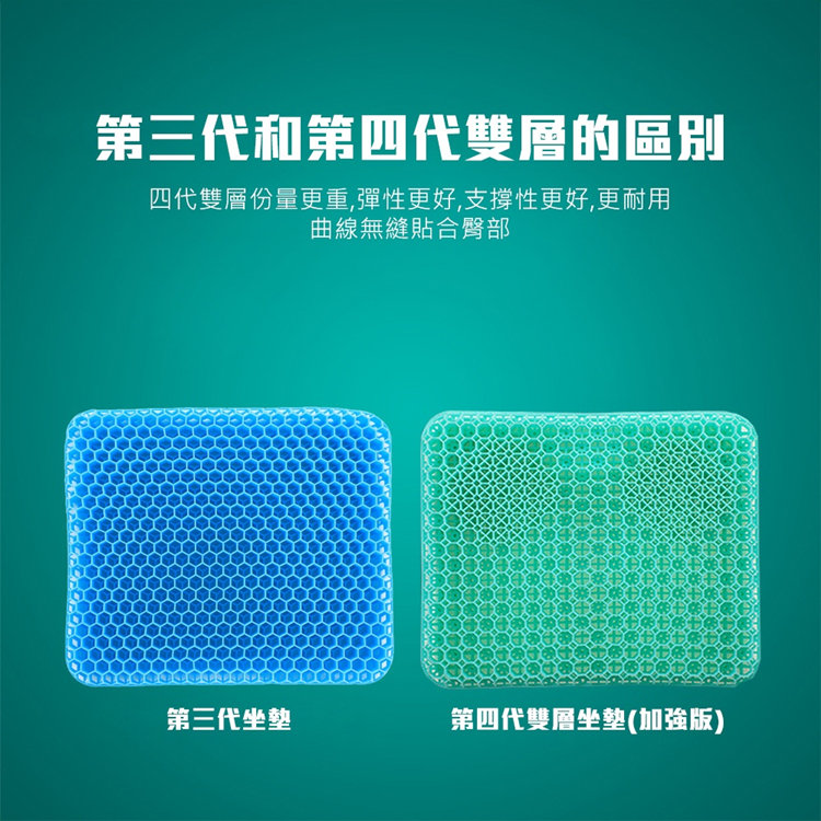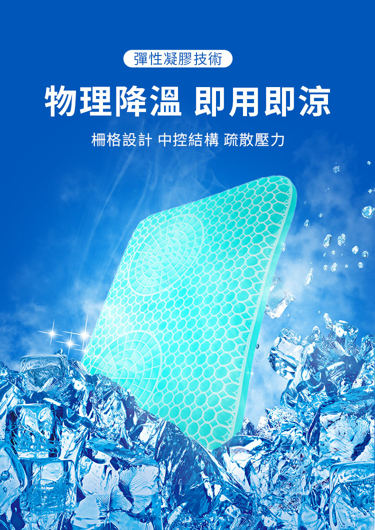 -6℃ GEL高分子凝膠坐墊 | 立体蜂窝物理降温 | 曲線無縫貼合 | 雙層設計更舒適 | 2022全新升級四代高分子凝膠體感降溫舒適清爽蜂窩凝膠坐墊