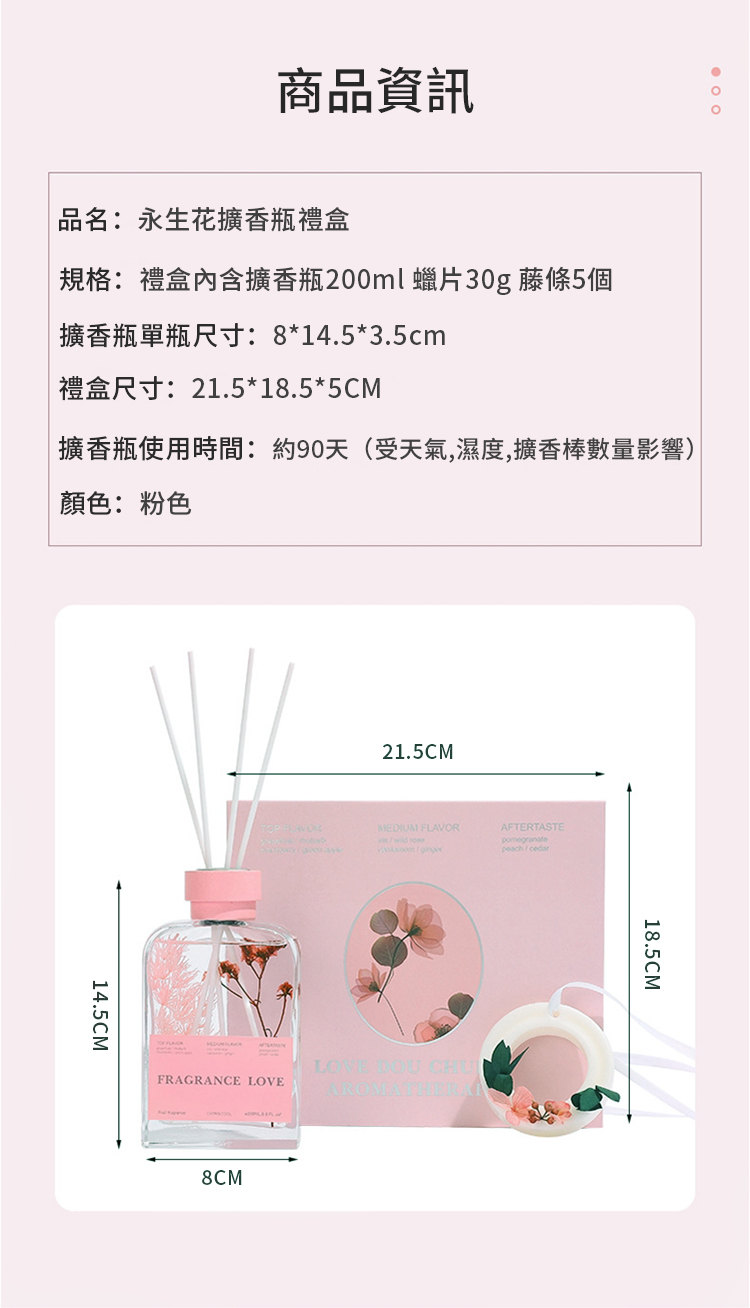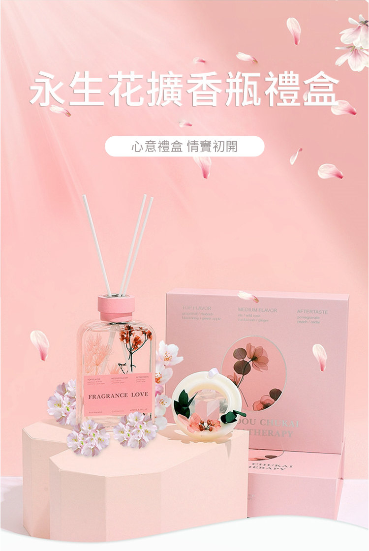 永生花浮游瓶精油擴香瓶組禮盒 | 手工乾燥花蠟片 | 少女心禮物花漾果調高級精油香氛清淨空氣永生花浮游瓶香氛蠟片擴香組禮盒