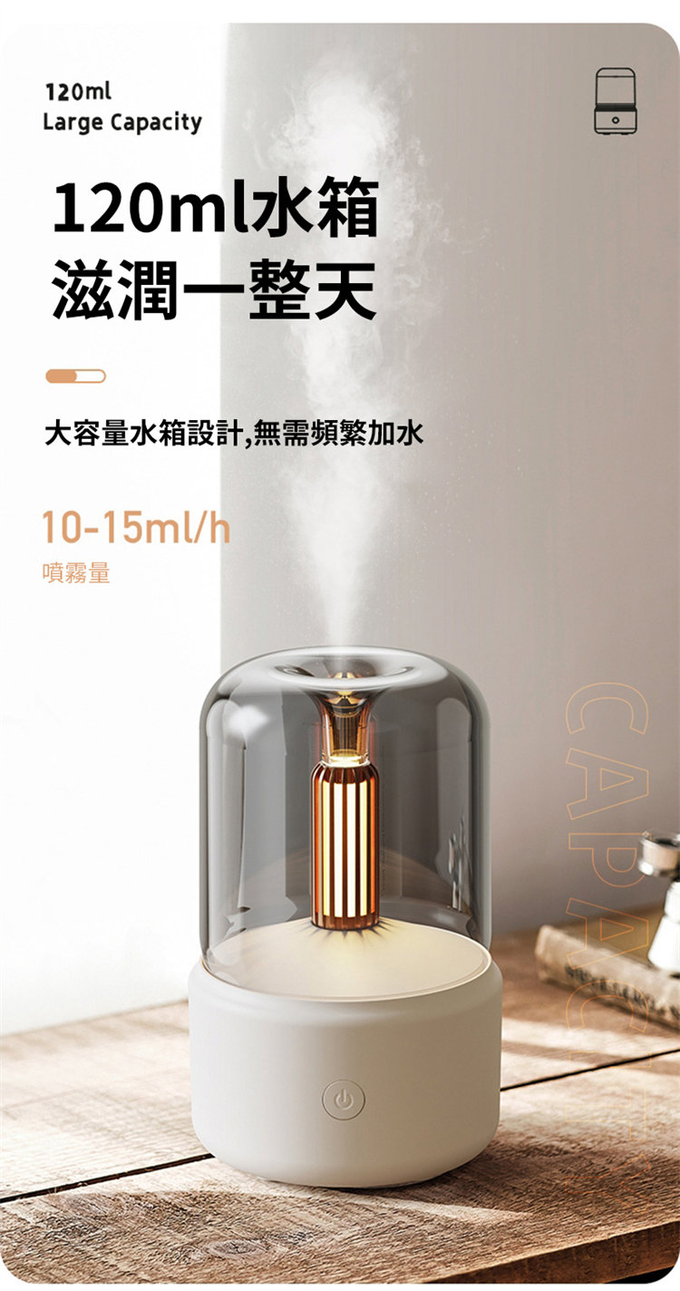 燭光夜燈香氛加濕器水氧機 | 限時送精油 | 奈米超音波霧化無損精油 | 智慧缺水斷電 | 氛圍感日式美型燭光大水箱精油香薰機香氛加濕器水氧機