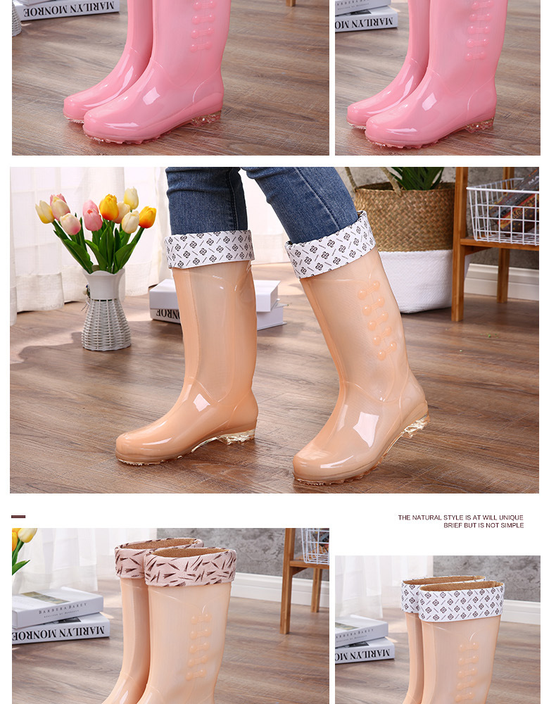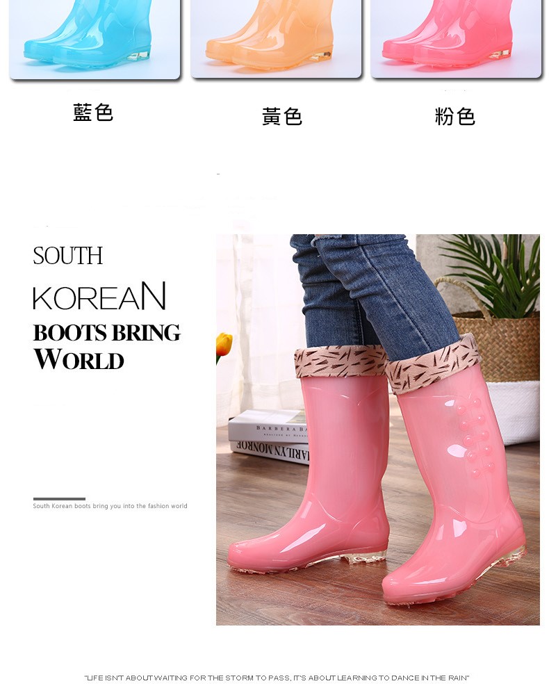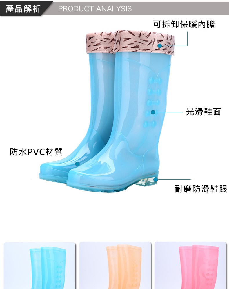 【糖果中筒靴】韓版糖果色時尚PVC防滑輕便舒適透氣四季雨靴可拆卸絨布內裡