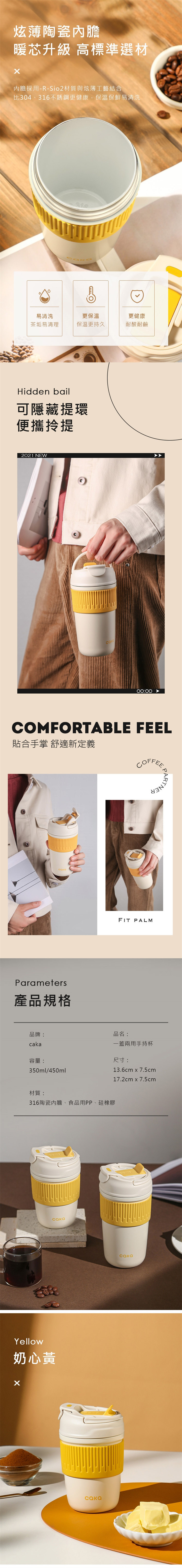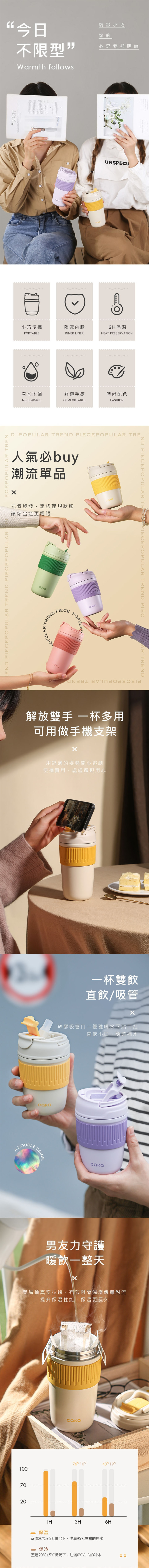 316不鏽鋼+陶瓷內膽鍍層;長效鎖溫 冷熱飲隨心帶