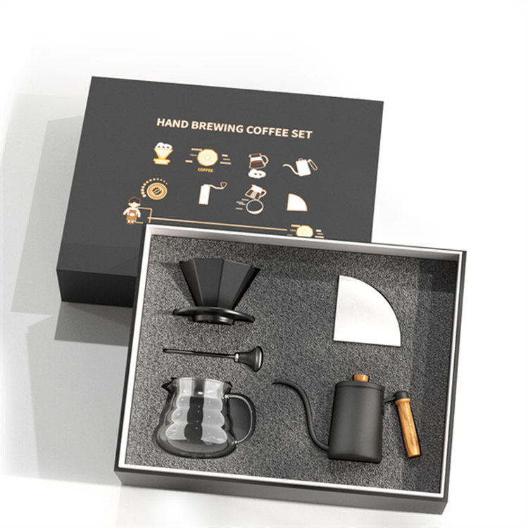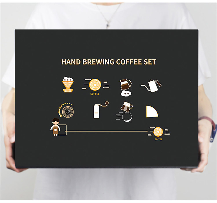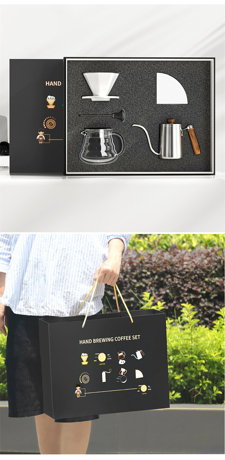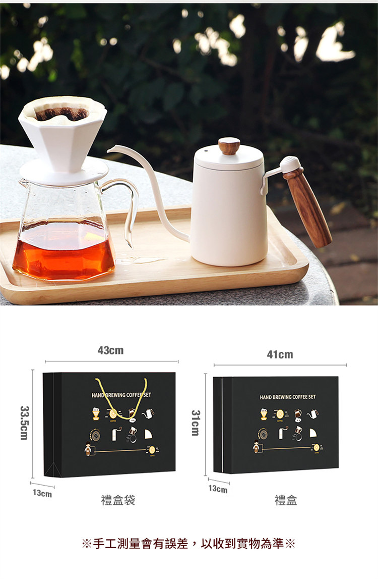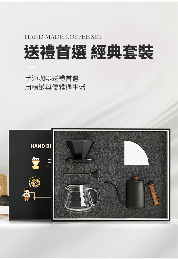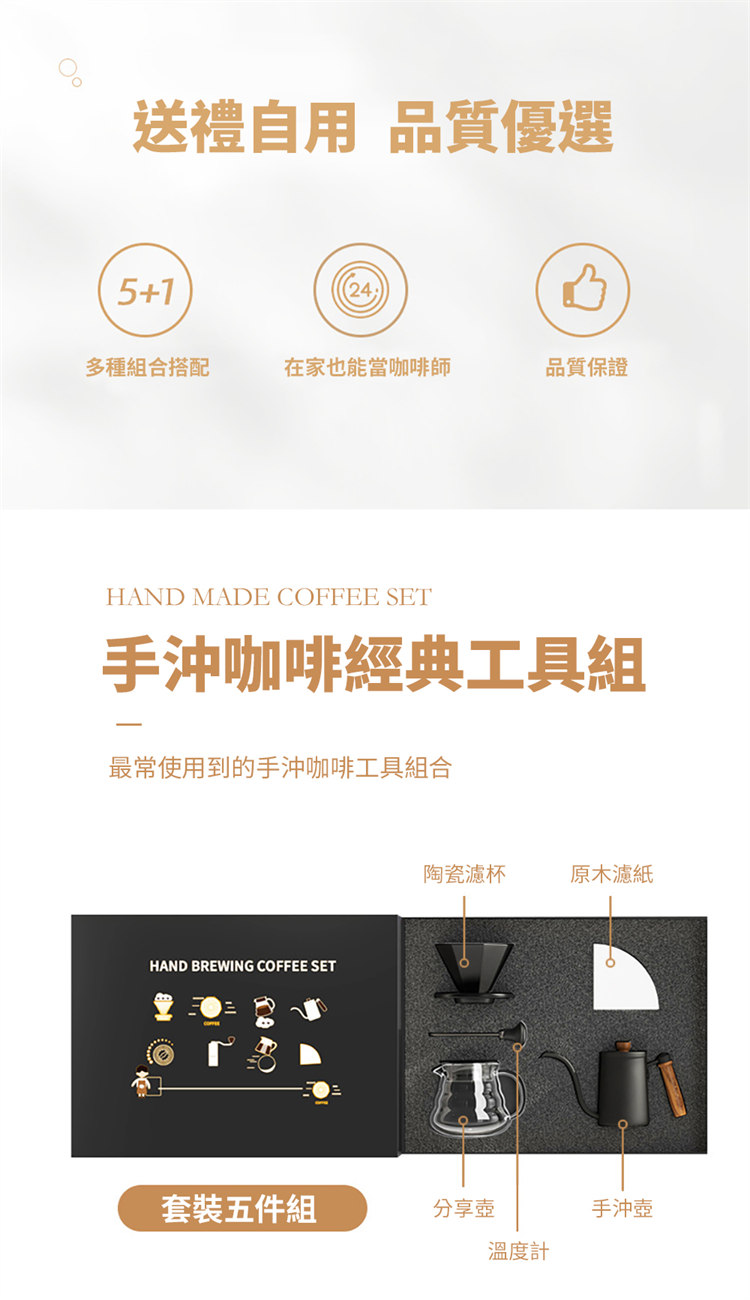 咖啡師級手沖咖啡五件套組禮盒 | 高檔送男女生日聖誕禮物不鏽鋼手沖壺+陶瓷濾杯+強化玻璃分享壺+原木漿濾紙+咖啡物理溫度計五件套組禮盒