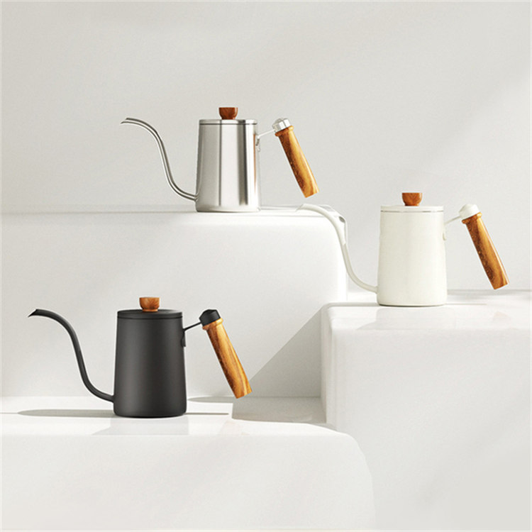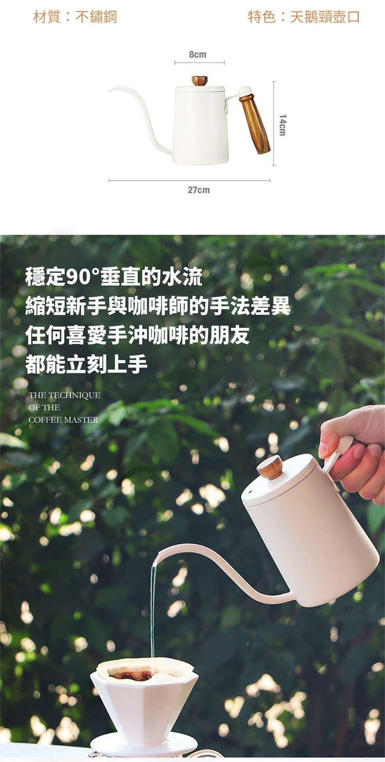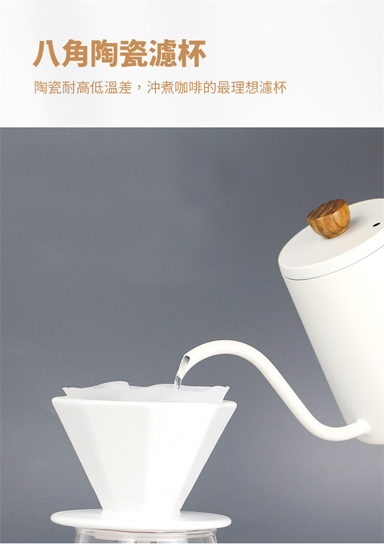 • 不鏽鋼色手沖壺+白色濾杯五件套組