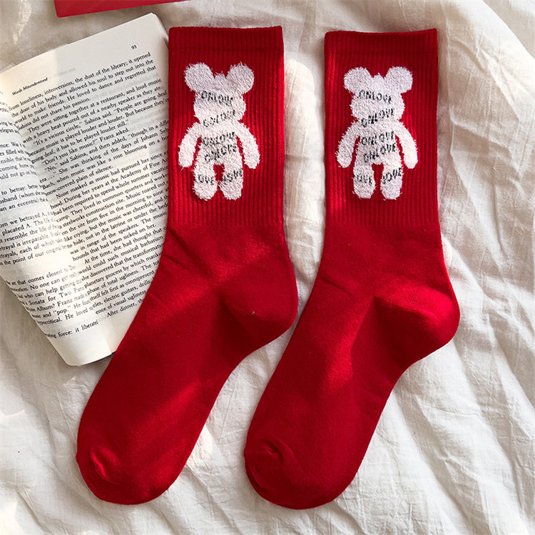 超值混色六雙入 | 軟糯棉質舒適親膚 | 漿果正紅卡通刺繡 | 加固耐磨耐洗滌 | 透氣防臭 |漿果正紅卡通刺繡純系親膚舒適清新除臭男女襪子