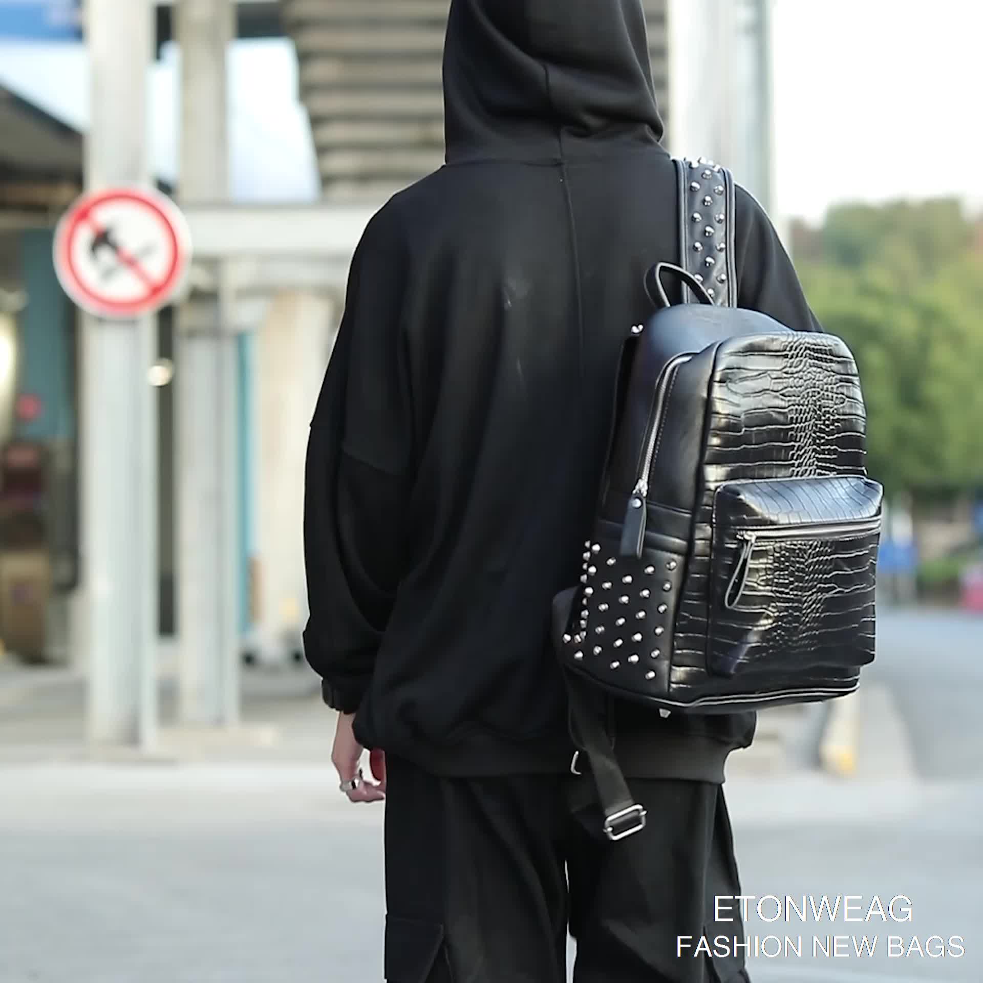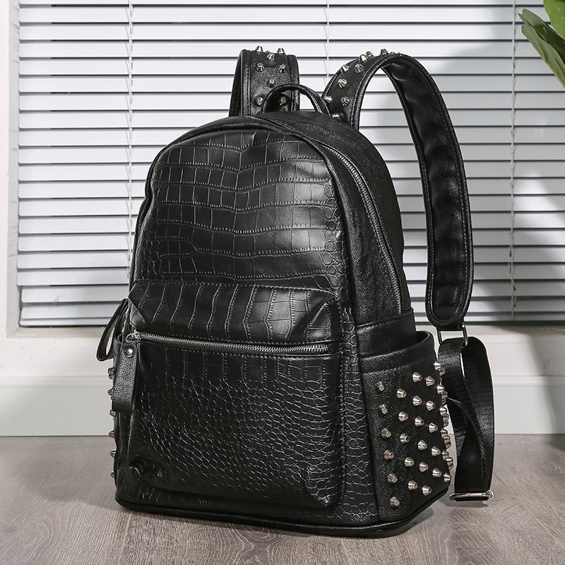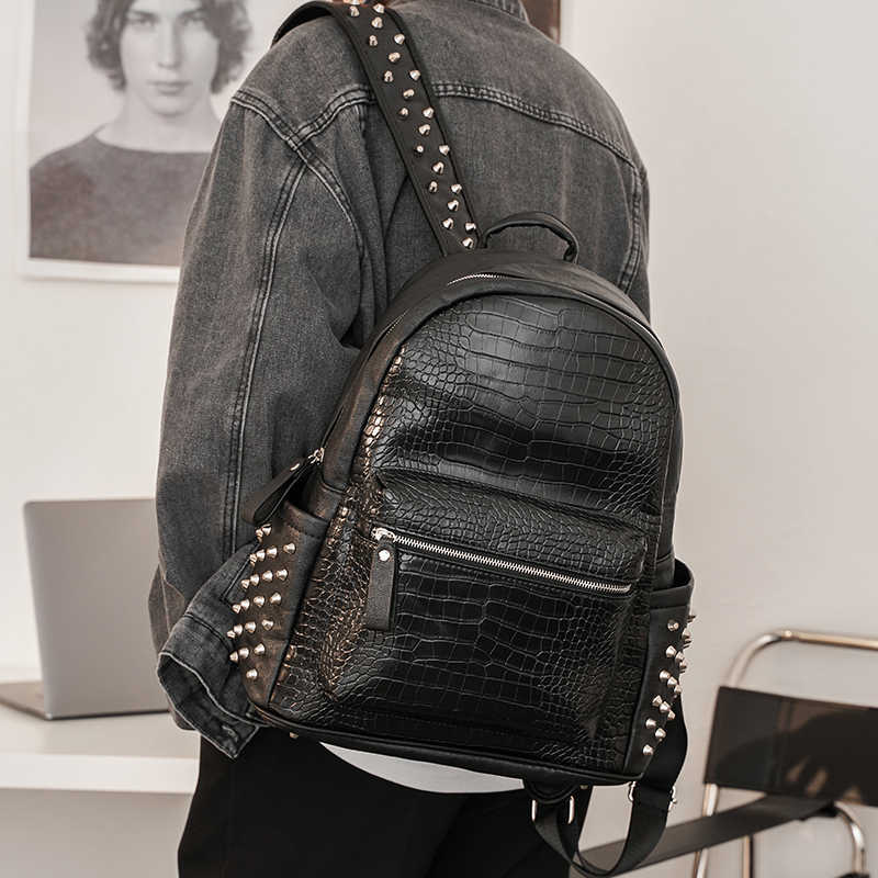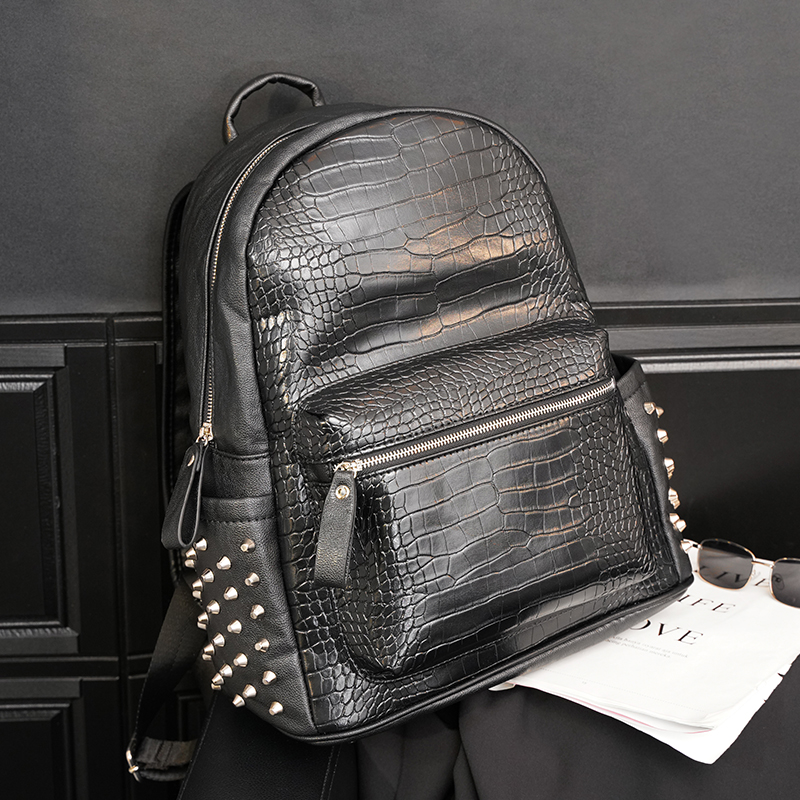 韓版鳄魚紋鉚釘雙肩包潮流背包電腦包學生書包男女情侶後背包