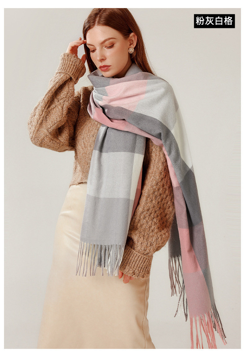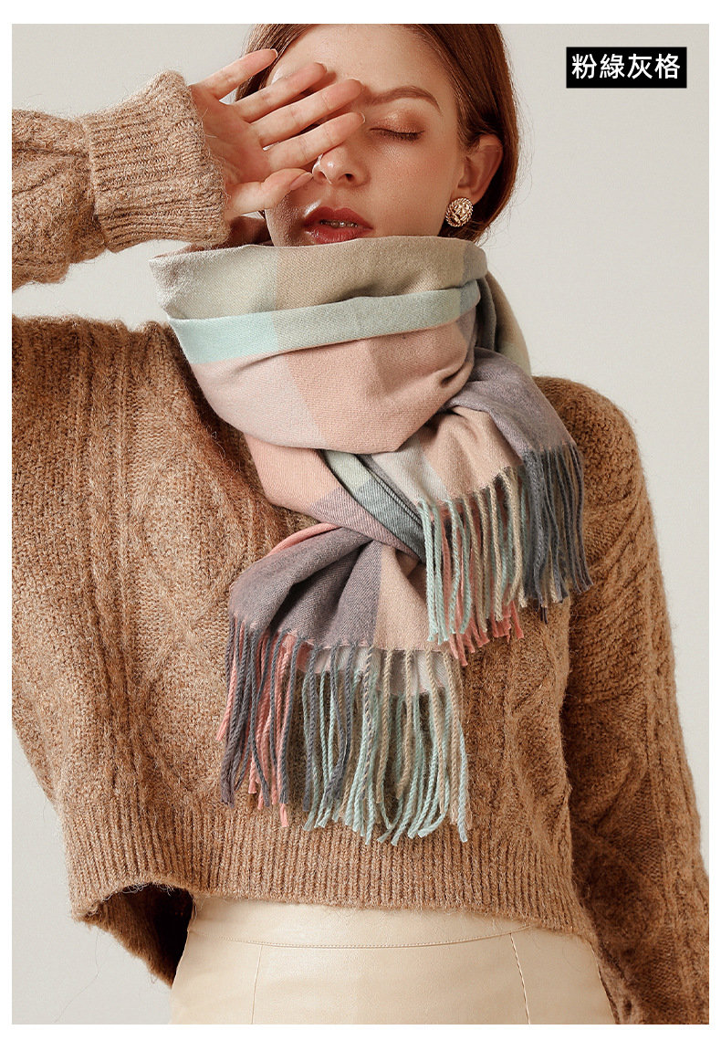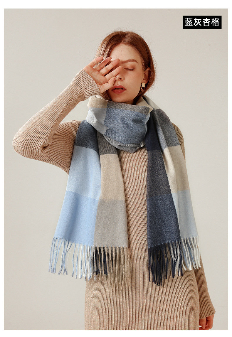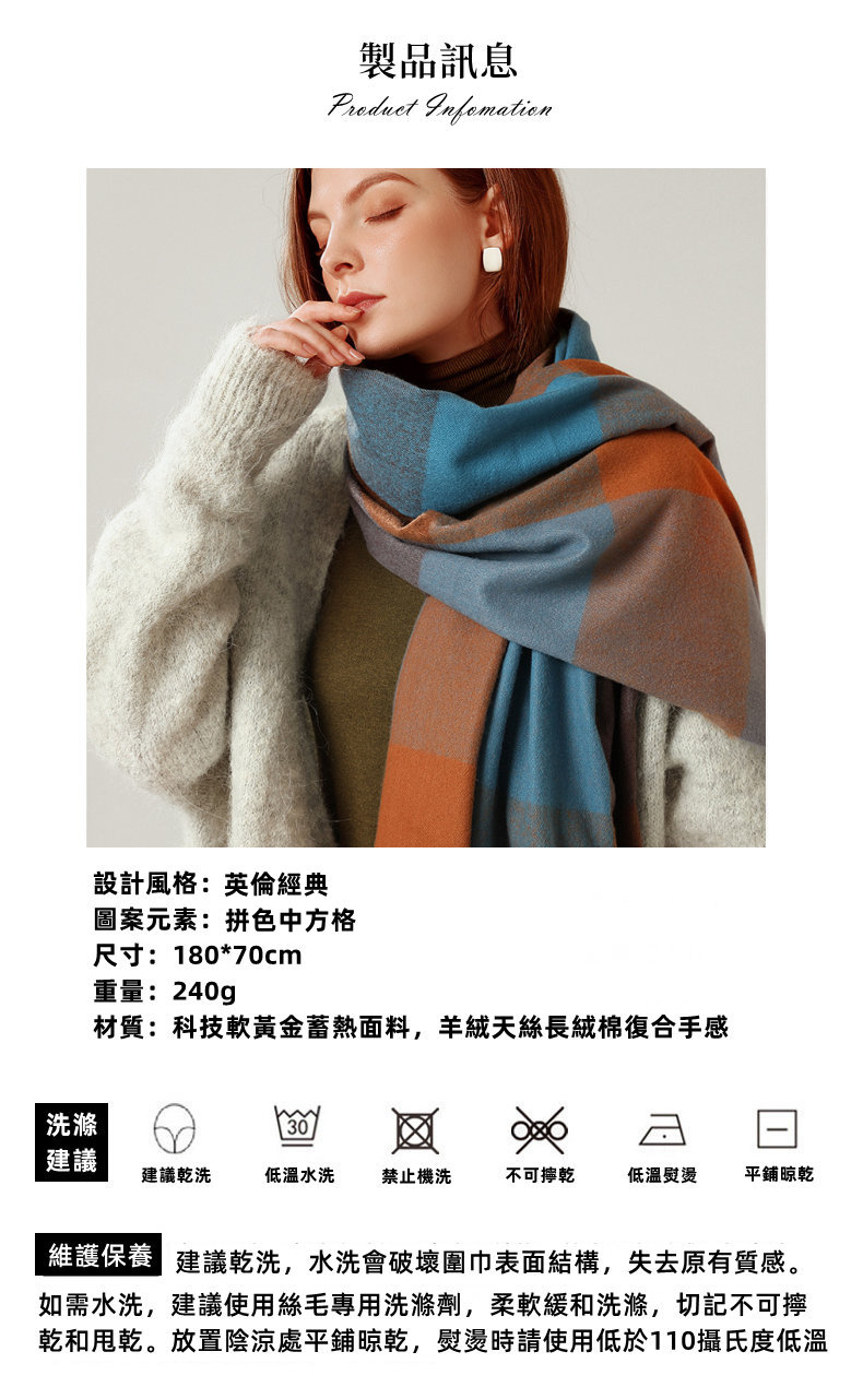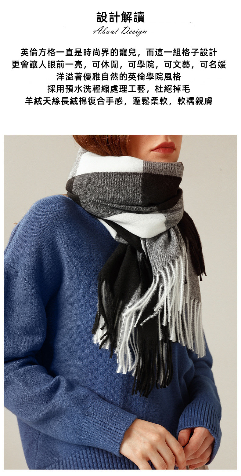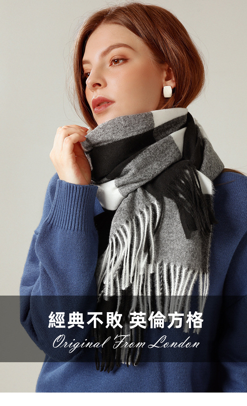 經典不敗英倫方格 | 科技蓄熱軟黃金復合面料 | 軟糯親膚 | 英倫經典中方格羊絨天絲長絨棉復合手感不掉毛蓄熱保暖男女披肩圍脖圍巾