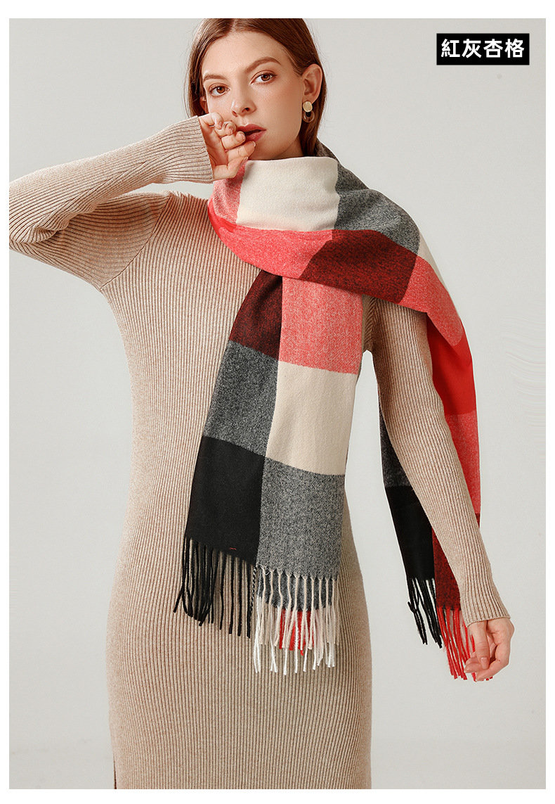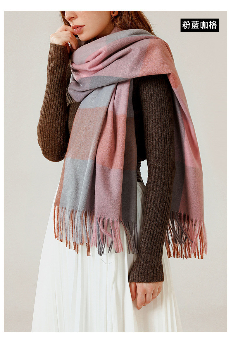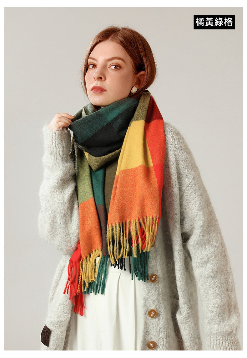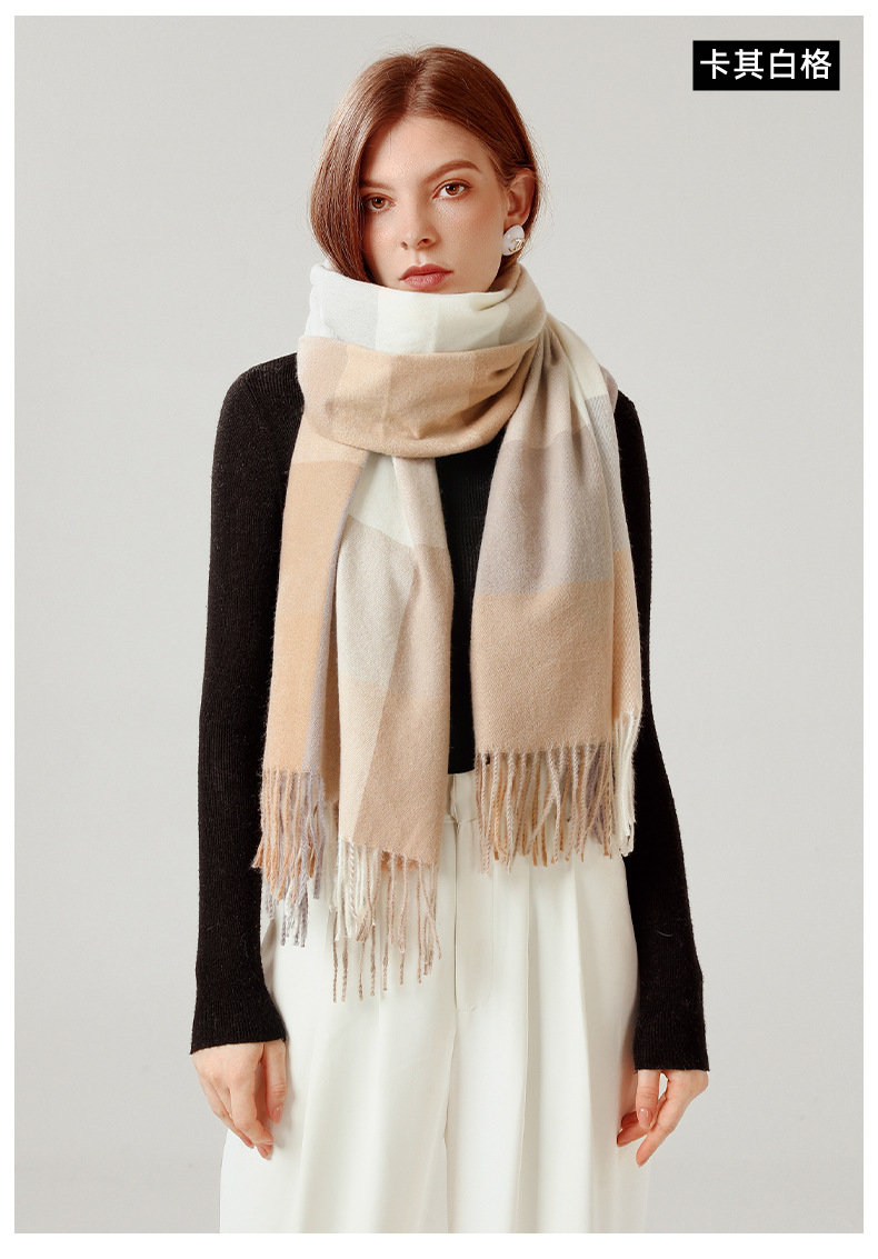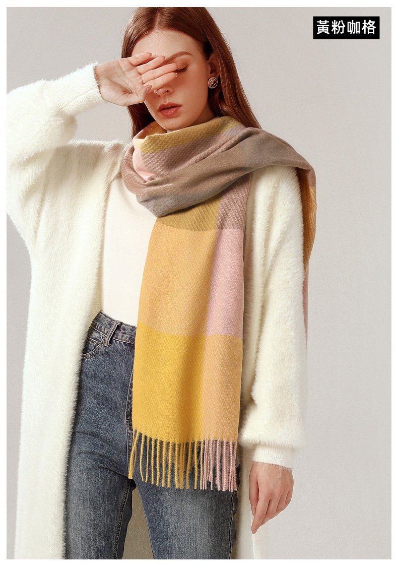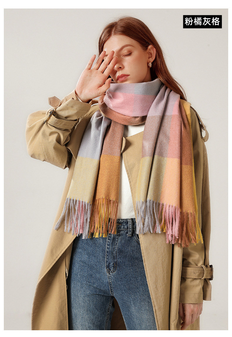 經典不敗英倫方格 | 科技蓄熱軟黃金復合面料 | 軟糯親膚 | 英倫經典中方格羊絨天絲長絨棉復合手感不掉毛蓄熱保暖男女披肩圍脖圍巾