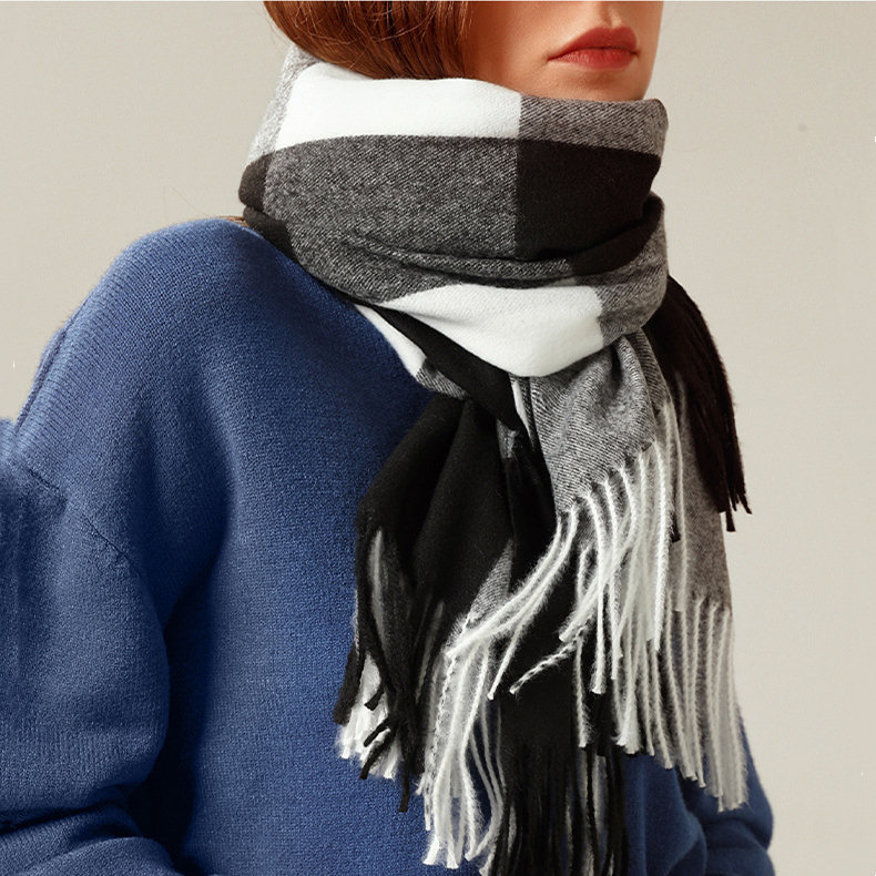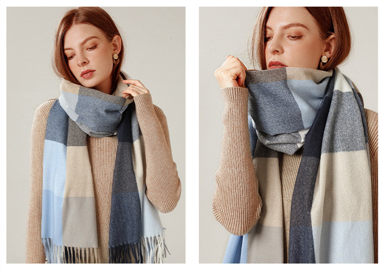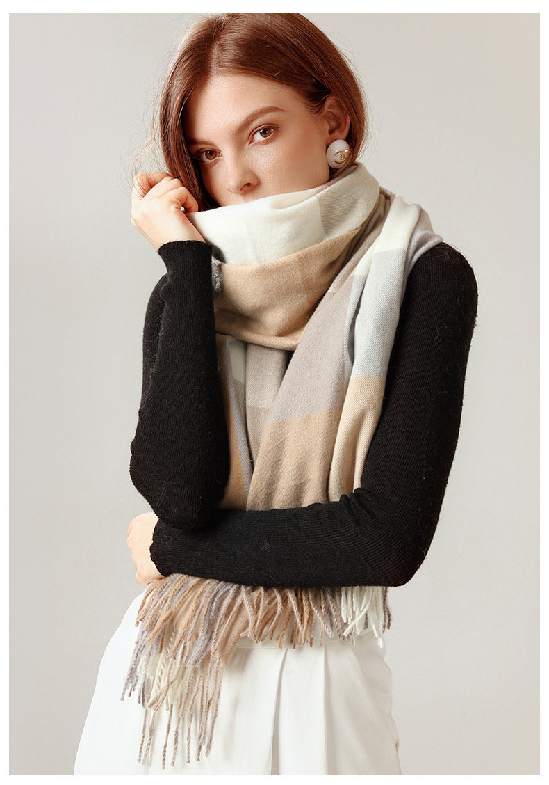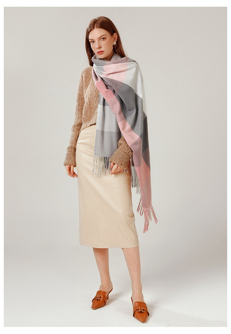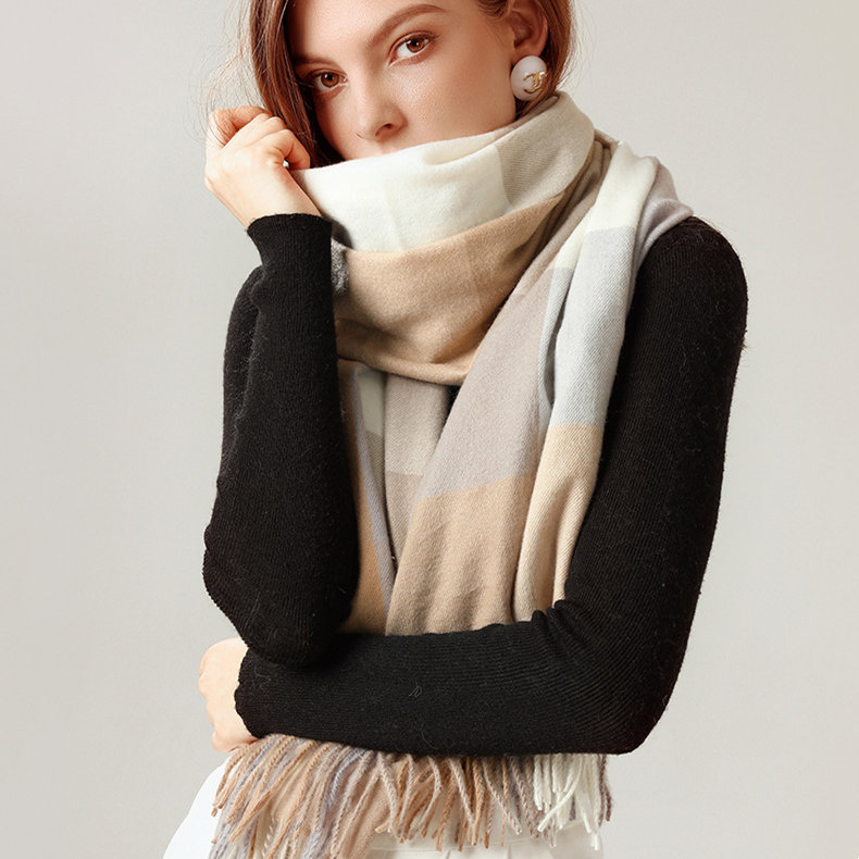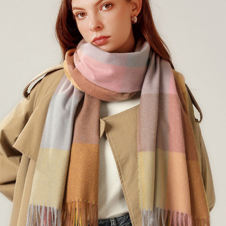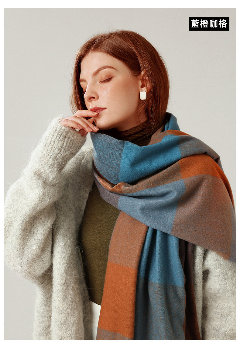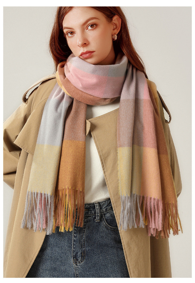 經典不敗英倫方格 | 科技蓄熱軟黃金復合面料 | 軟糯親膚 | 英倫經典中方格羊絨天絲長絨棉復合手感不掉毛蓄熱保暖男女披肩圍脖圍巾