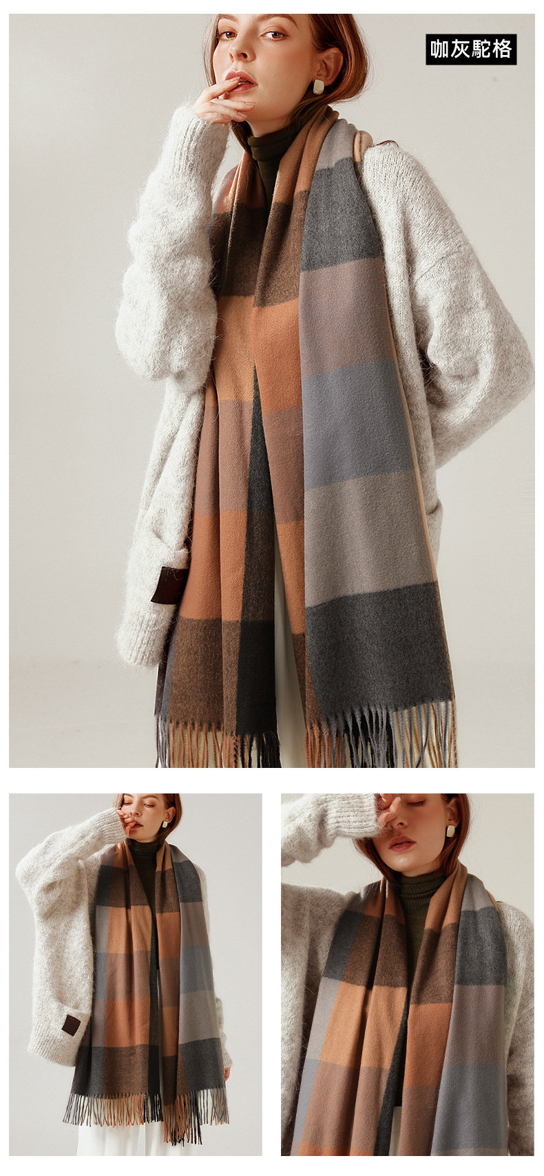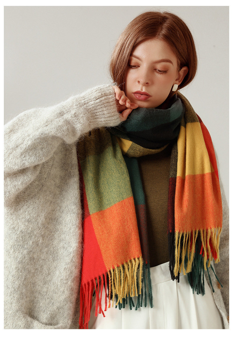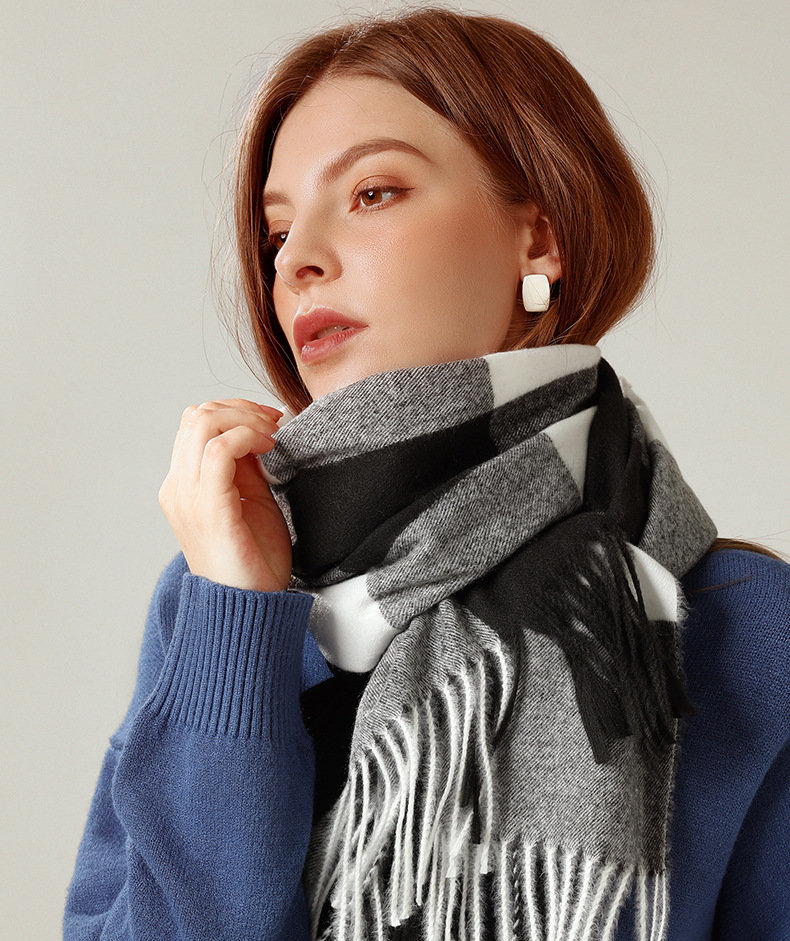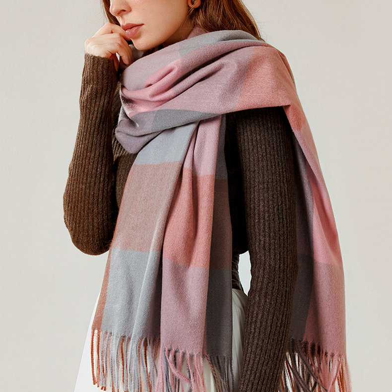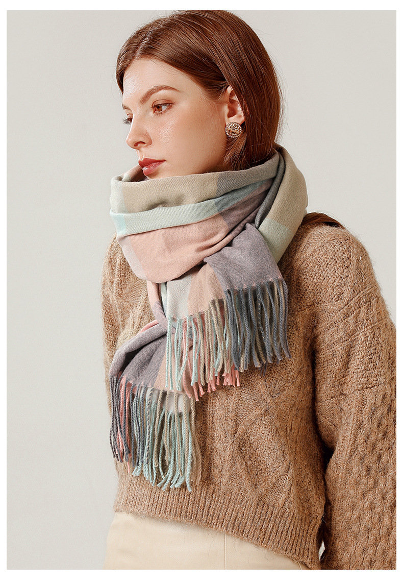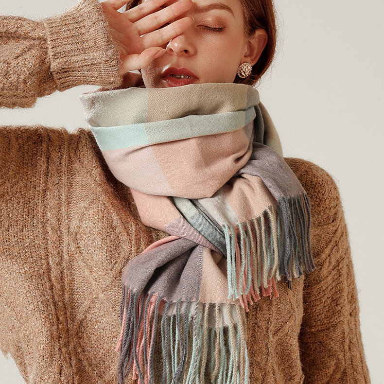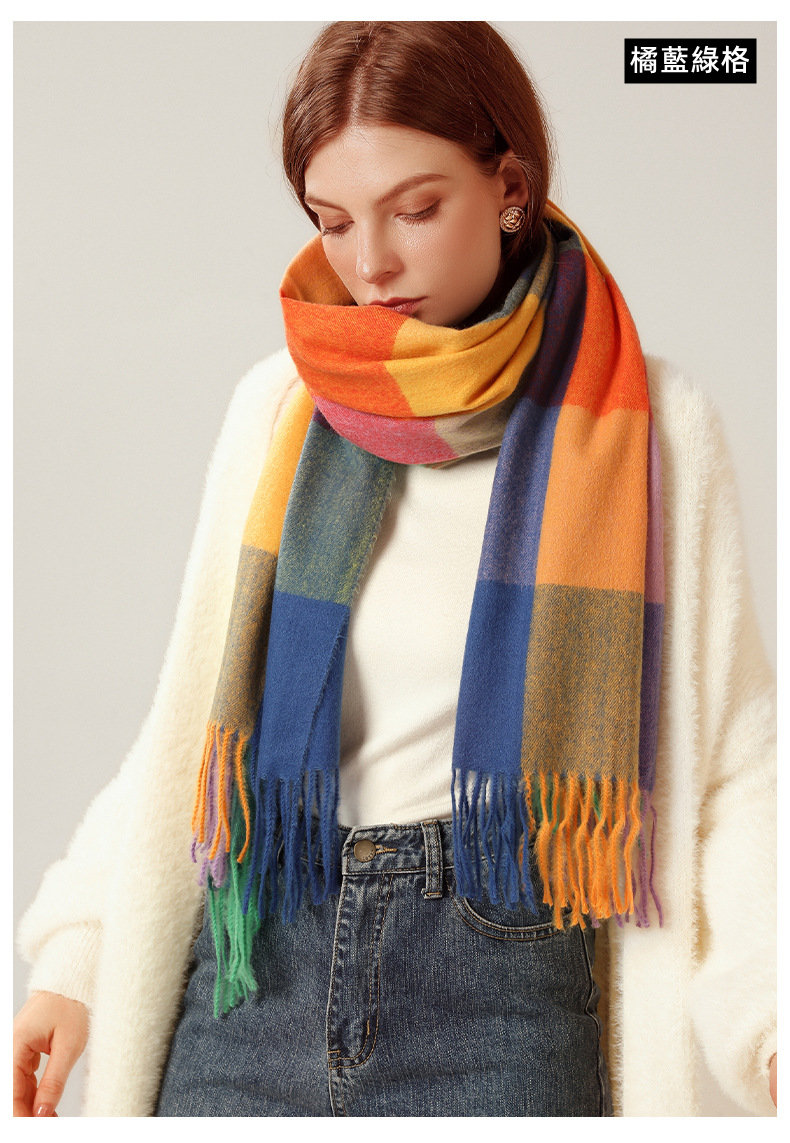 經典不敗英倫方格 | 科技蓄熱軟黃金復合面料 | 軟糯親膚 | 英倫經典中方格羊絨天絲長絨棉復合手感不掉毛蓄熱保暖男女披肩圍脖圍巾