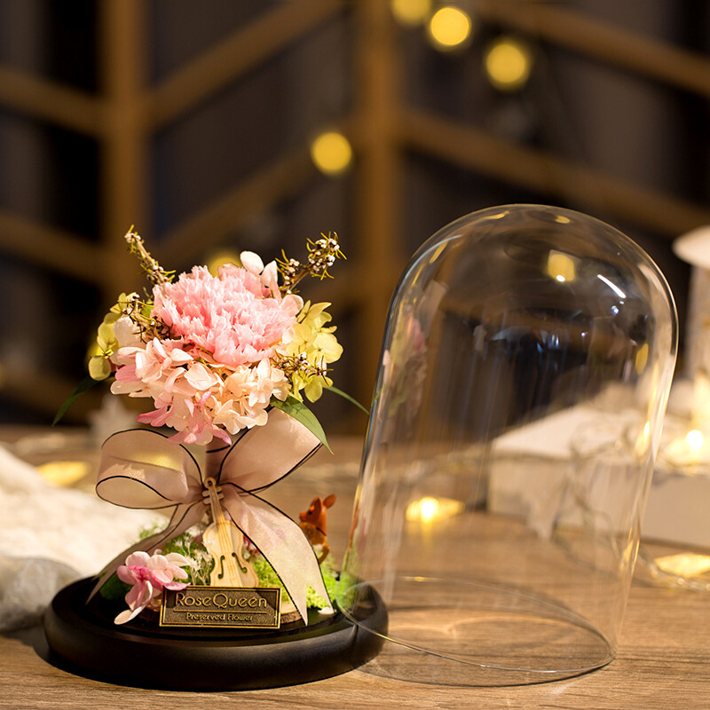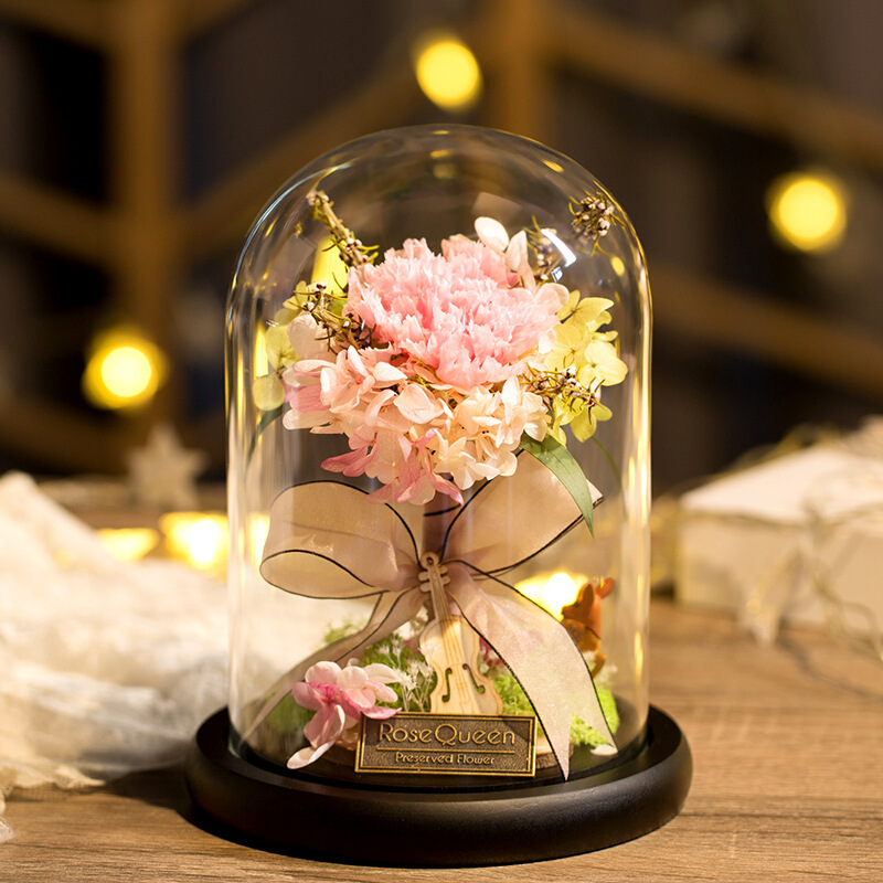 【永生康乃馨玻璃罩】【日本真康乃馨永生工藝】八年保鮮高檔日式手工永生康乃馨玻璃罩禮盒 (康乃馨)