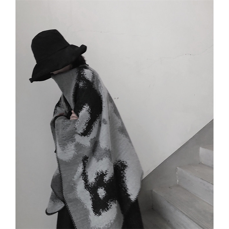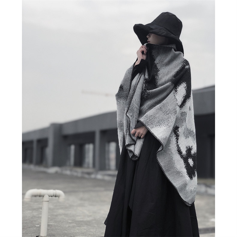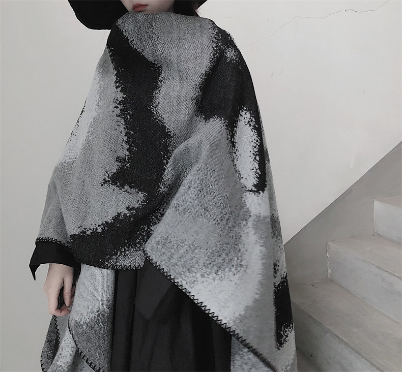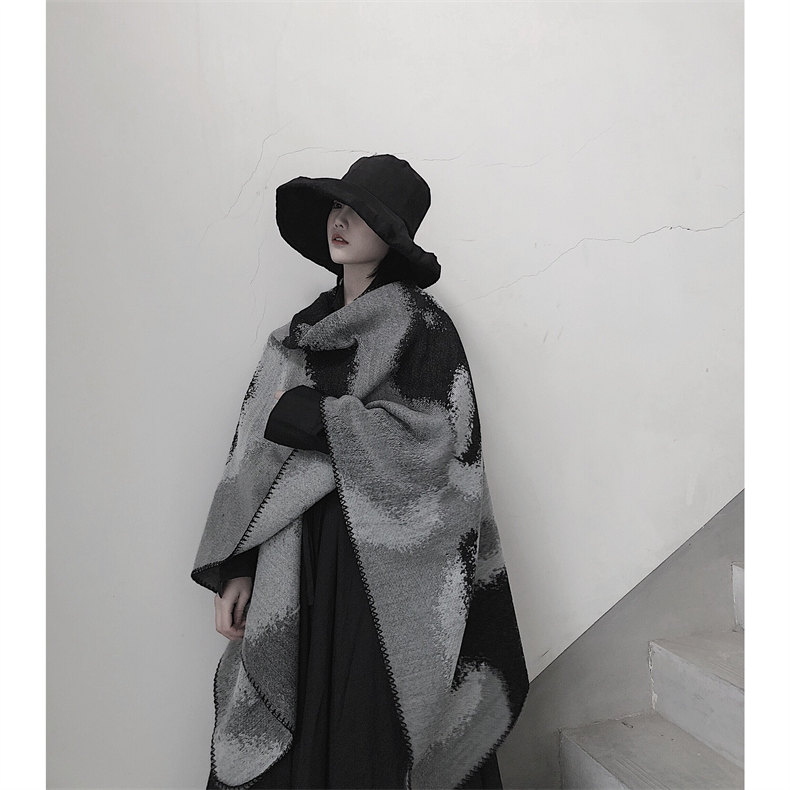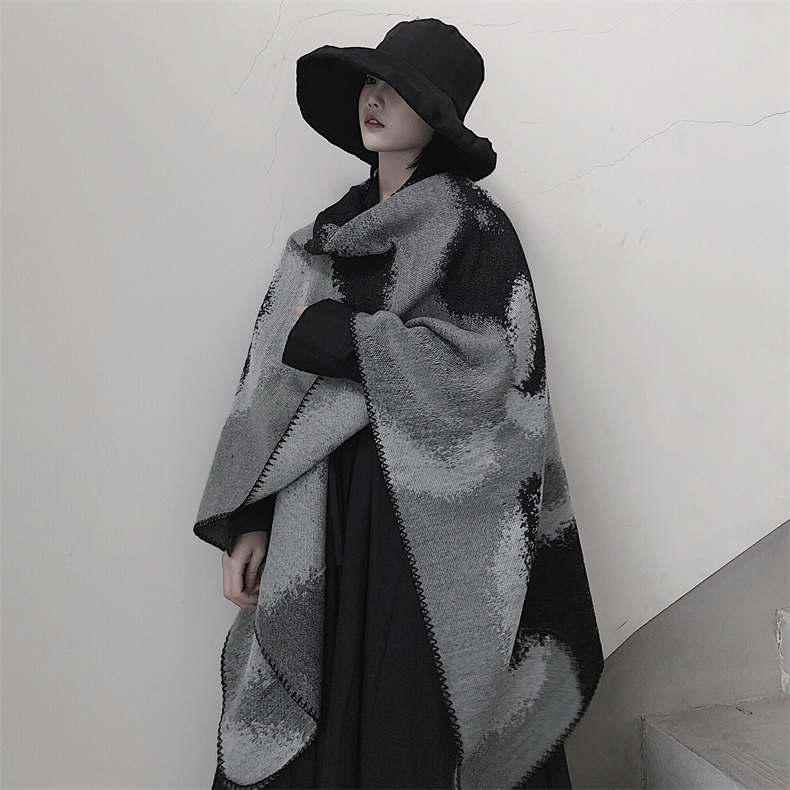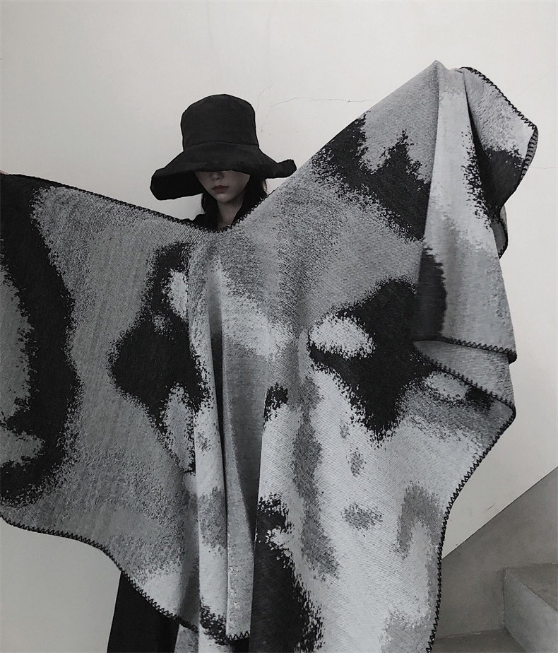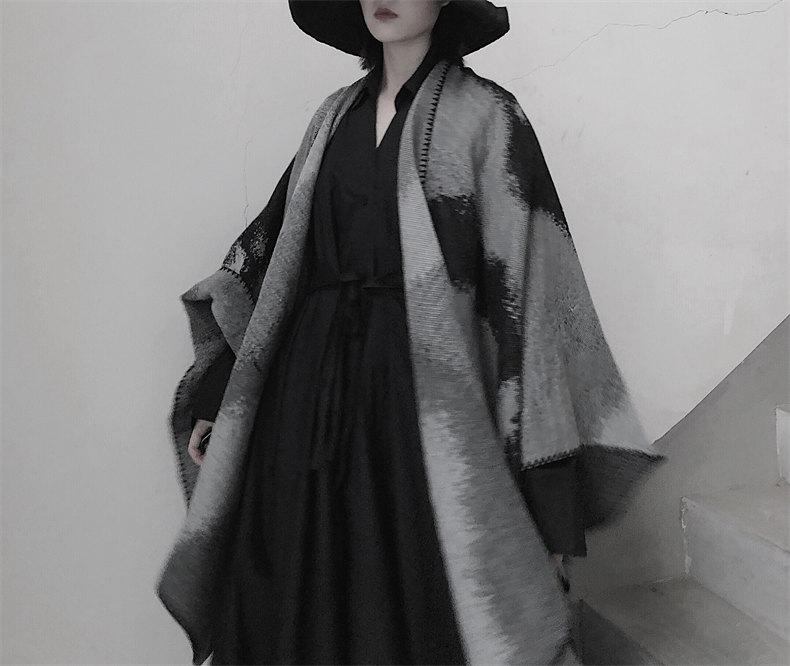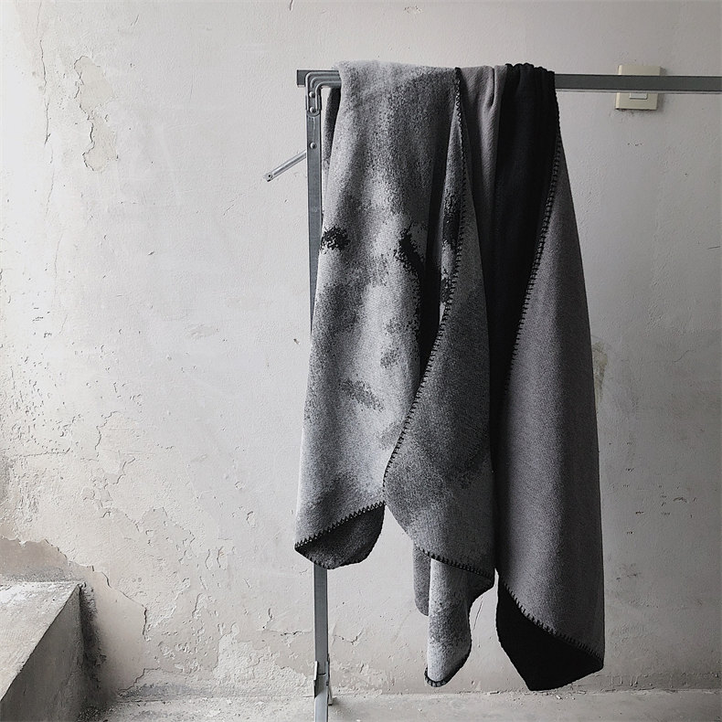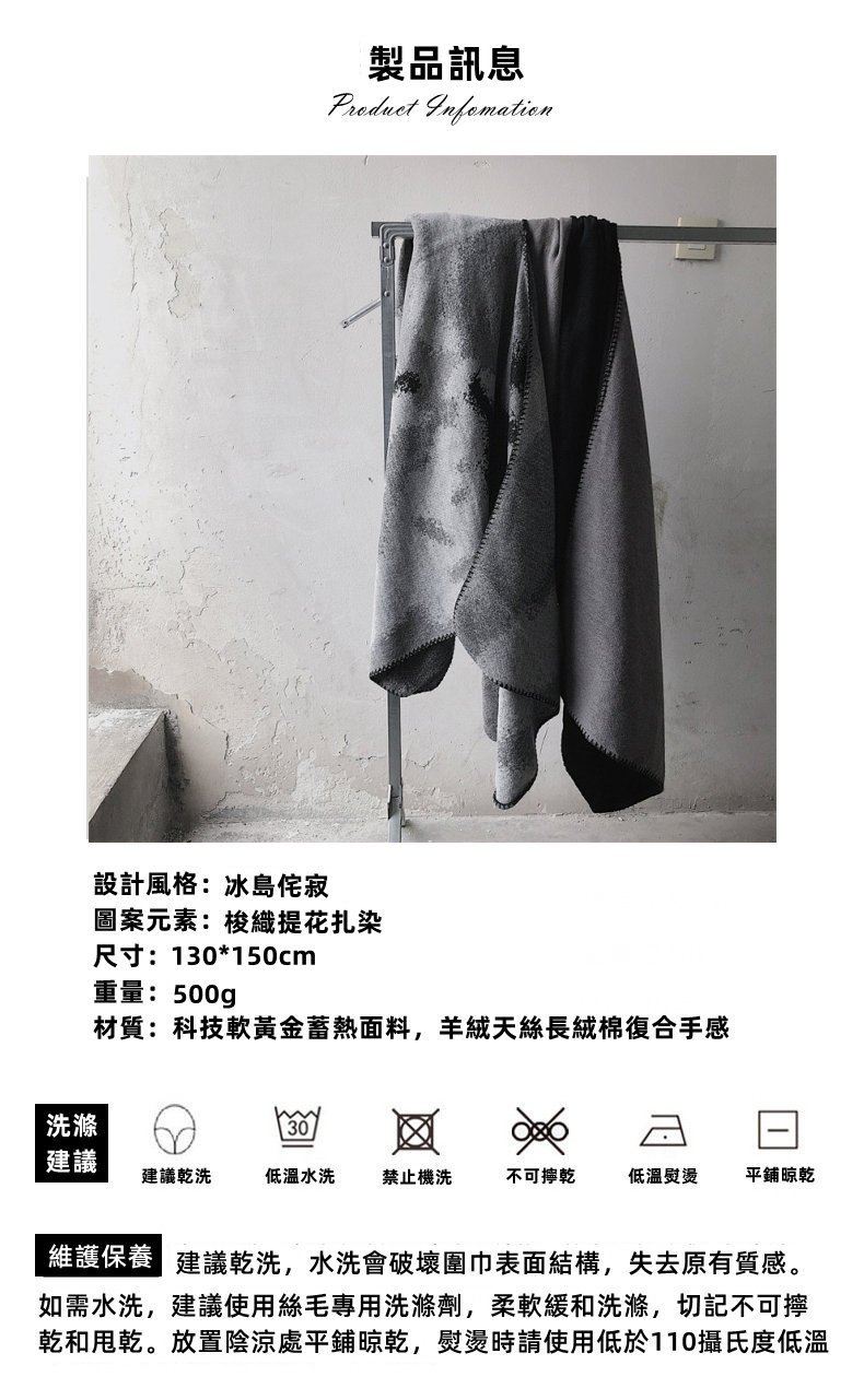 冰島侘寂文藝設計 | 梭織印花手工扎染 | 超大尺寸可做披肩 | 科技蓄熱軟黃金復合面料羊絨天絲棉麻復合手感蓄熱保暖大披肩圍脖女圍巾