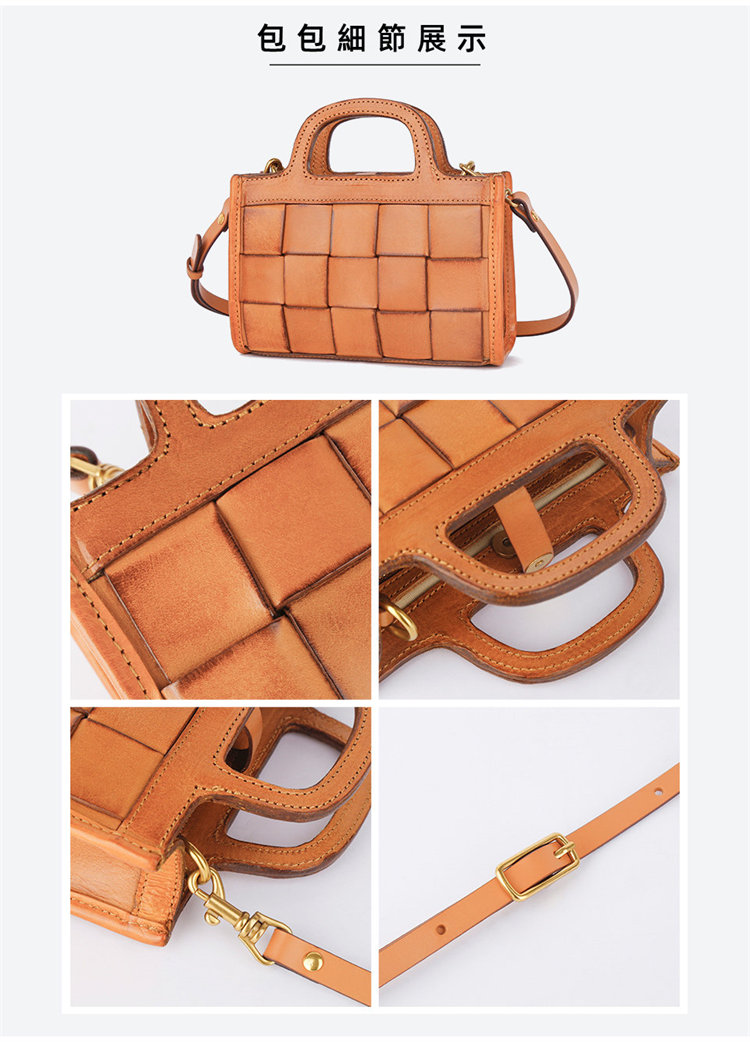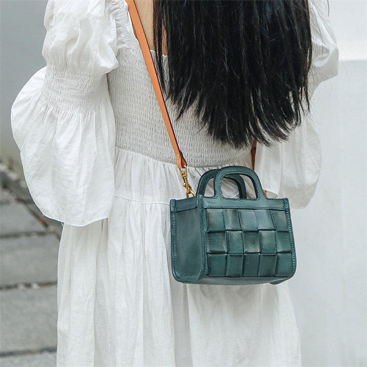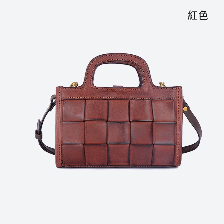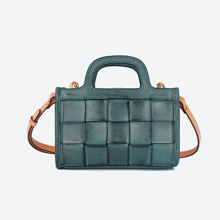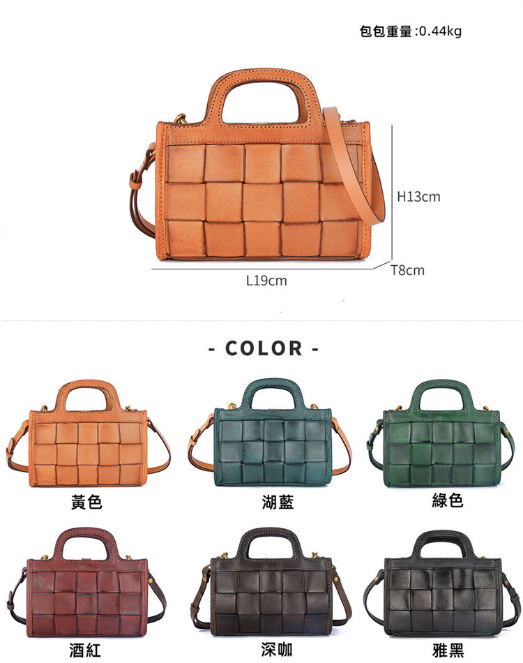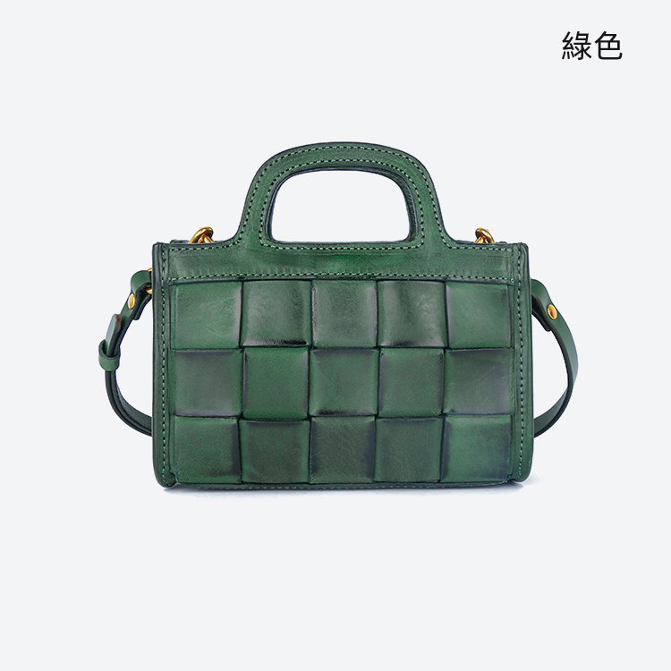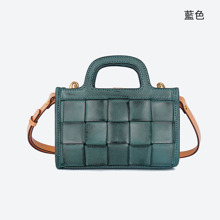 日式編織小方包 | 頭層真皮小牛皮 | 手工編織包 | 斜背包 | 側背包 | 手提包 | 湖藍色復古女包