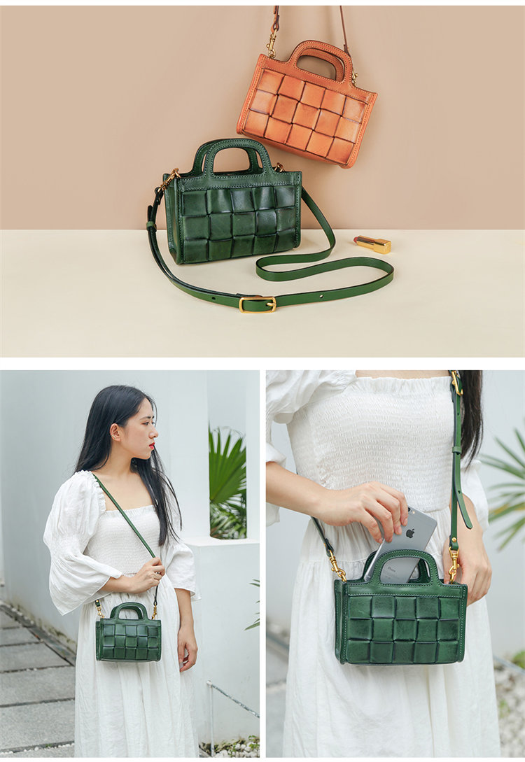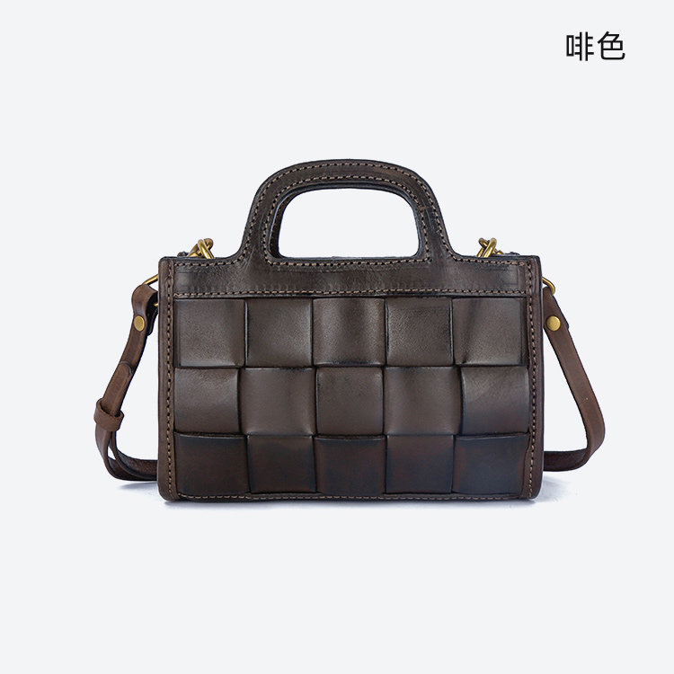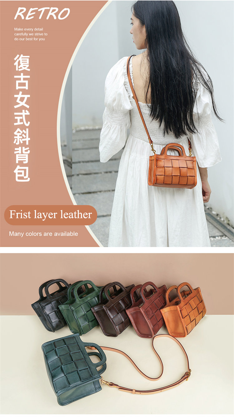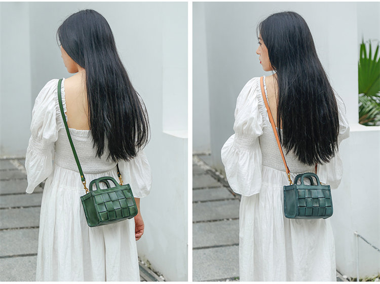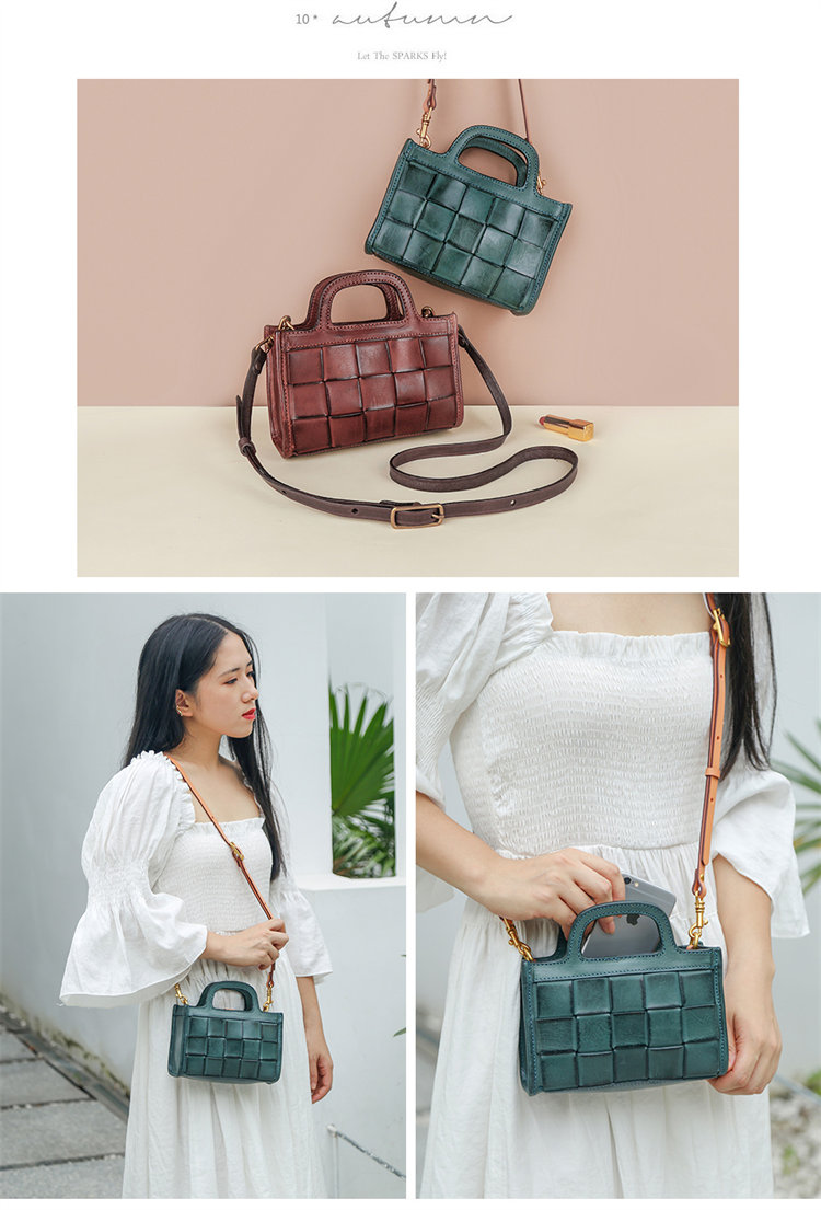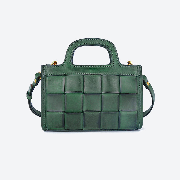 日式編織小方包 | 頭層真皮小牛皮 | 手工編織包 | 斜背包 | 側背包 | 手提包 | 湖藍色復古女包