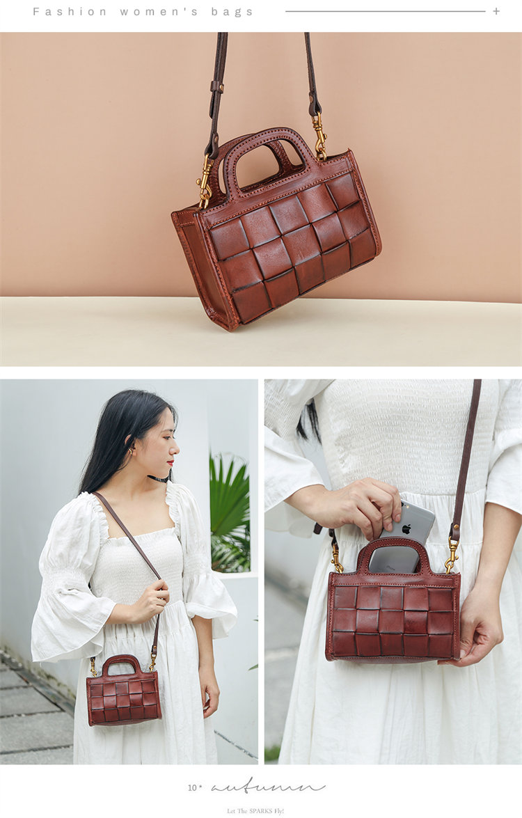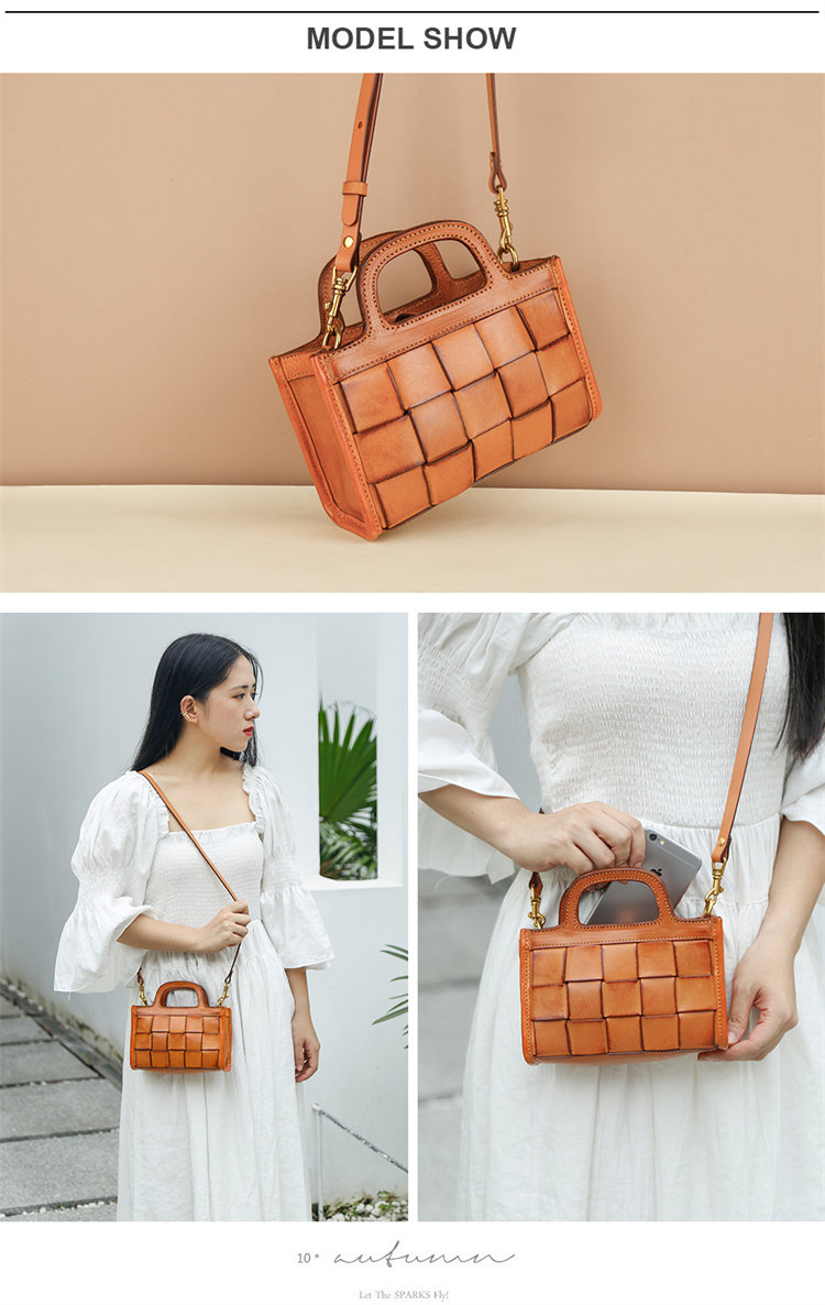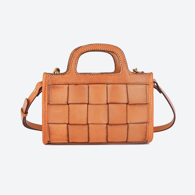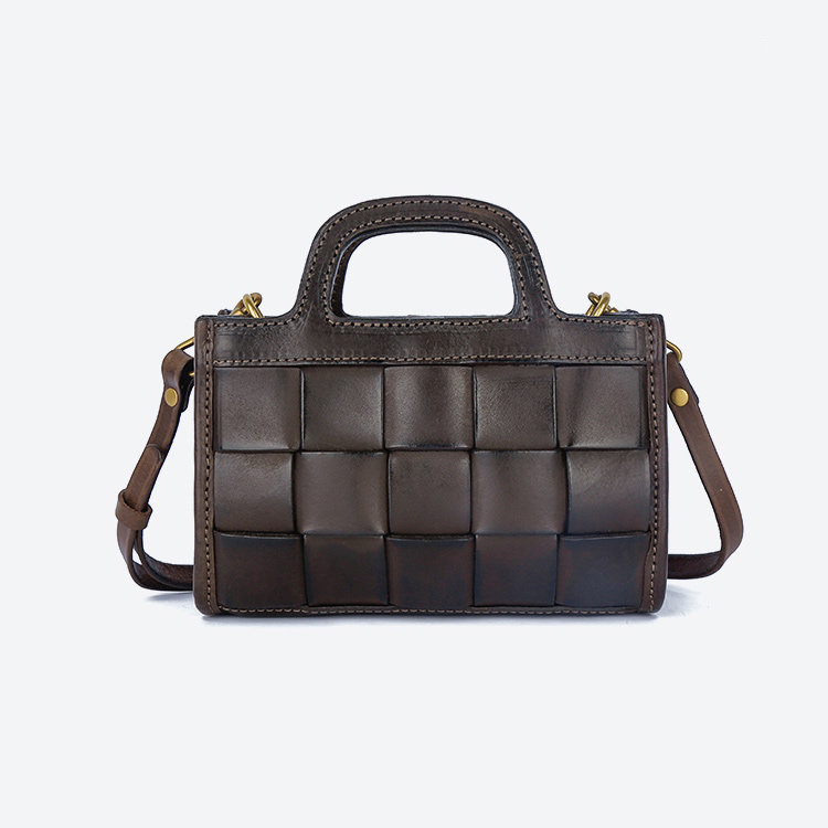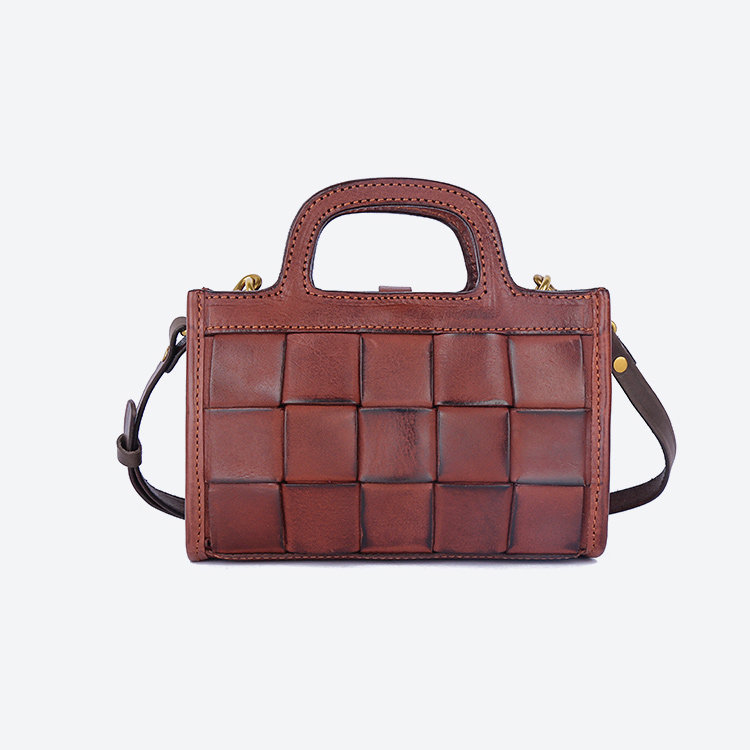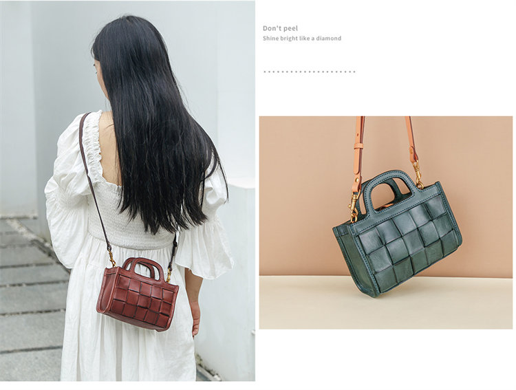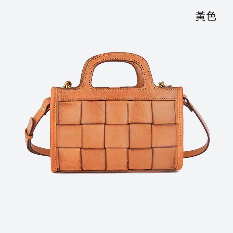 日式編織小方包 | 頭層真皮小牛皮 | 手工編織包 | 斜背包 | 側背包 | 手提包 | 湖藍色復古女包