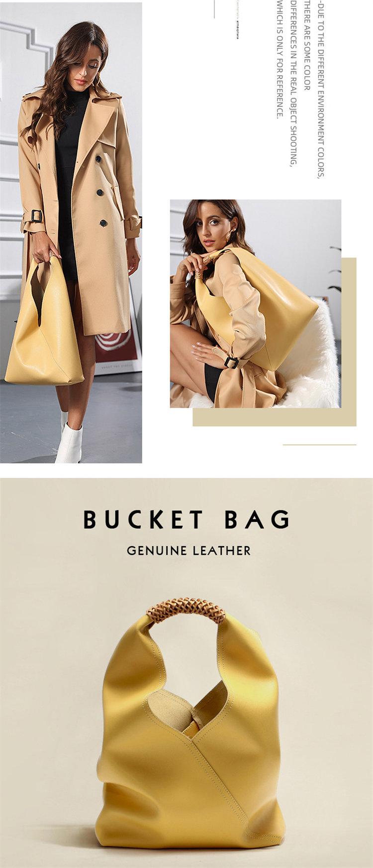 隨性法式托特包 | 頭層植鞣小牛皮 | 編織提手 | 大容量 | 腋下包 | 手提包 | 側背包 | 水桶包 | 棕色女包