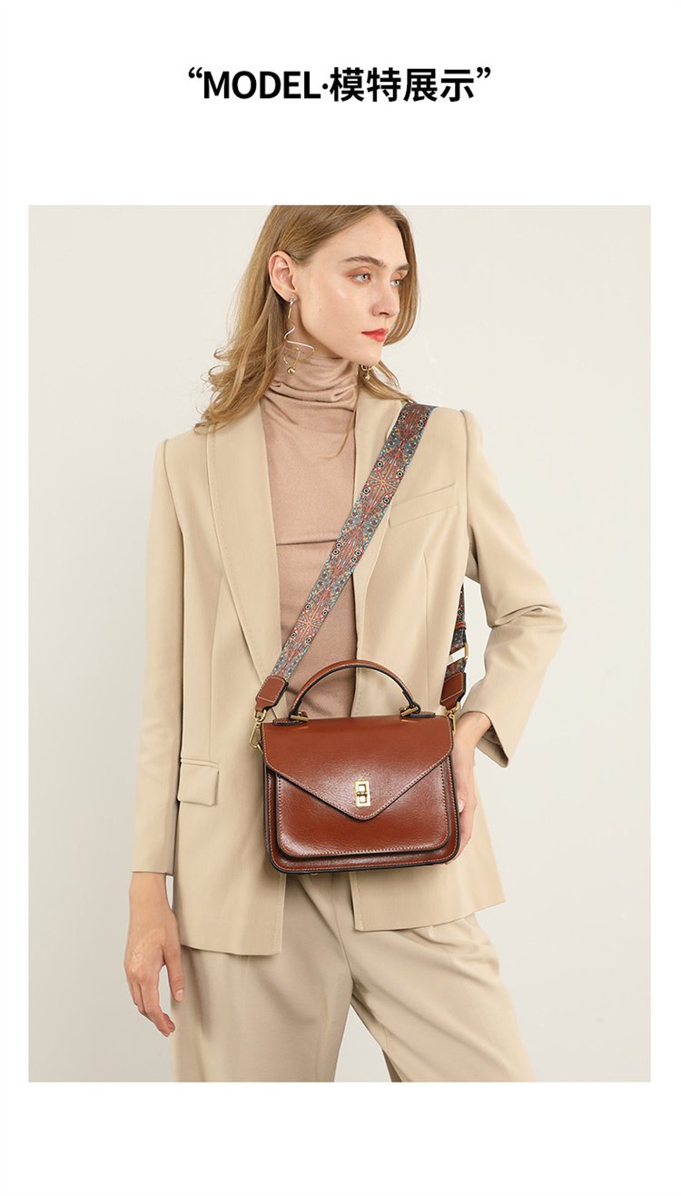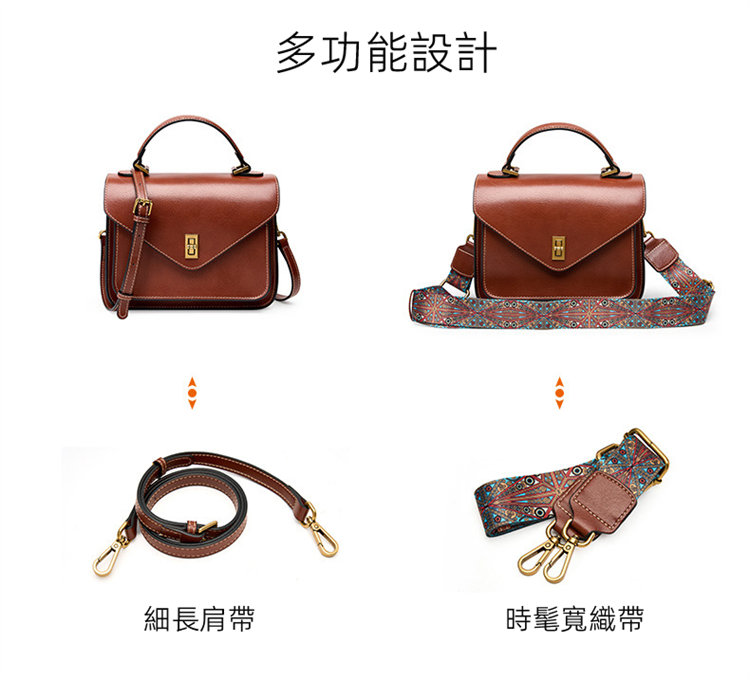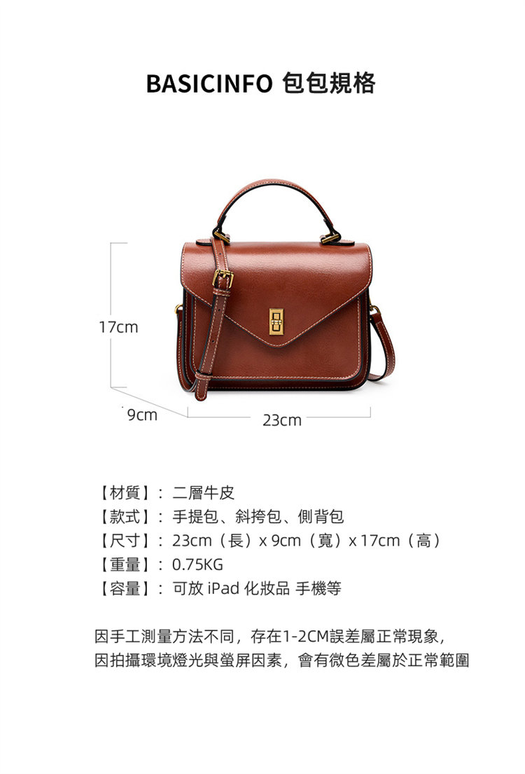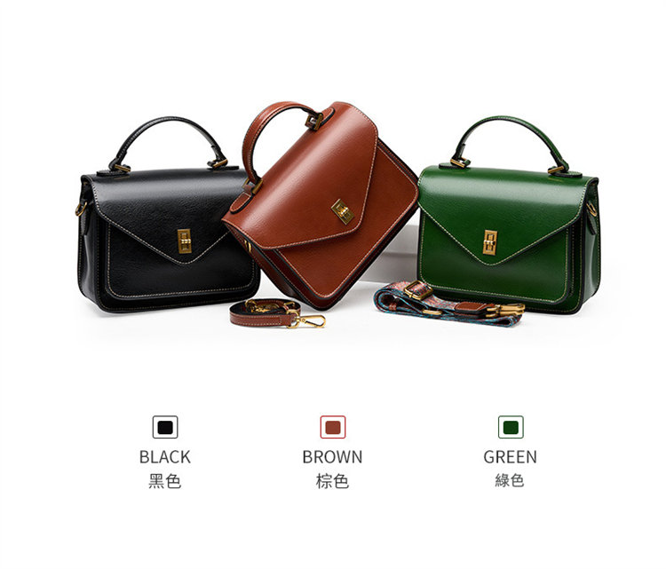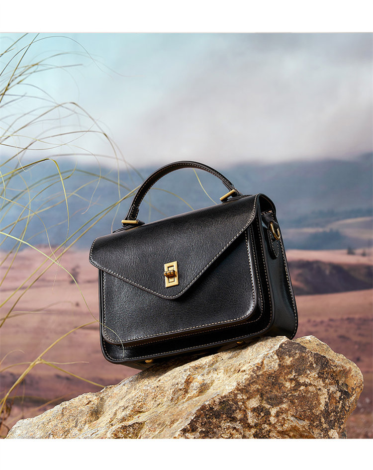 英倫郵差包 | 植鞣小牛皮 | 寬窄雙肩帶 | 復古五金鎖扣 | 斜背包 | 側背包 | 手提包 | 小方包 | 黑色女包