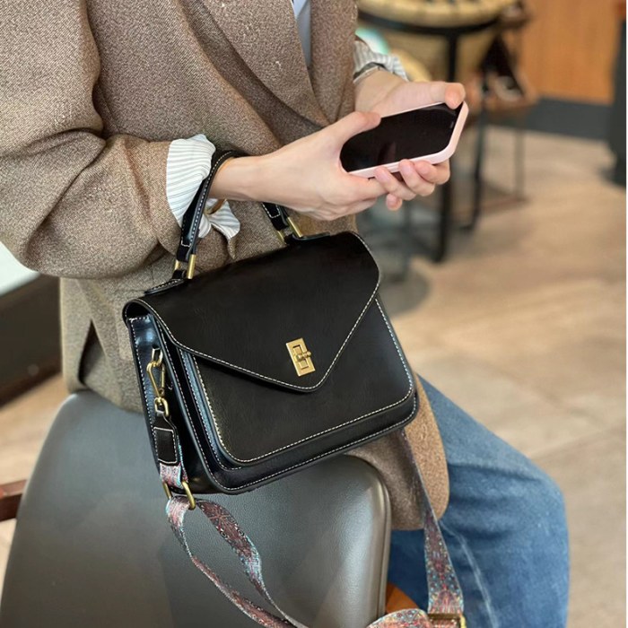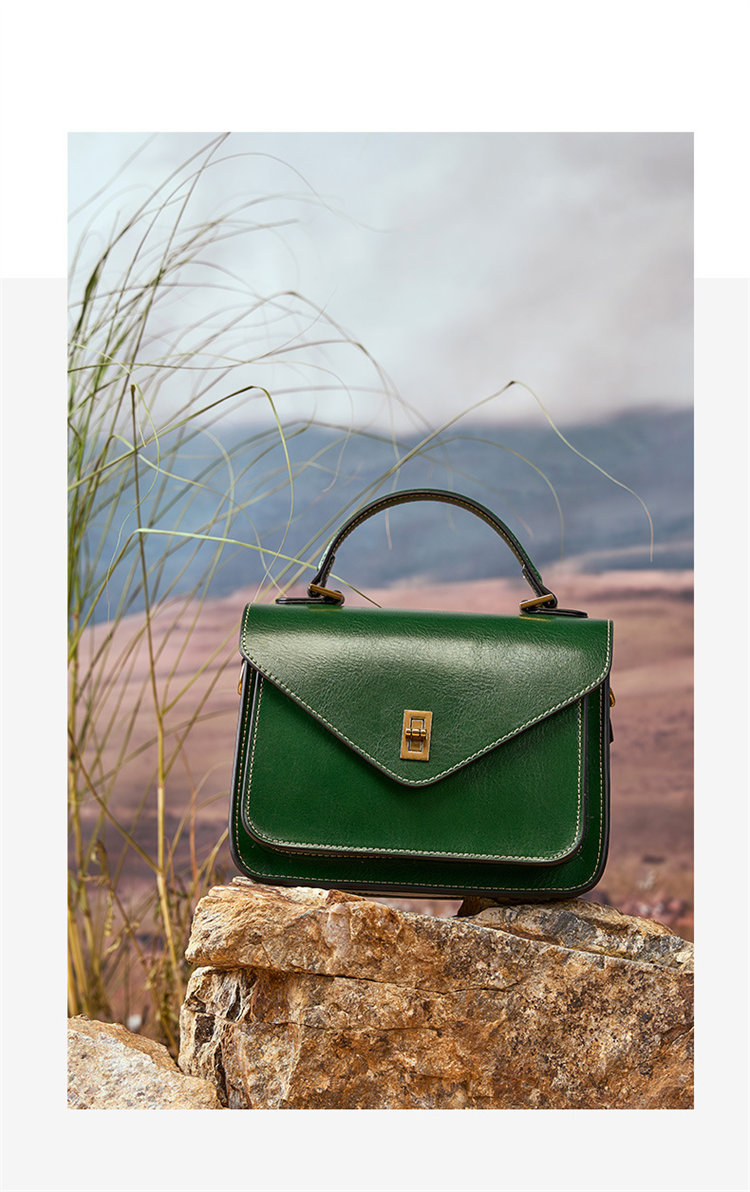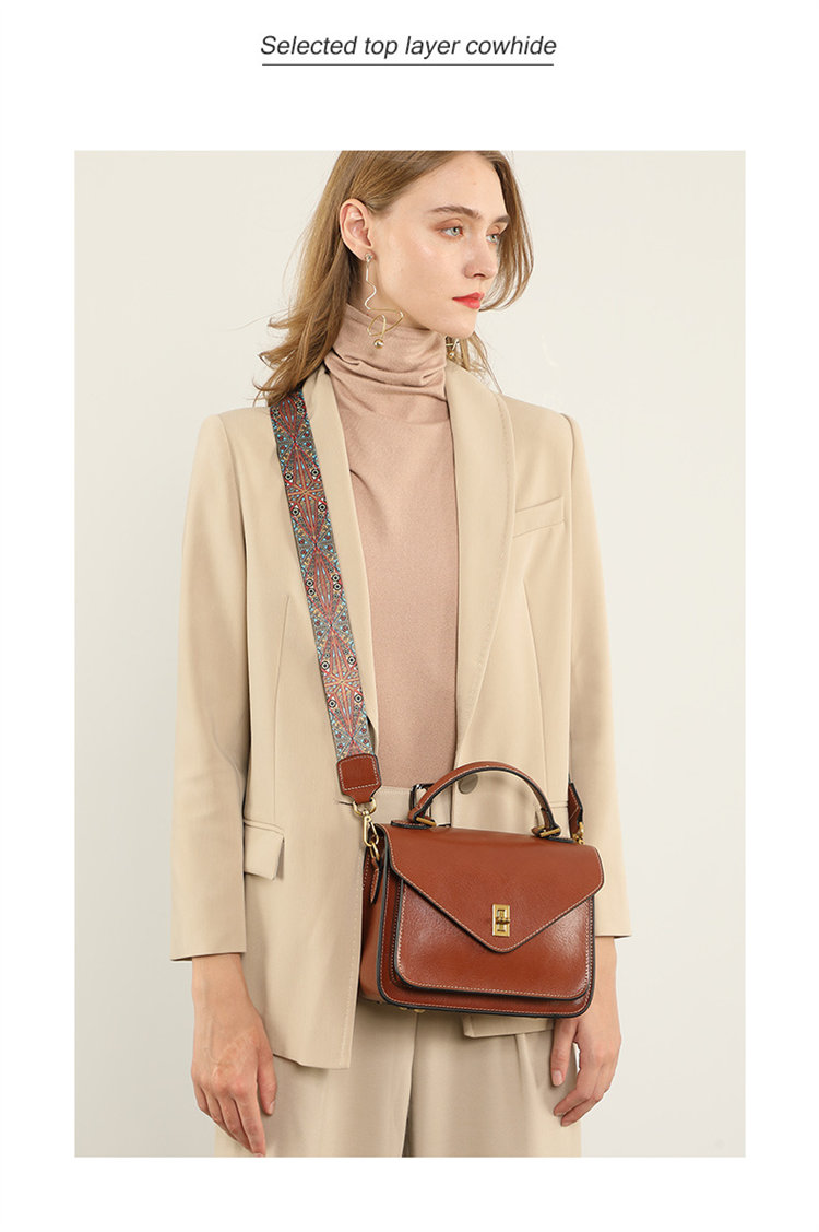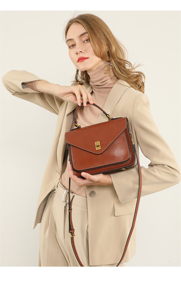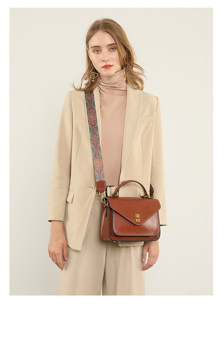 英倫郵差包 | 植鞣小牛皮 | 寬窄雙肩帶 | 復古五金鎖扣 | 斜背包 | 側背包 | 手提包 | 小方包 | 黑色女包