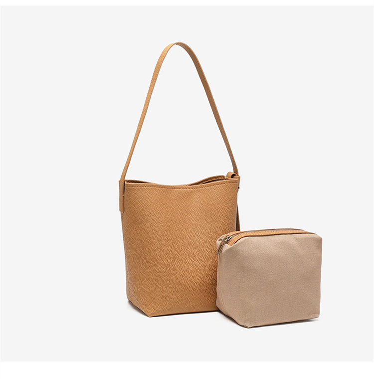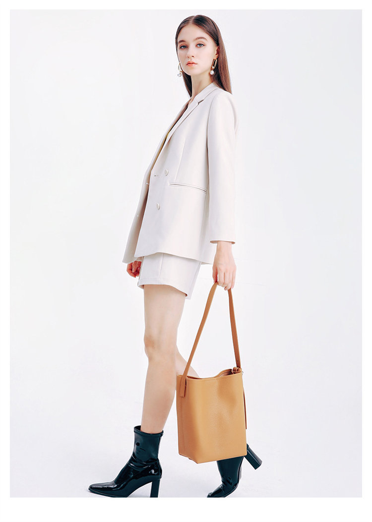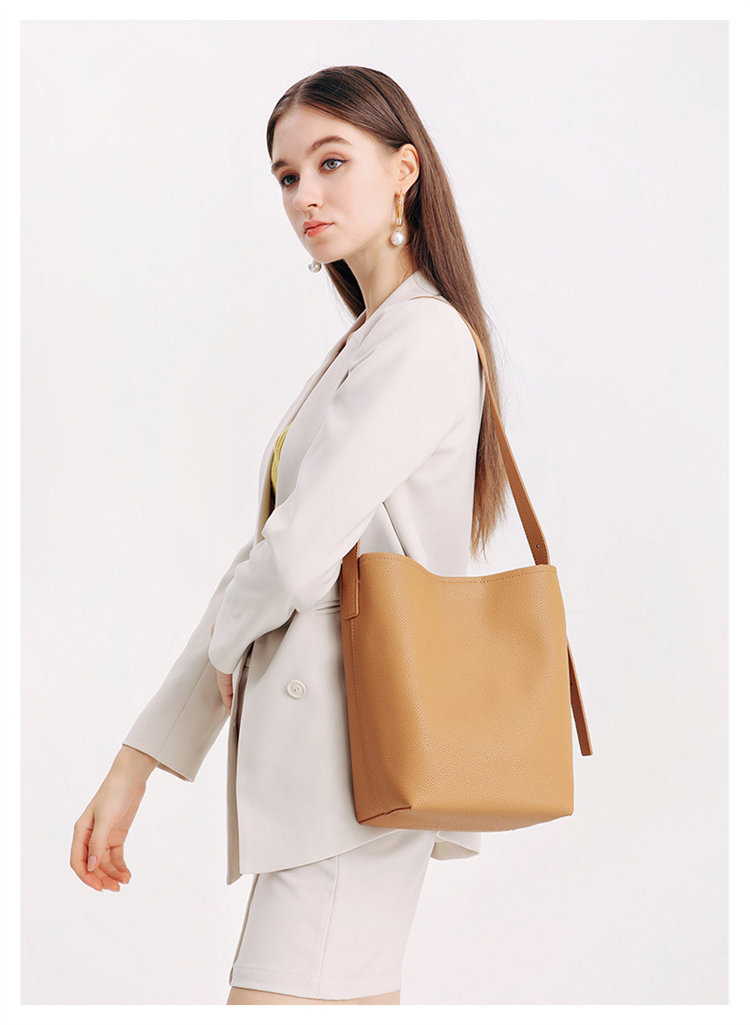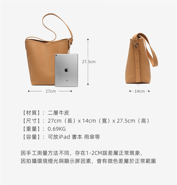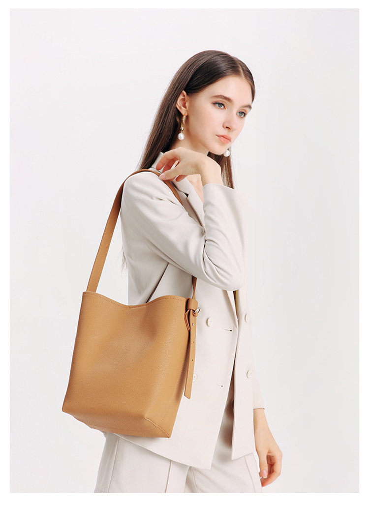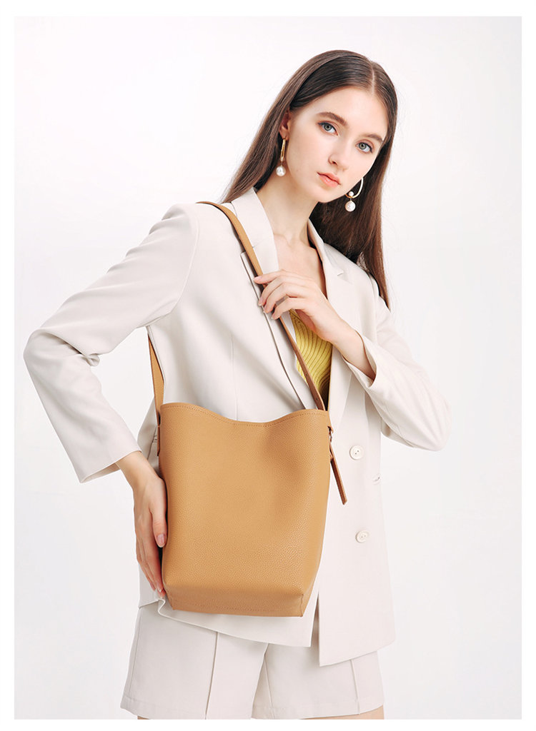 知性時尚水桶包 | 真皮小牛皮 | 可調節肩帶 | 大容量 | 輕量無負擔 | 側背包 | 斜背包 | 托特包 | 奶茶色女包
