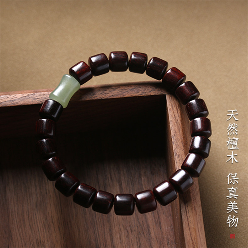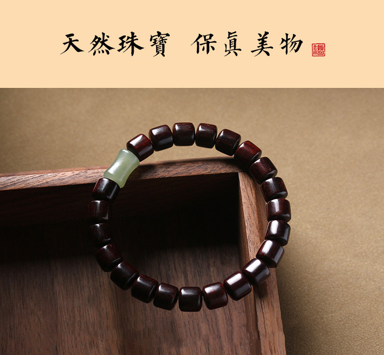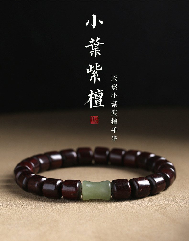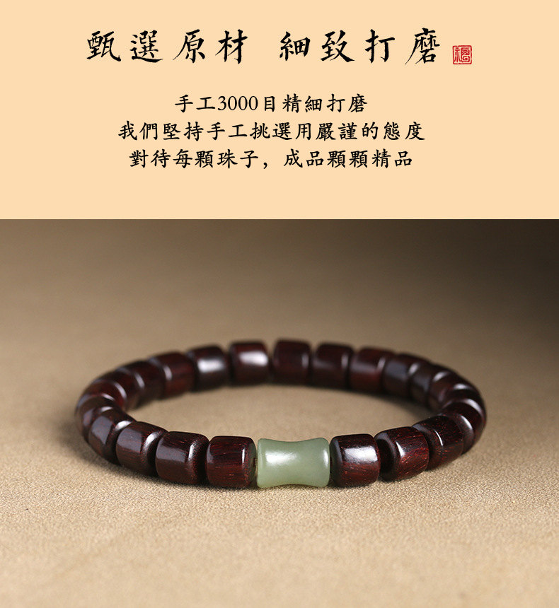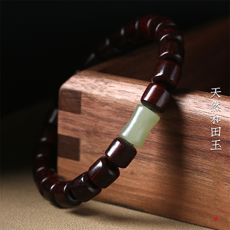 天然小葉紫檀和田玉桶珠佛珠手串 | 甄選原材手工3000目打磨天然小葉紫檀桶珠配天然和田玉佛珠手串