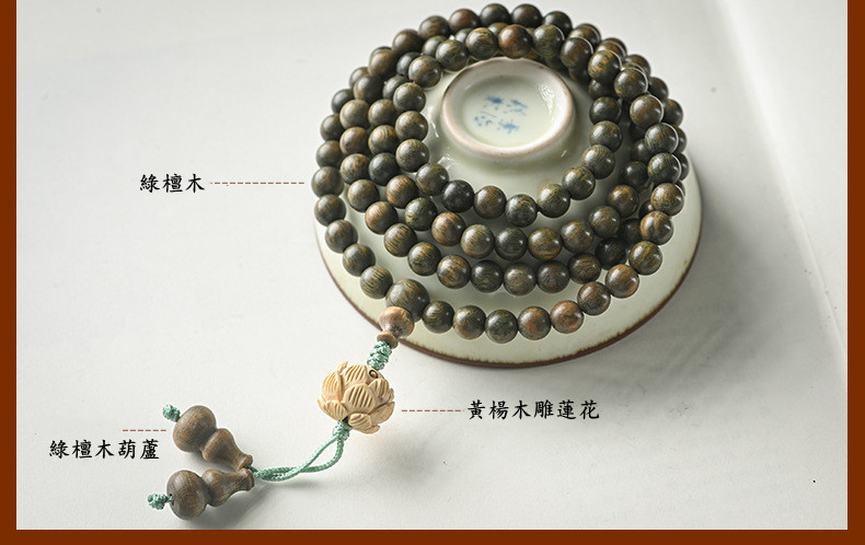 天然綠檀木佛珠手串 | 108顆佛珠念珠 | 天然馥郁芬芳美洲綠檀百樂聖檀108顆佛珠念珠手鍊手串