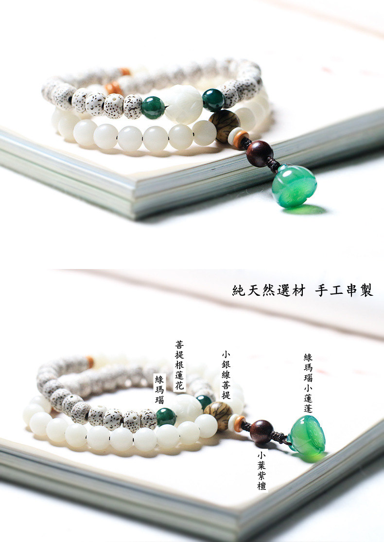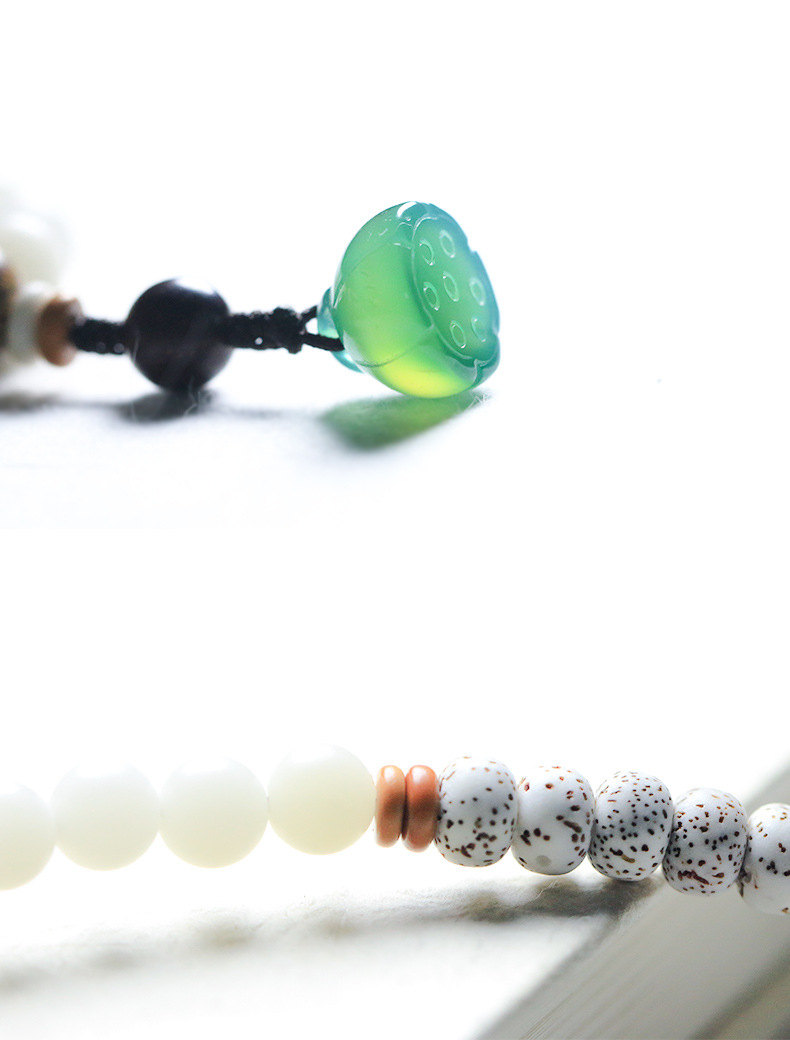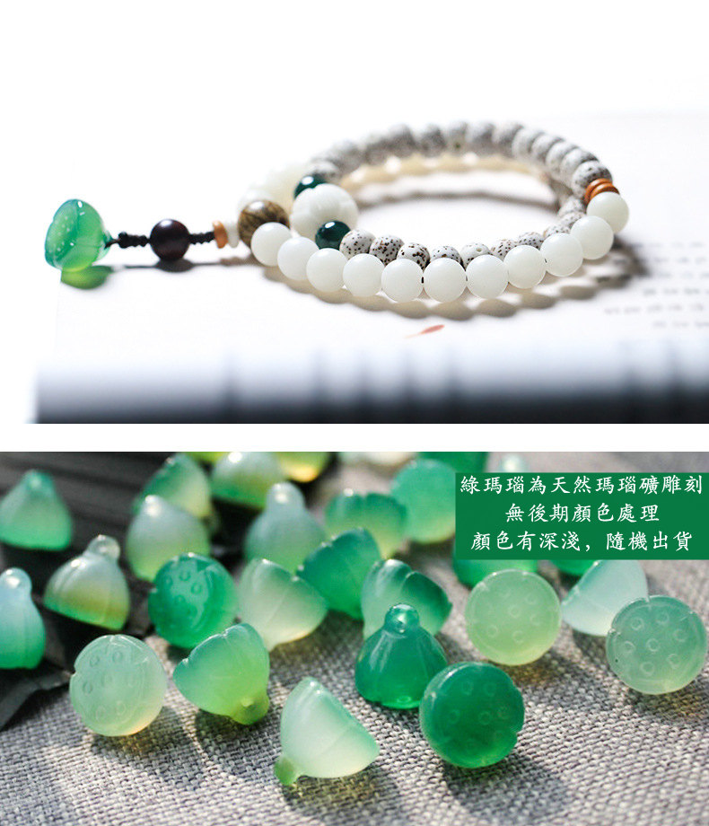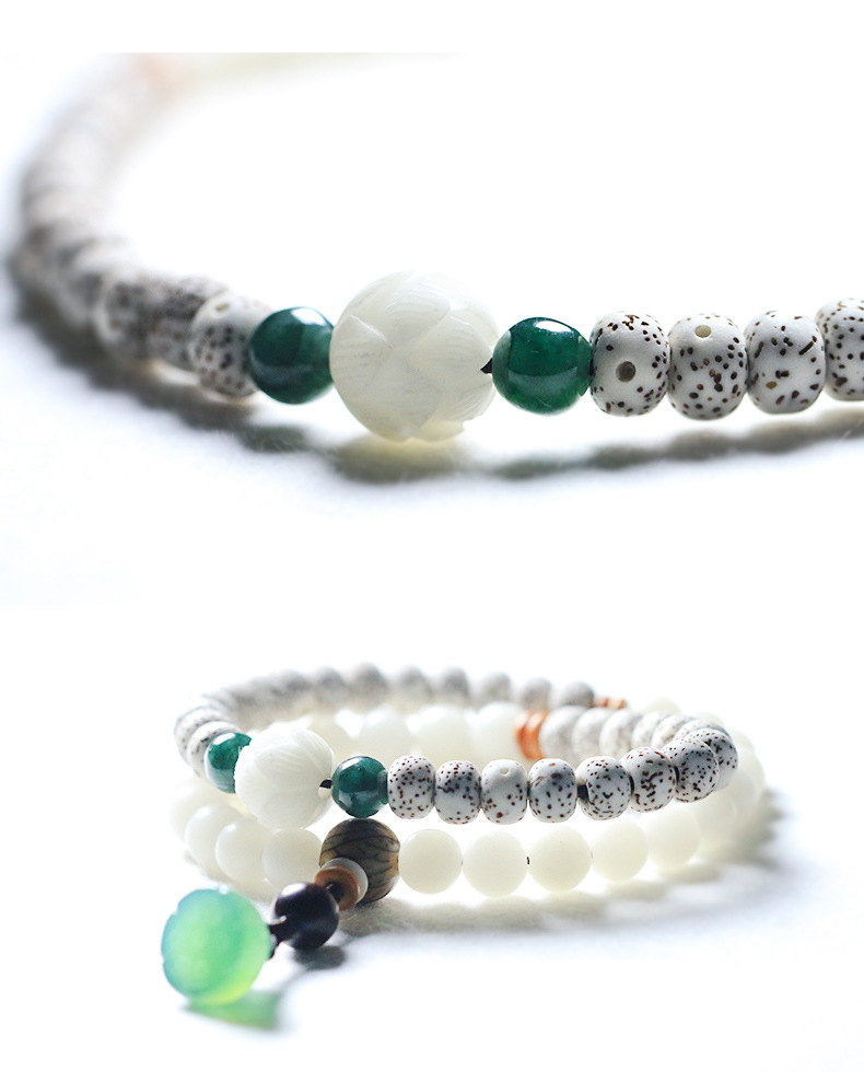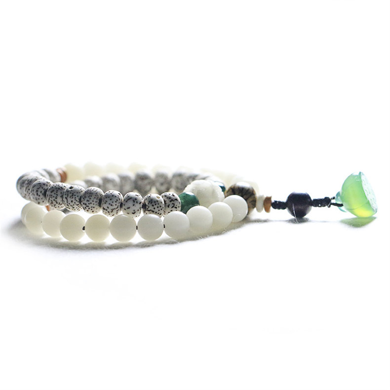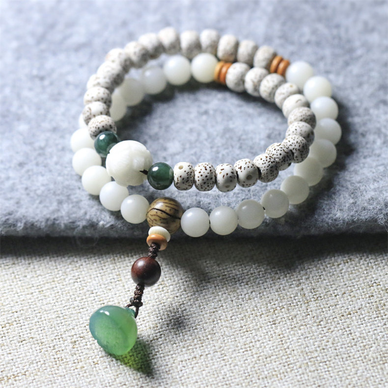 天然白玉星月菩提多圈佛珠手串 | 搭配天然綠瑪瑙蓮蓬 | 天然7A級多寶風化菩提手工細磨多圈佛珠念珠手串