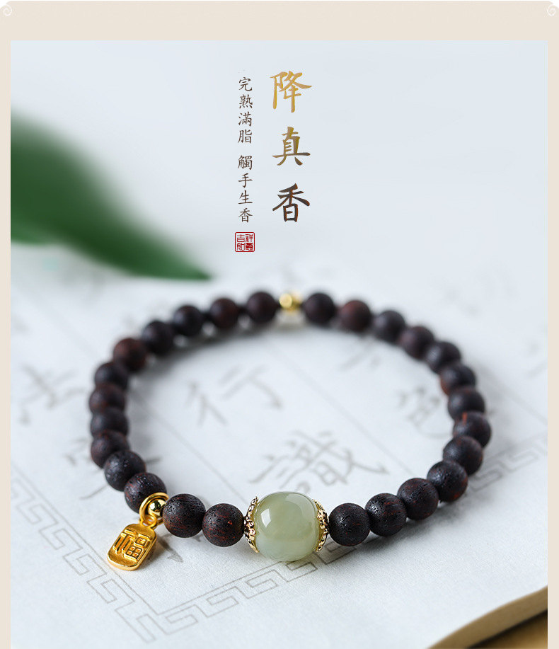 奇楠級天然降真香佛珠手串 | 搭配天然和田玉 | 完熟滿脂觸手生香 | 如蘭似麝天然奇楠級天然降真香男女佛珠手串