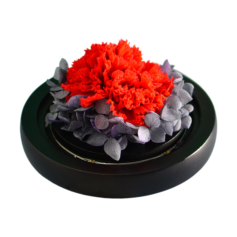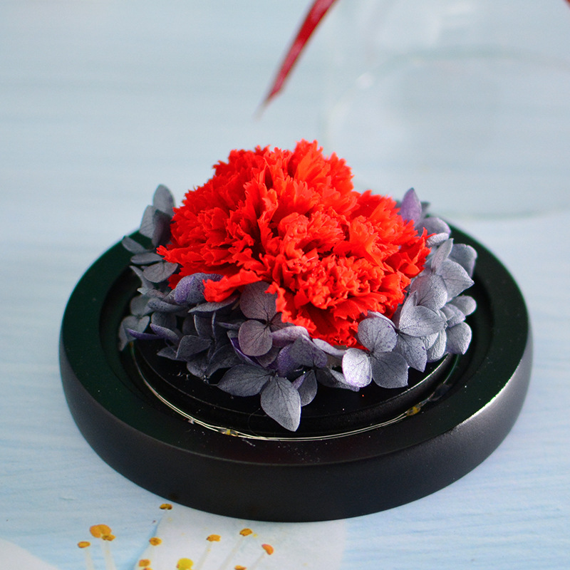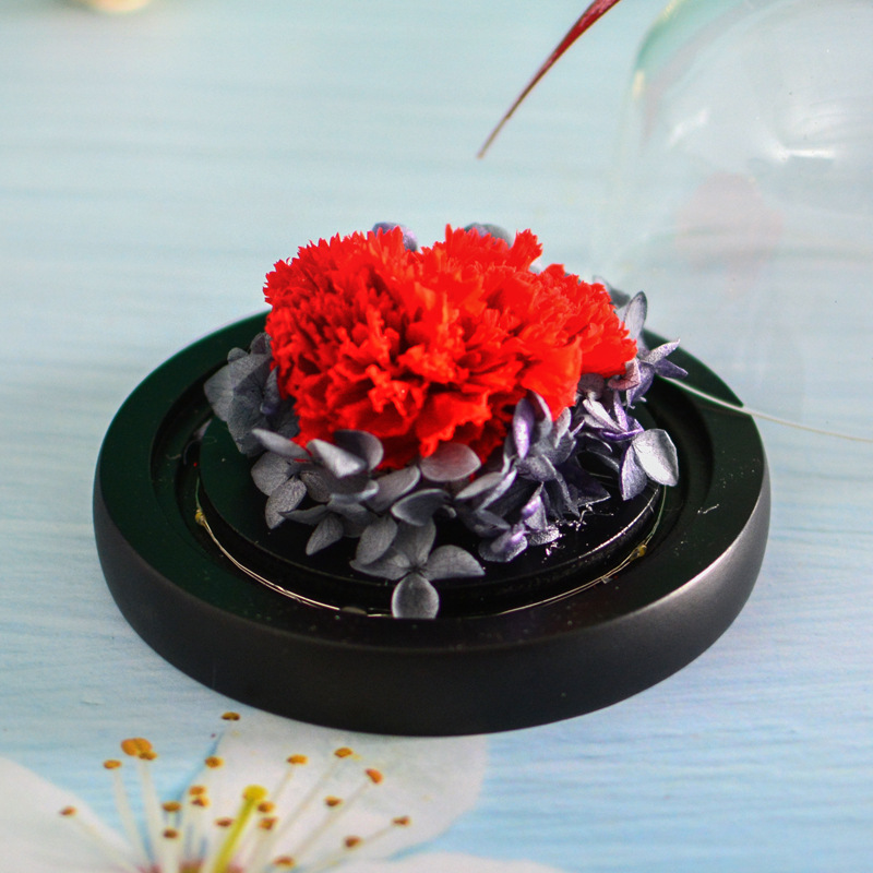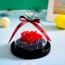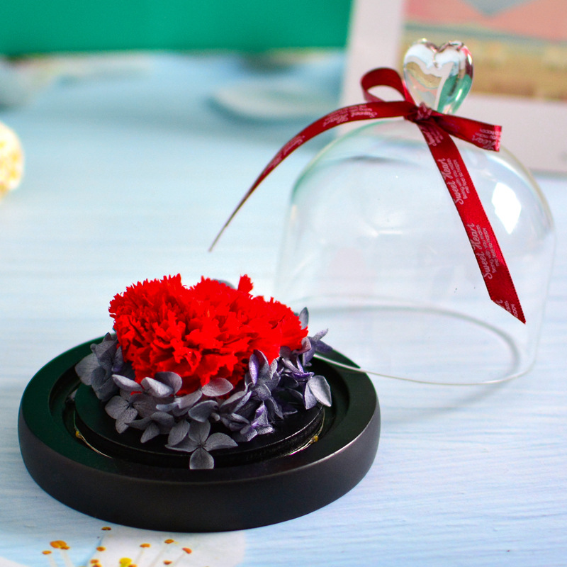 【永生康乃馨桃心玻璃罩】【日本真花永生工藝】高檔日式手工永生康乃馨桃心玻璃罩禮盒 (康乃馨 12.5*12.5*12.3)
