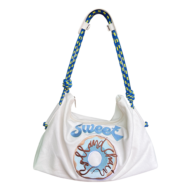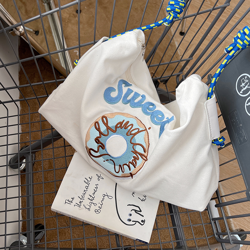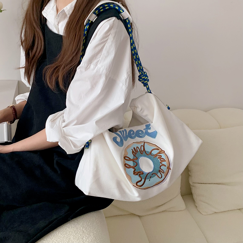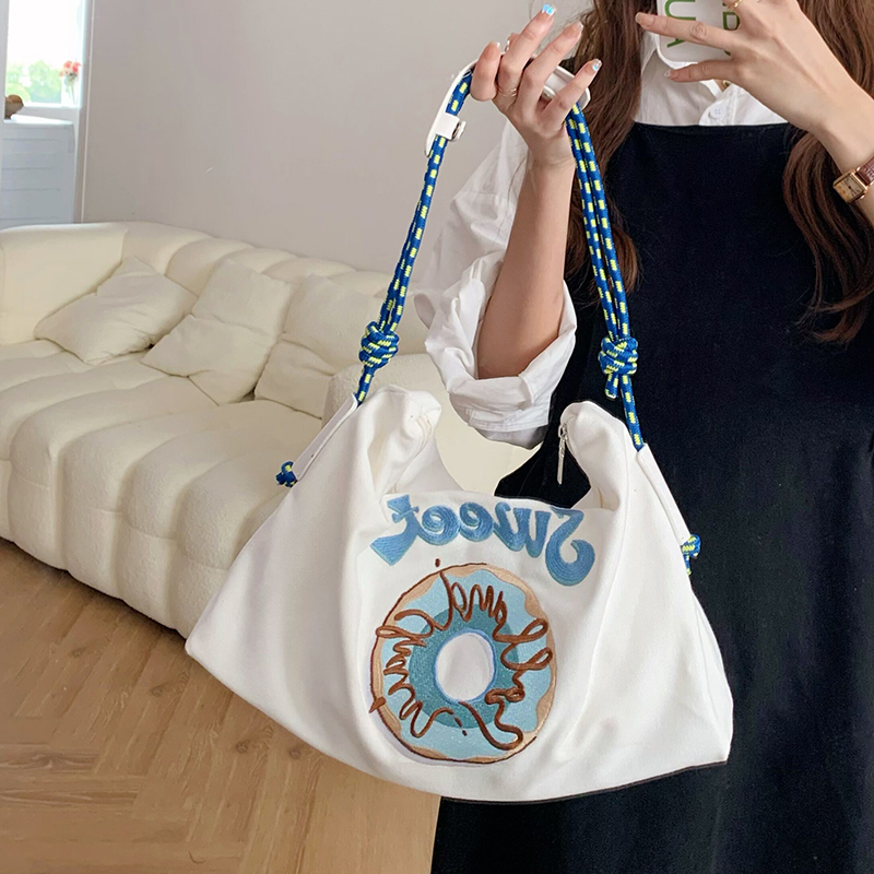百搭日本小衆潮牌質感帆布大容量托特包時尚刺繡甜甜圈單肩腋下包