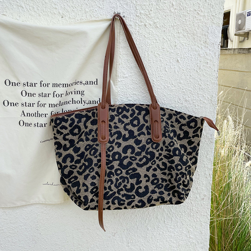 新款韓版豹紋帆布包包簡約托特包百搭大容量通勤單肩大包女潮