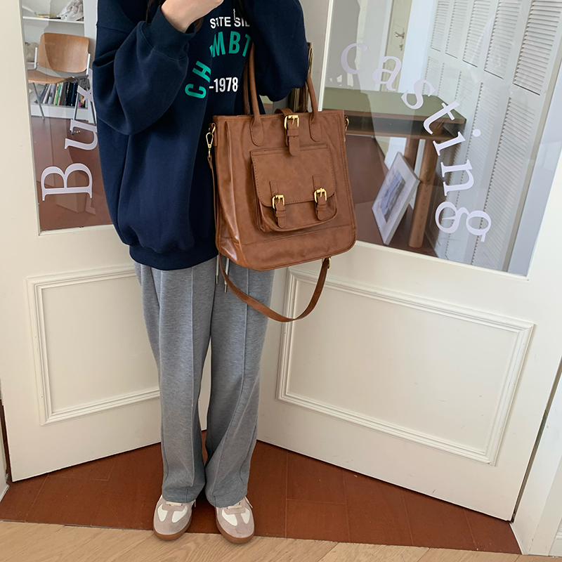 2023新款ins上課通勤手提包複古大容量公文包學生斜挎托特包