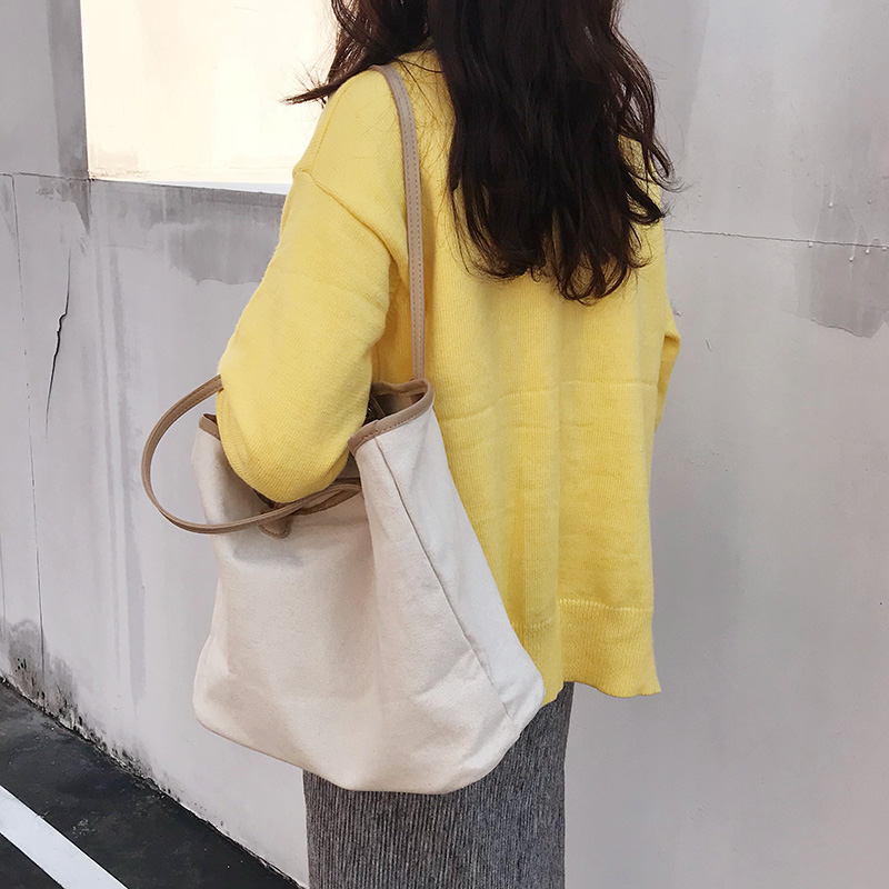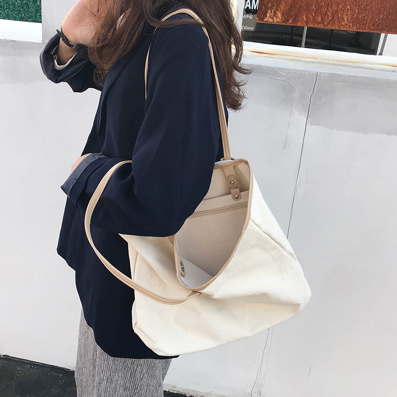 休閑女2023新款韓版大容量帆布包學生百搭簡約單肩包手提大包