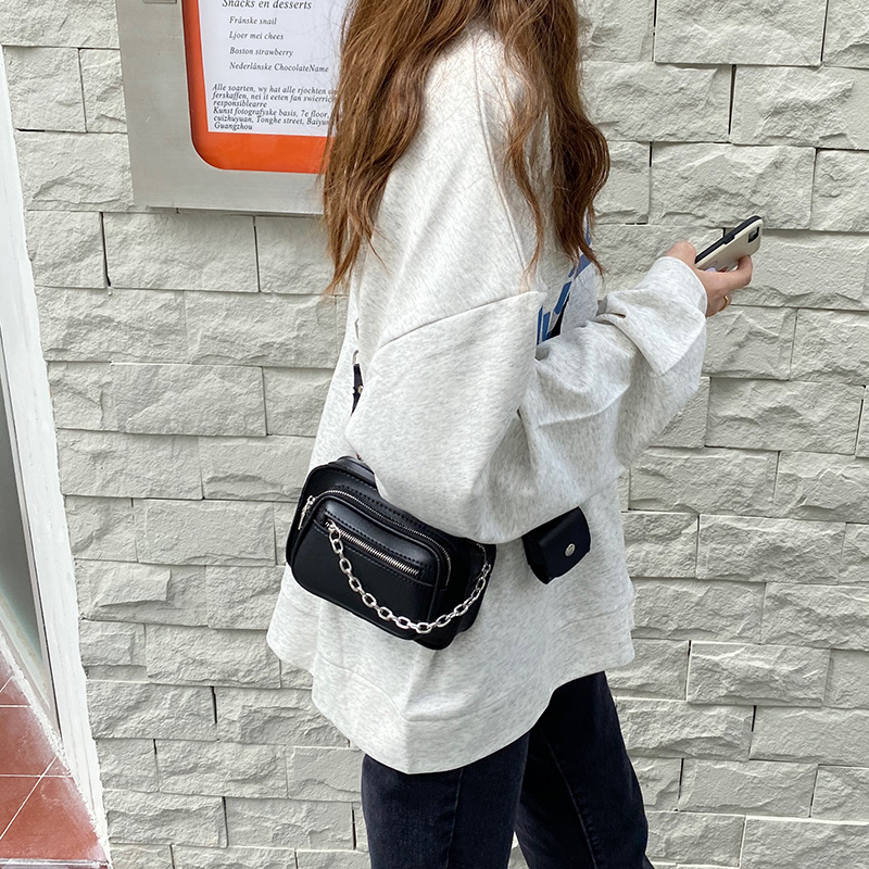 自制原創街頭潮流小衆機能酷崽鏈條包女斜挎暗黑風胸包小方包潮