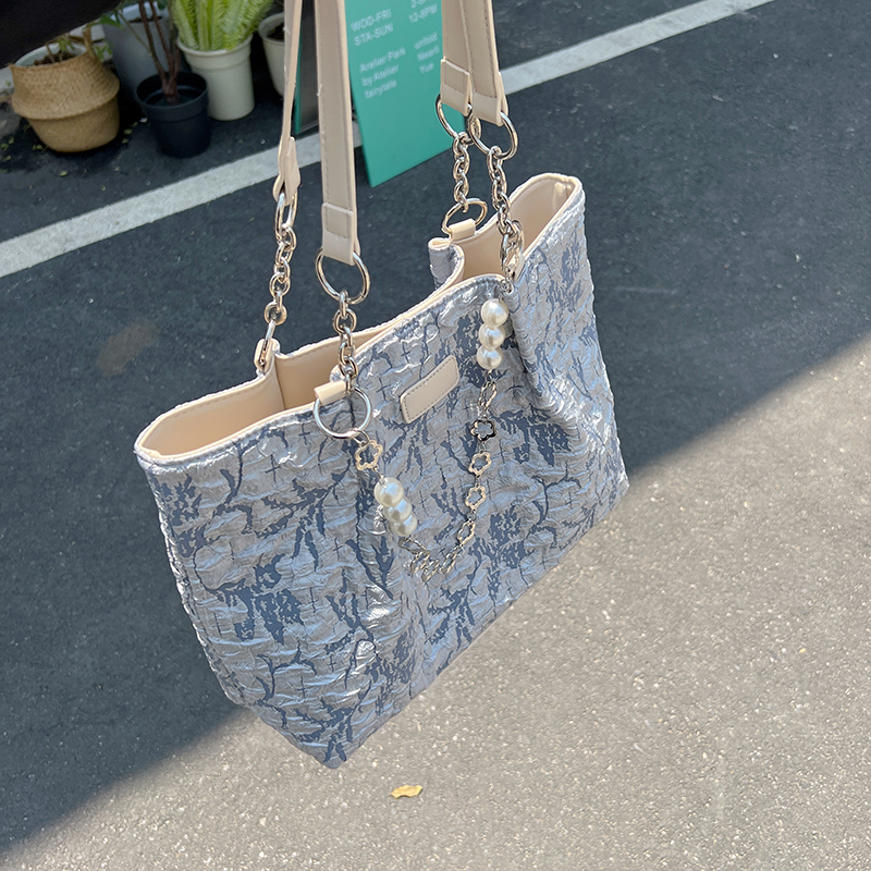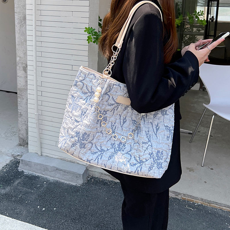 托特包包女大容量提花布帆布包2023新款大學生上課通勤手提單肩包