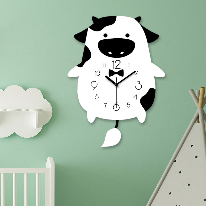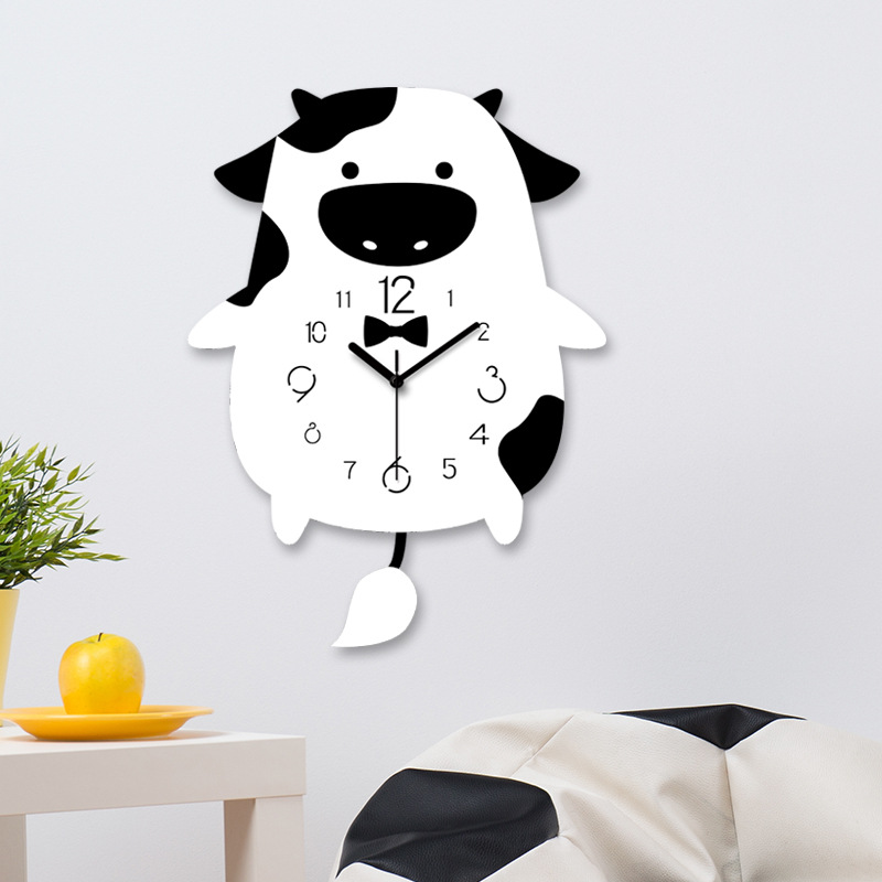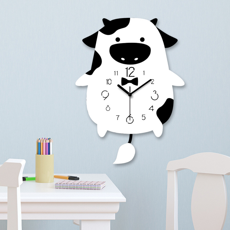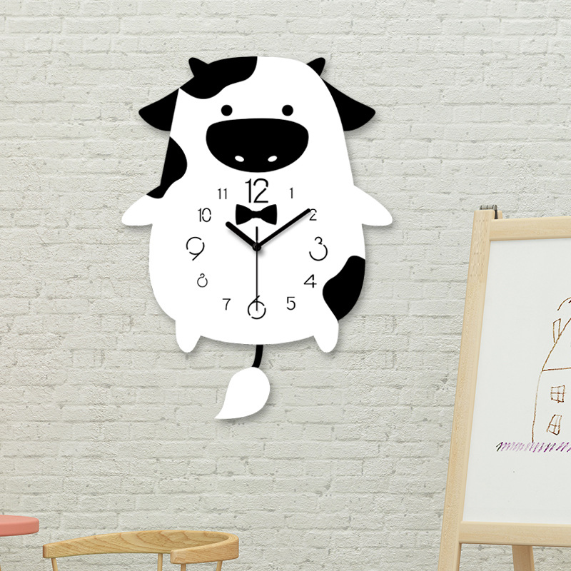 【北歐風格動物盤面】【帶搖擺】【超靜音】【太陽掃秒機芯】12英吋創意設計靜音客廳臥室掛鐘壁鐘時鐘