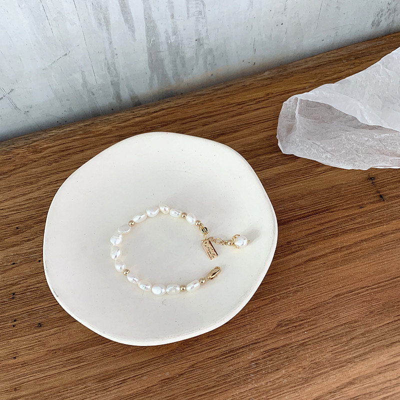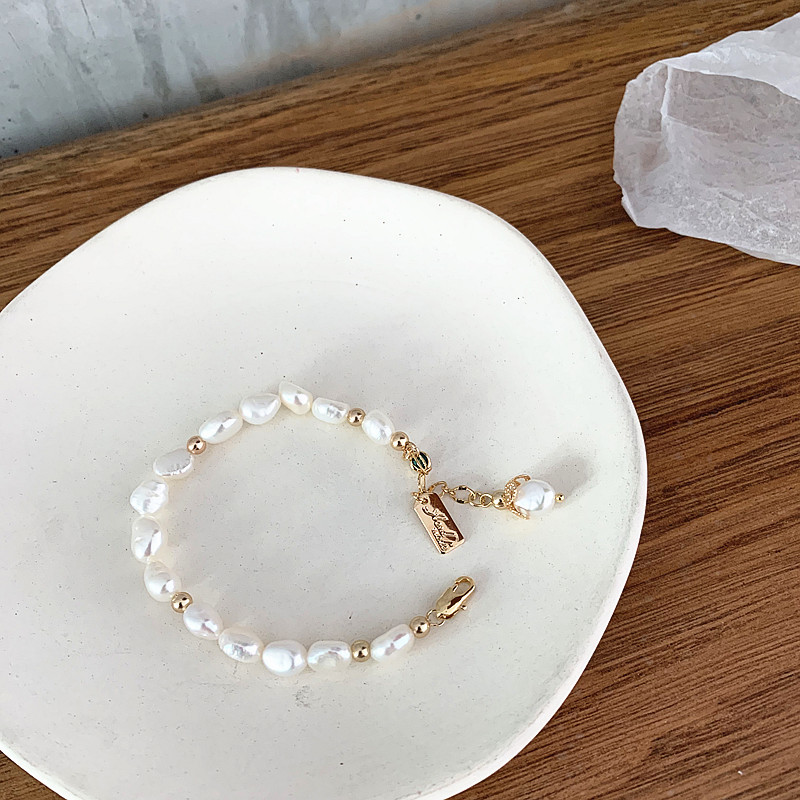 設計款溫婉質感巴洛克天然淡水珍珠高光珍珠手鍊氣質白搭複古珍珠手串 (珍珠)