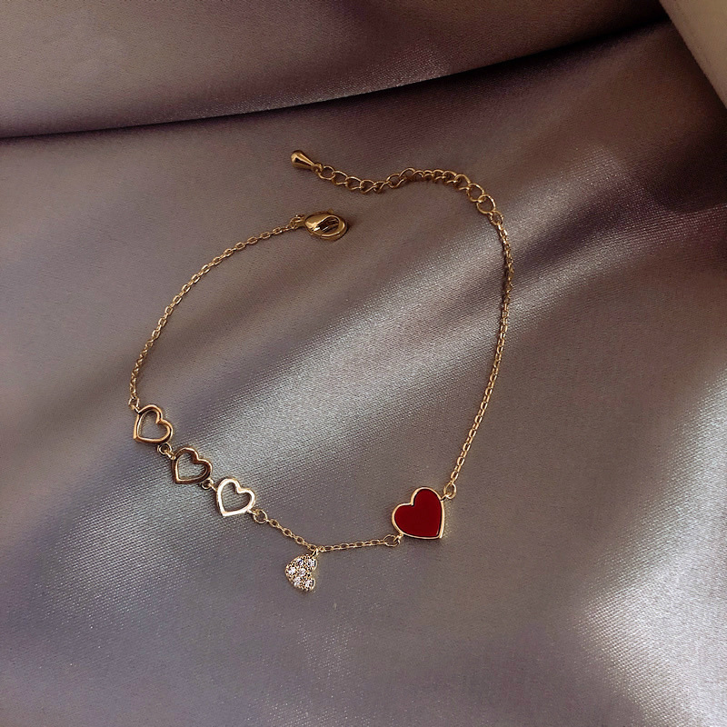 小眾設計紅色桃心愛心手鍊女IG風格真金電鍍手飾 (小紅心)