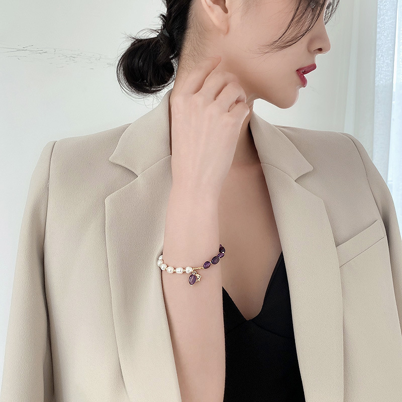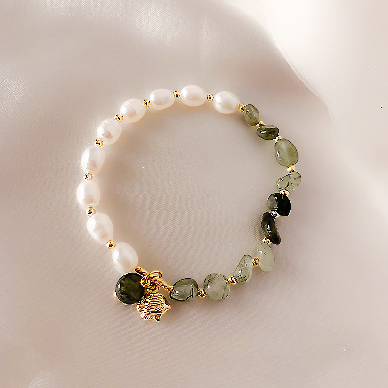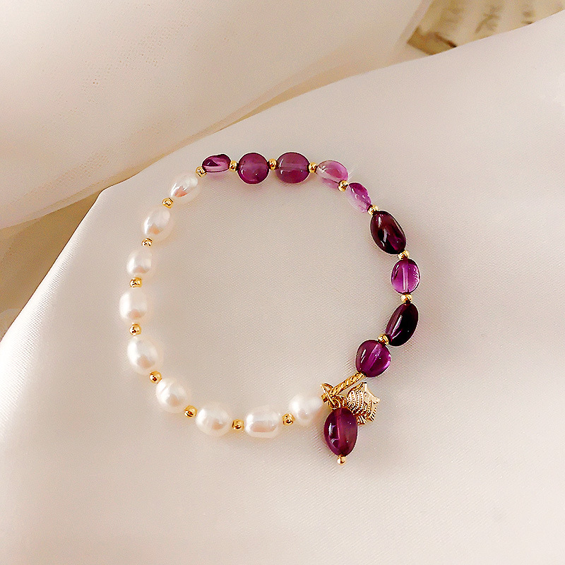 韓劇優雅百搭天然水晶拼淡水珍珠手鍊設計師款溫柔女手鍊