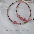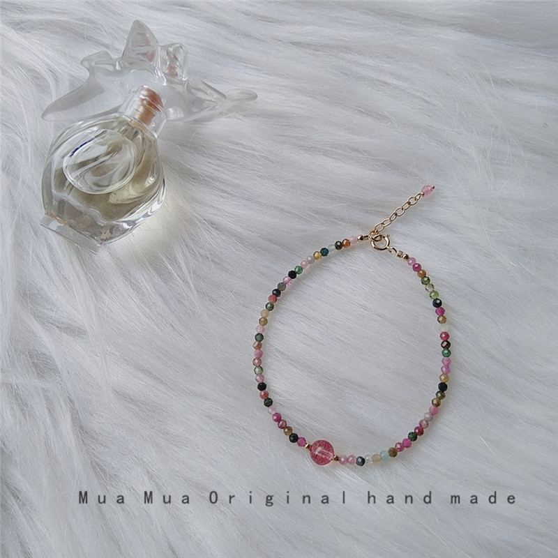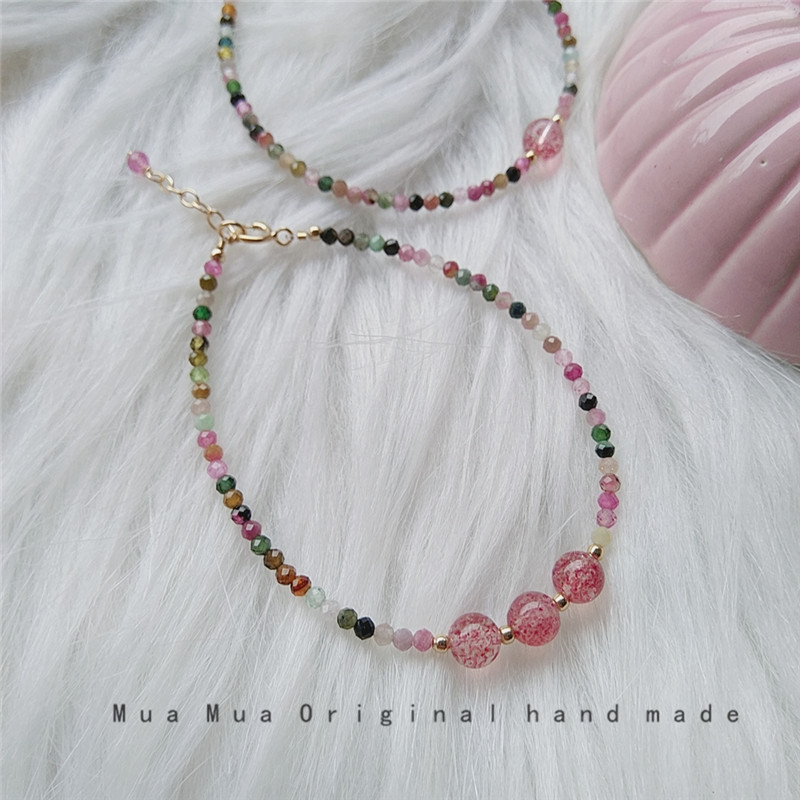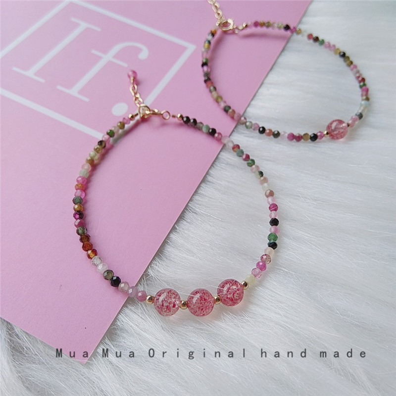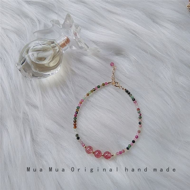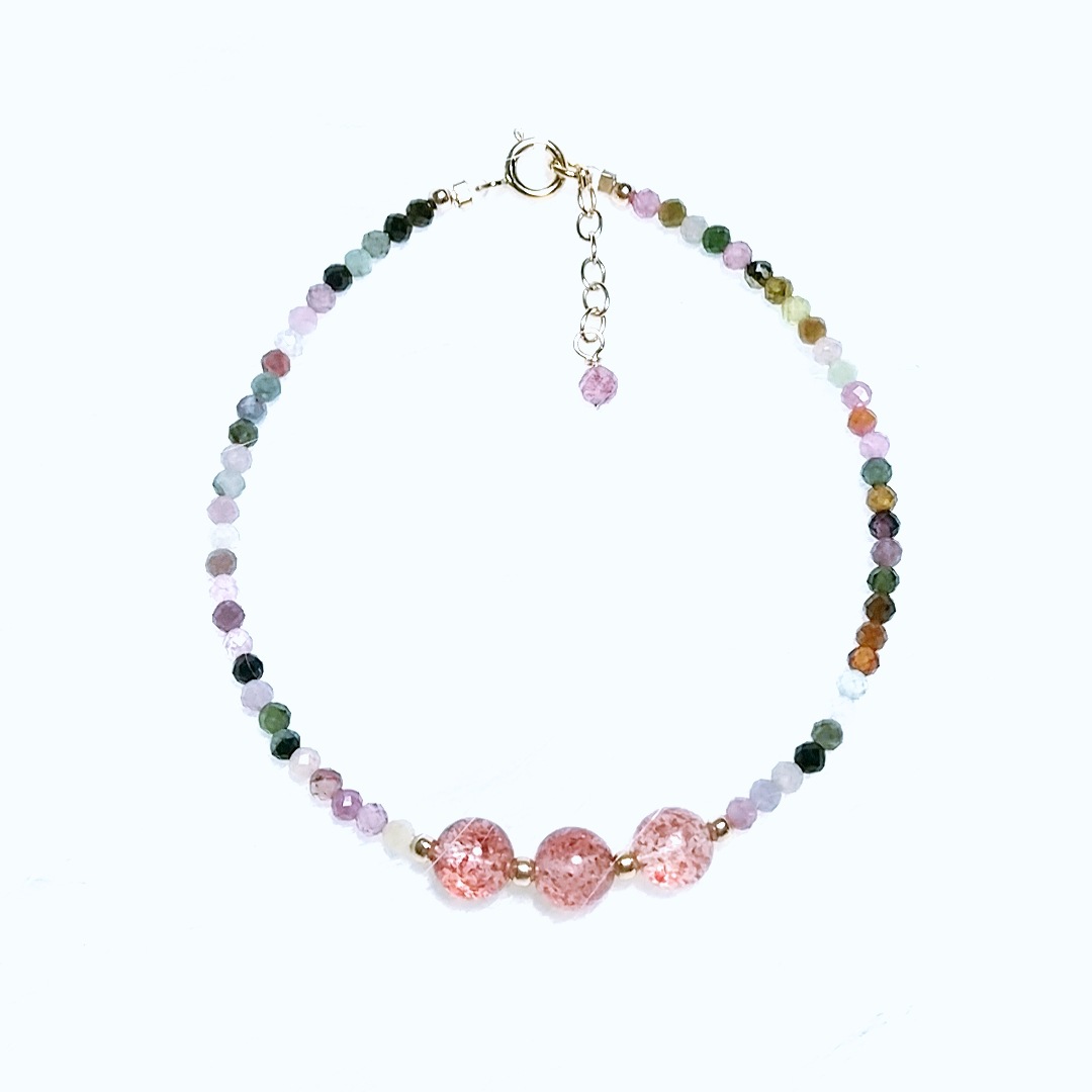 正桃花防小三 | 天然切面糖果碧璽 | 天然草莓晶 | 14K包金 | 原創設計極細天然碧璽草莓晶招財糖果碧璽女水晶碧璽手鍊